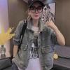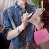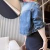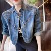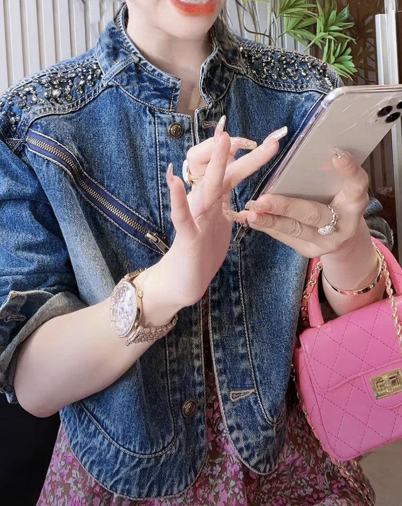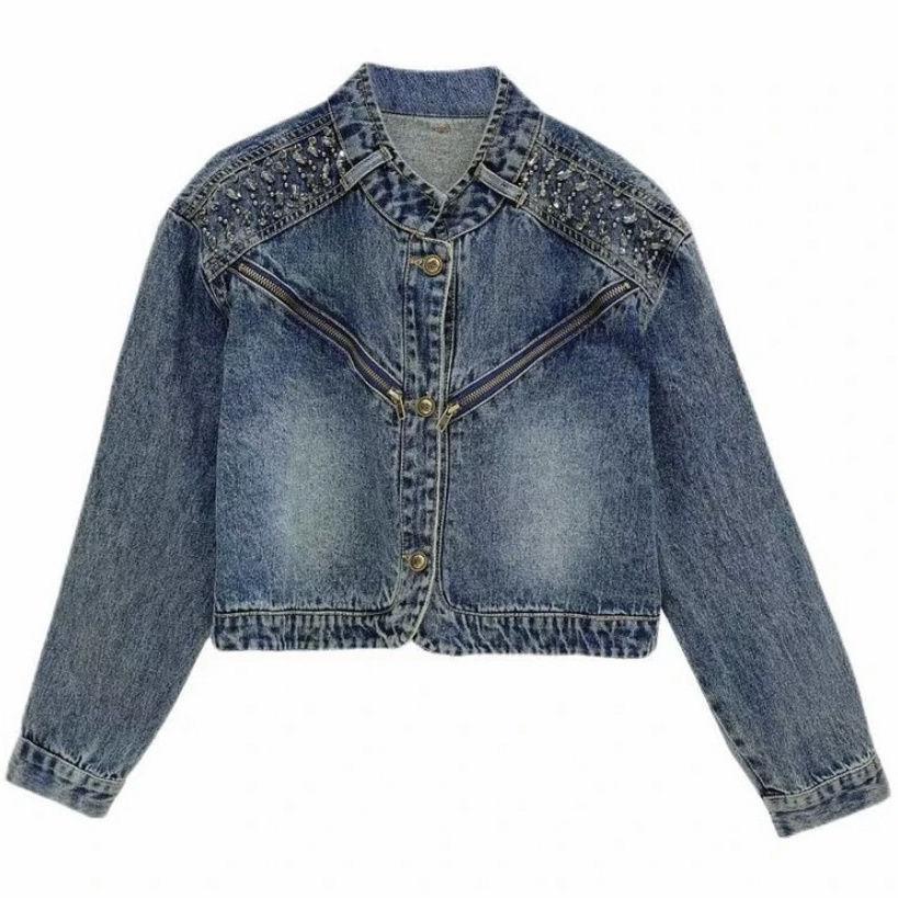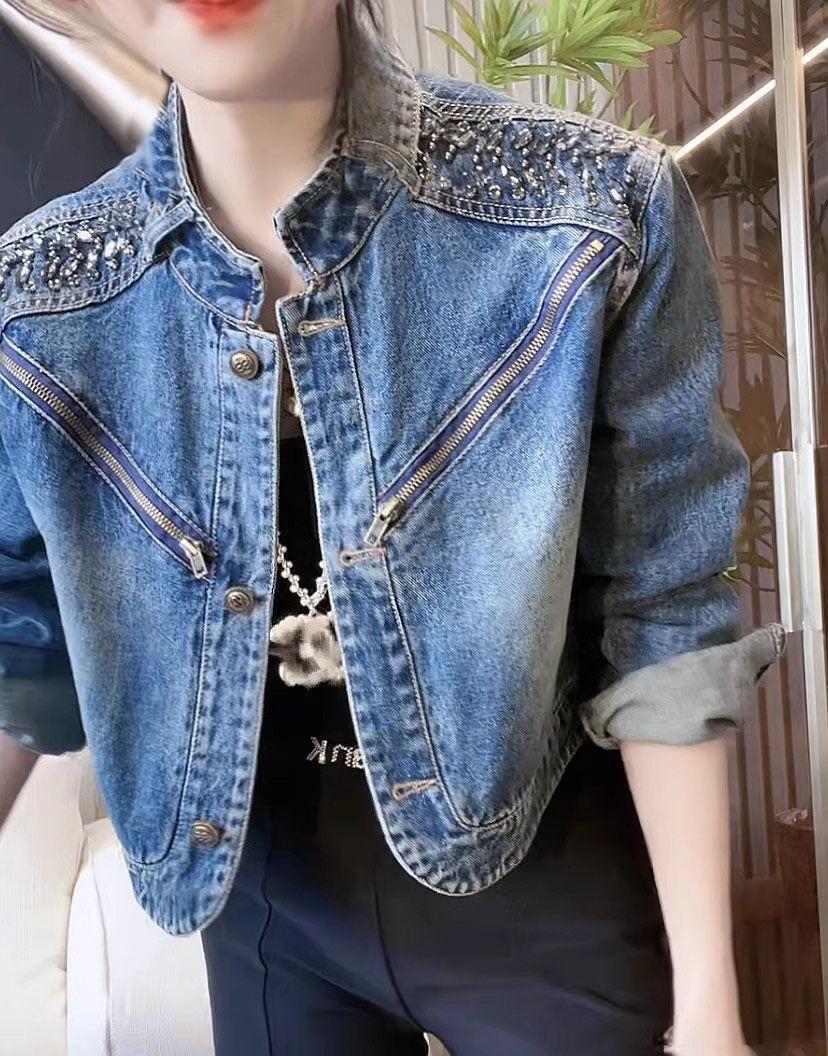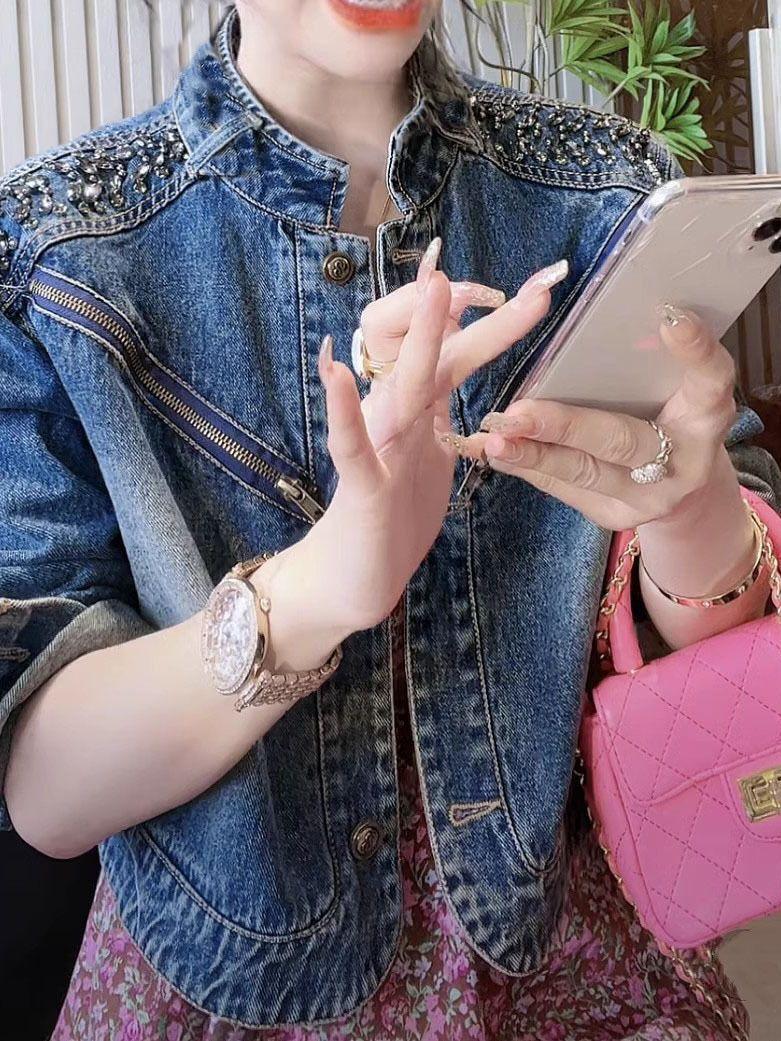 2024 ropa corta europea para mujer con incrustaciones de diamantes para primavera y otoño, nueva chaqueta de mezclilla, marca de moda para mujer, de alta calidad, super hermosa y única