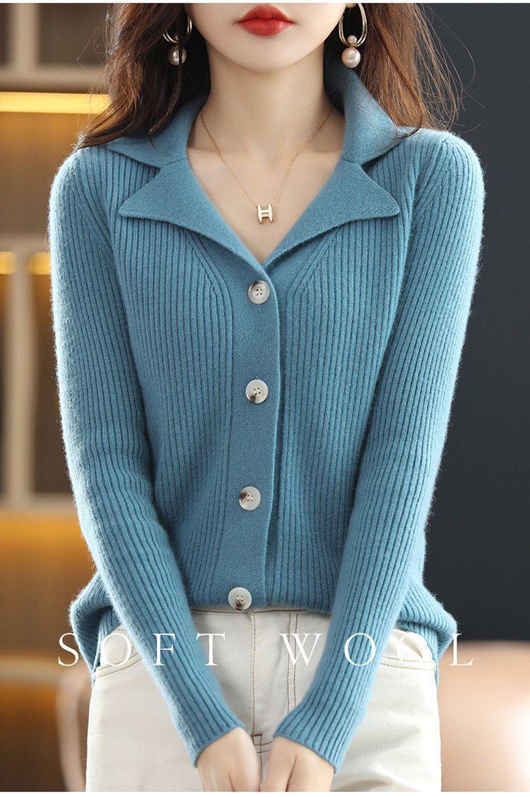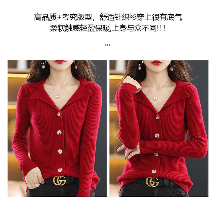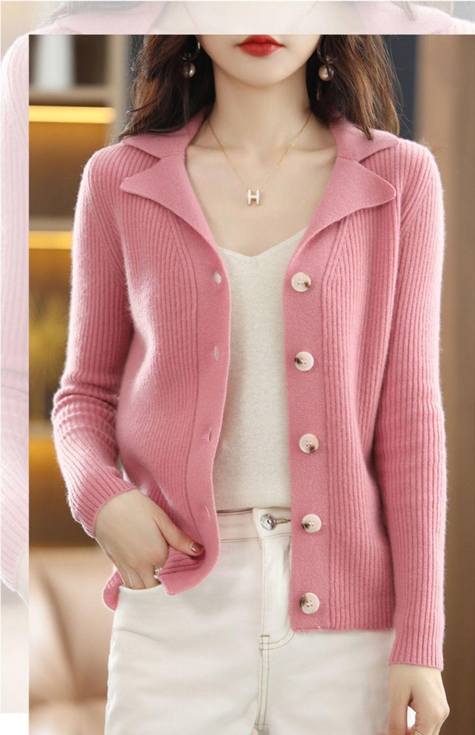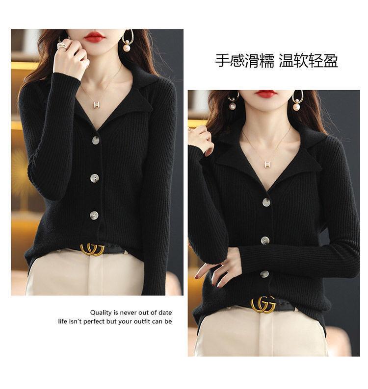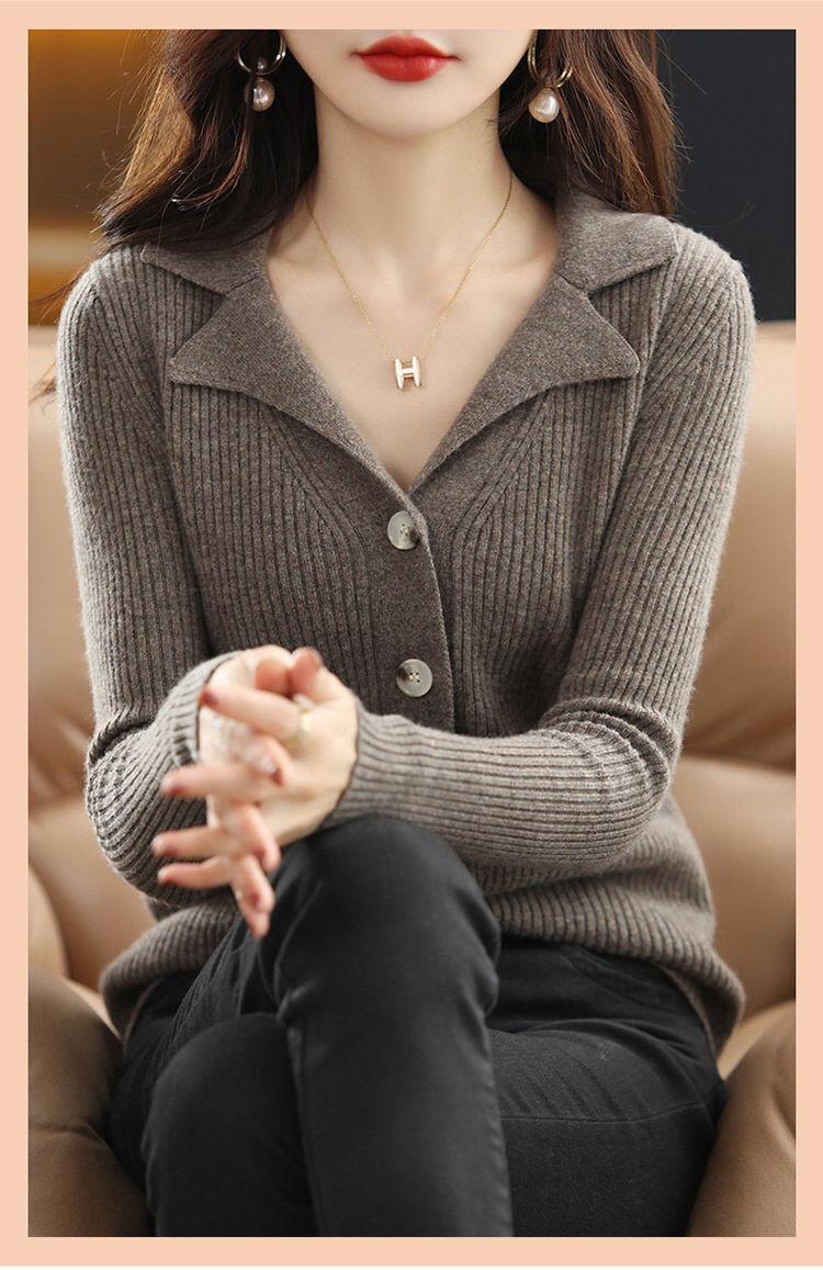 Cárdigan de punto con cuello de traje para mujer, suéter corto de fondo con cuello en V, abrigo de punto exterior, sentido del diseño para mujer