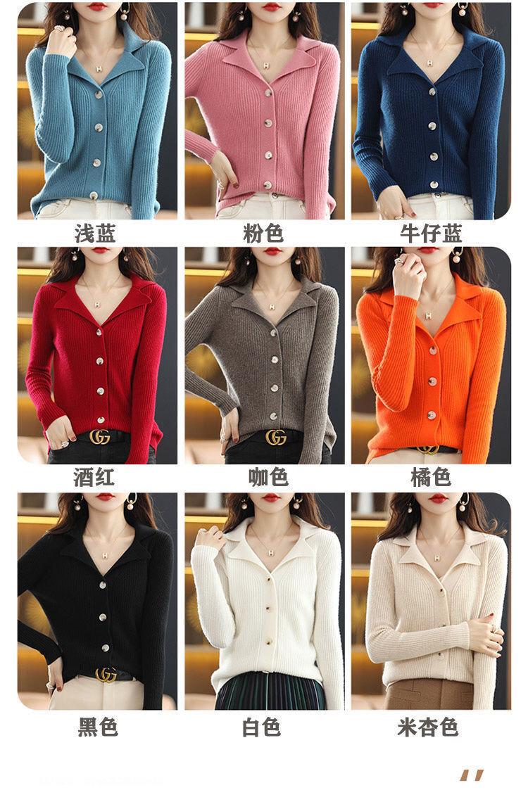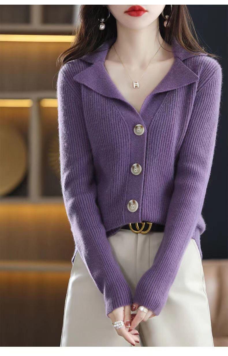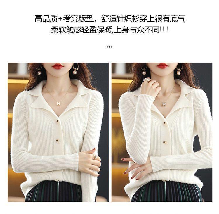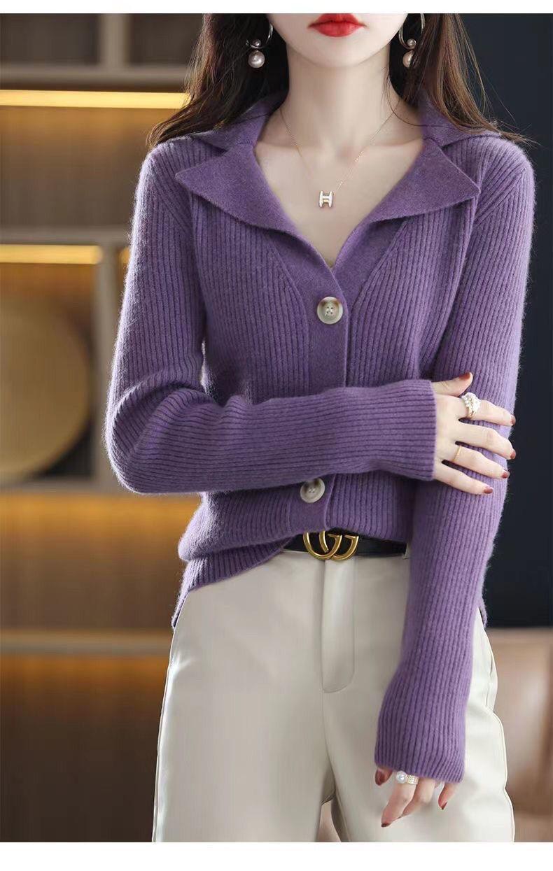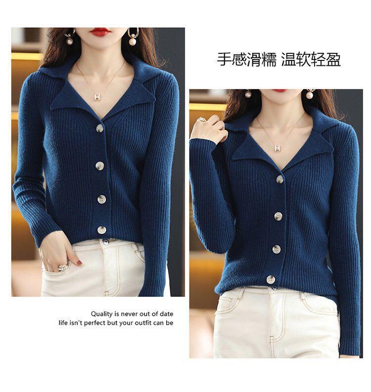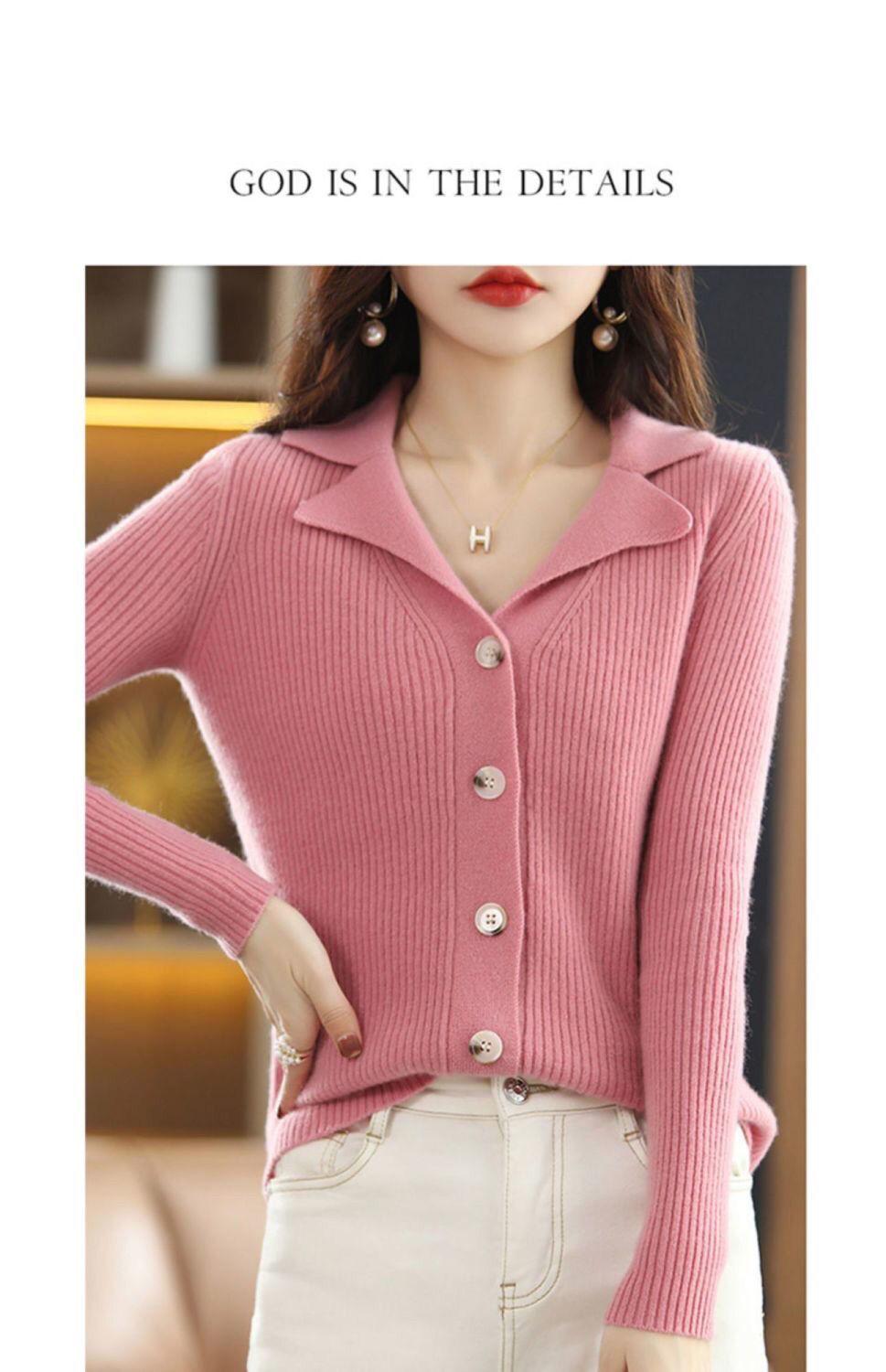 Cárdigan de punto con cuello de traje para mujer, suéter corto de fondo con cuello en V, abrigo de punto exterior, sentido del diseño para mujer