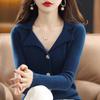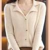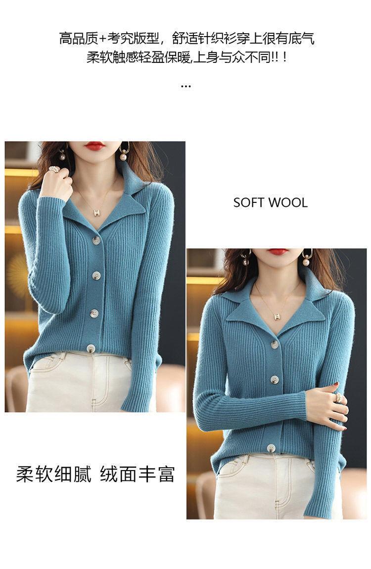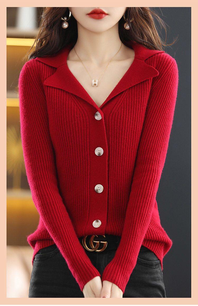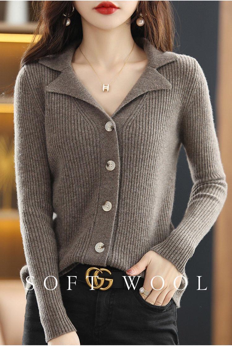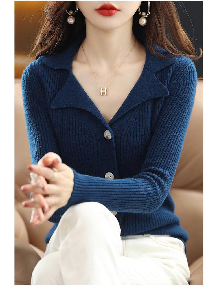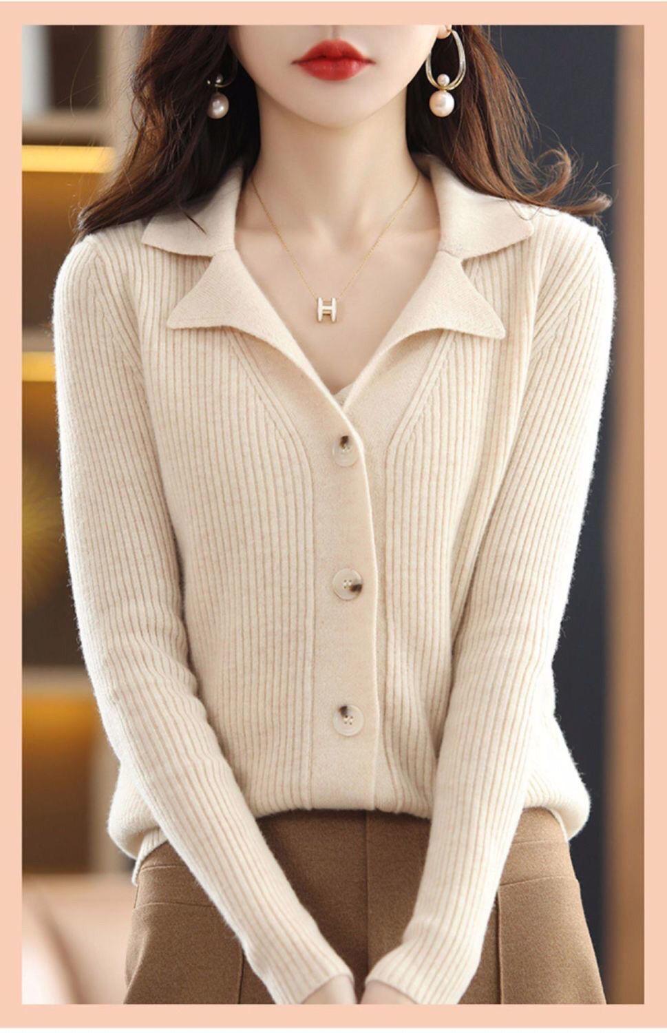 Cárdigan de punto con cuello de traje para mujer, suéter corto de fondo con cuello en V, abrigo de punto exterior, sentido del diseño para mujer
