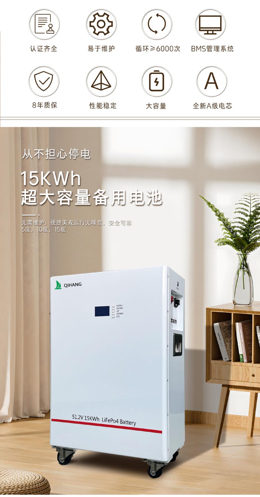 Batería móvil de almacenamiento de energía de 51.2V 300AH fosfato de hierro y litio 15KWH batería fotovoltaica solar doméstica