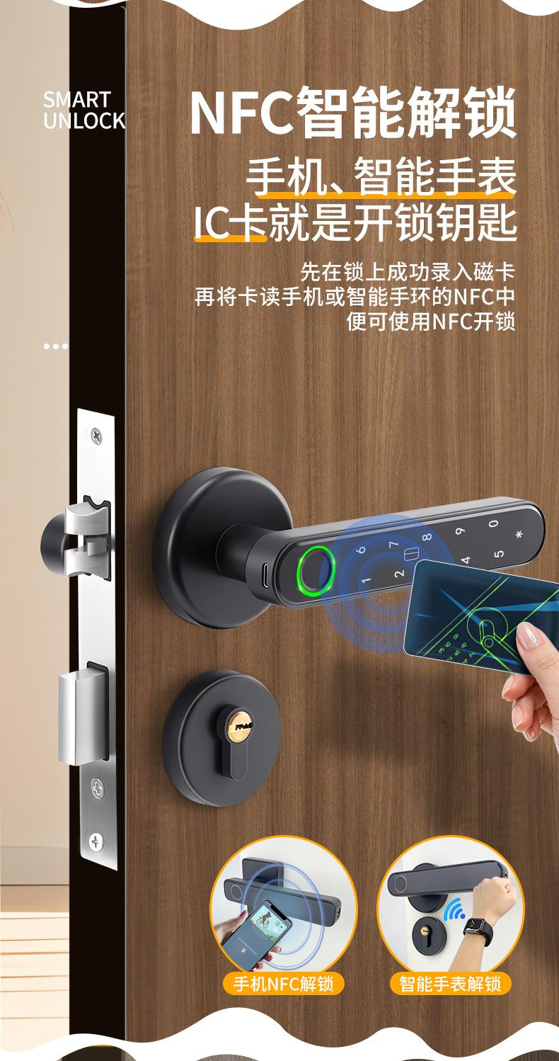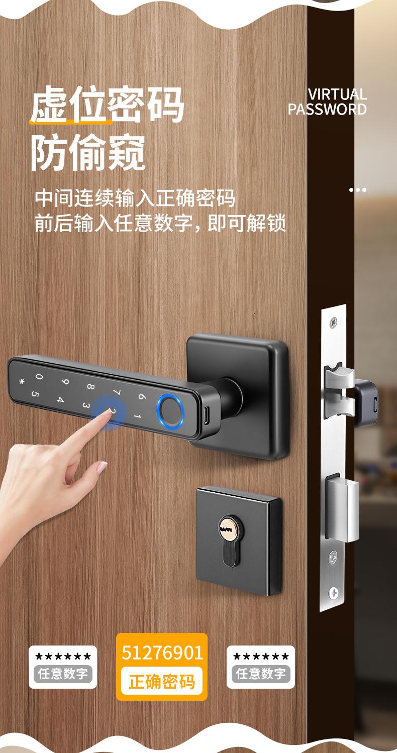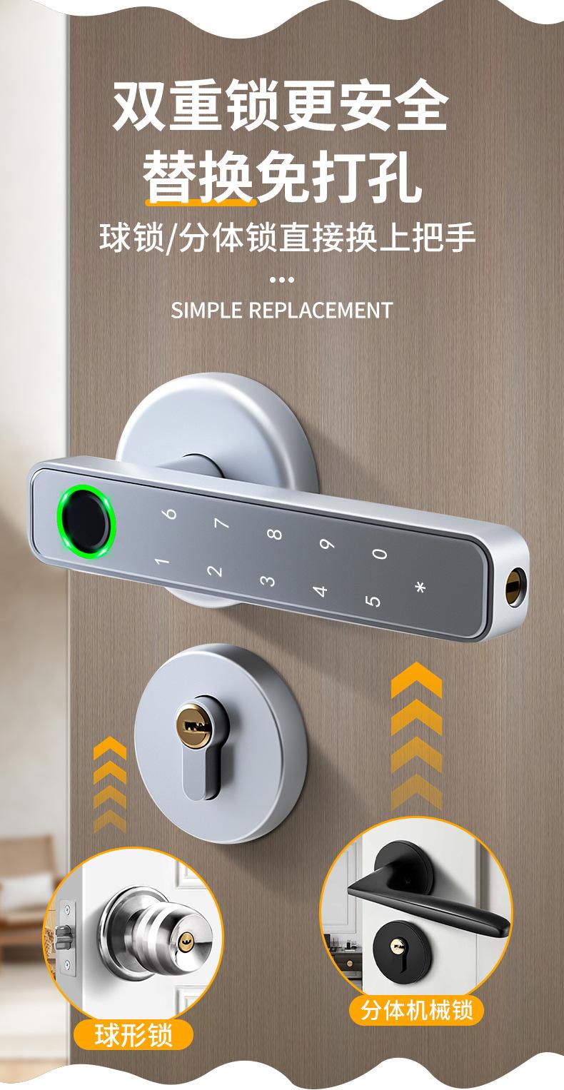 Cerradura inteligente con doble fila de grafiti para puerta de dormitorio, cerradura de madera para interiores, cerradura con huella dactilar, cerradura electrónica con contraseña para puerta de oficina