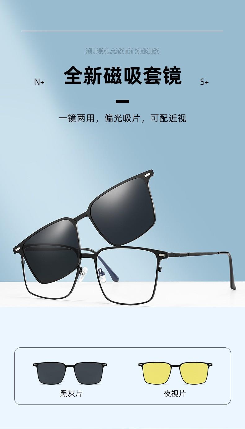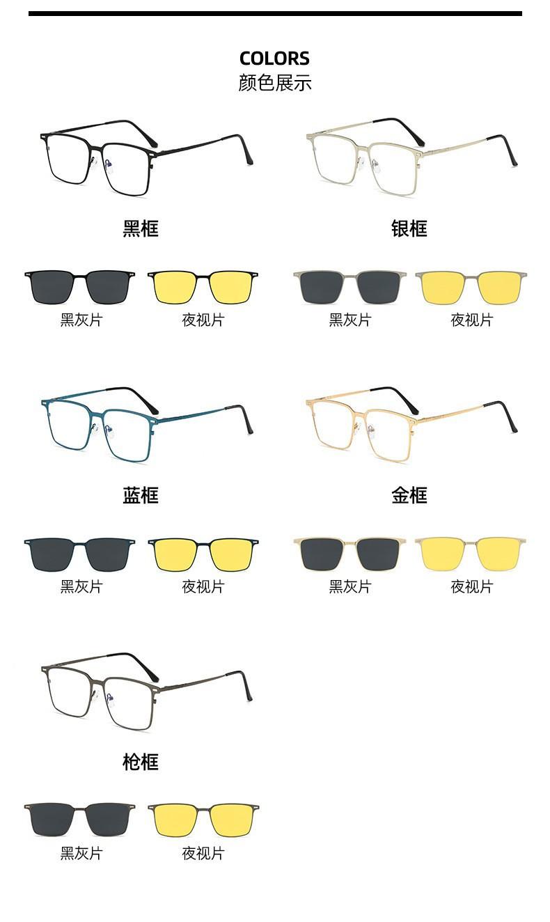 Black frame + 2-color polarized clip, Gun frame + 2 color polarized clips, Silver frame + 2-color polarized cl...