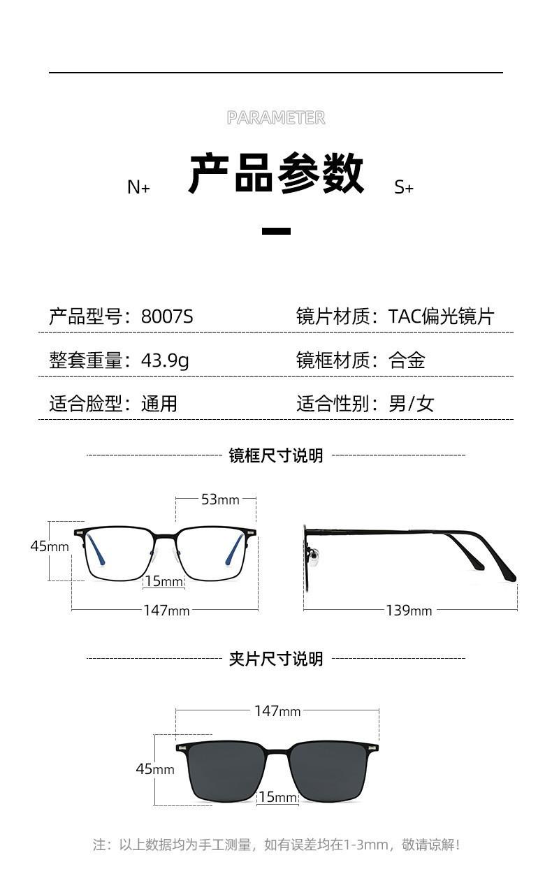 Gold frame + 2-color polarized clip, Black frame + 2-color polarized clip, Silver frame + 2-color polarized cl...