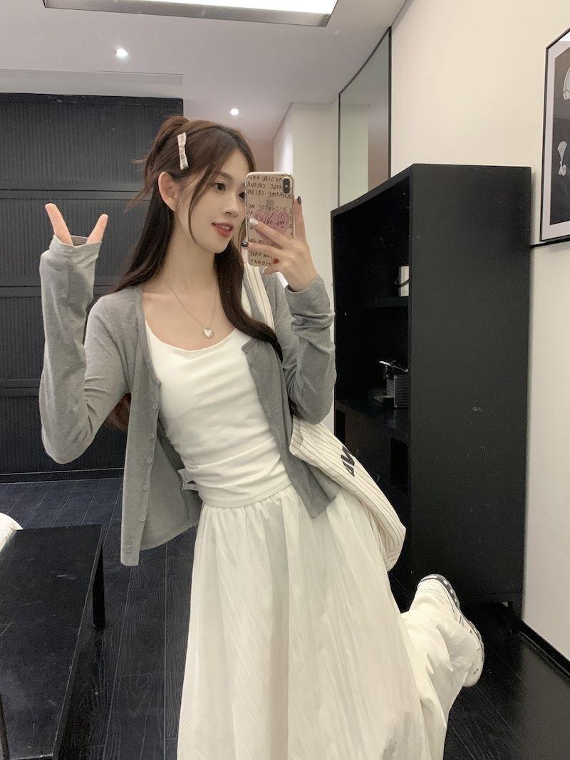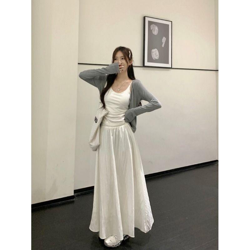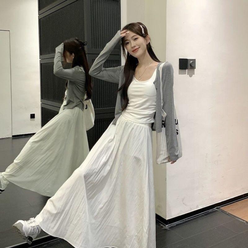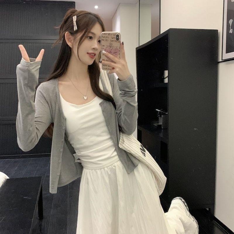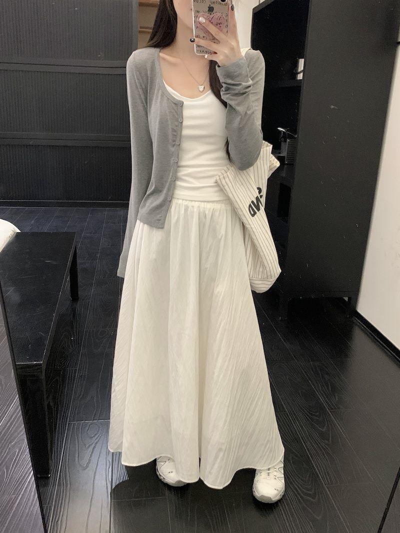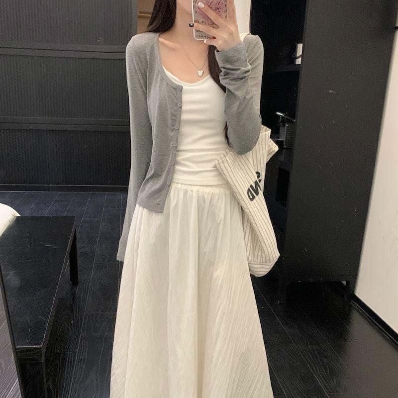 Falda Blanca Cárdigan de Tres Piezas Verano Elegante Estilo Diosa Estilo Sal Hermana Real Estilo Maduro Ligero Traje Falda Mangas Largas