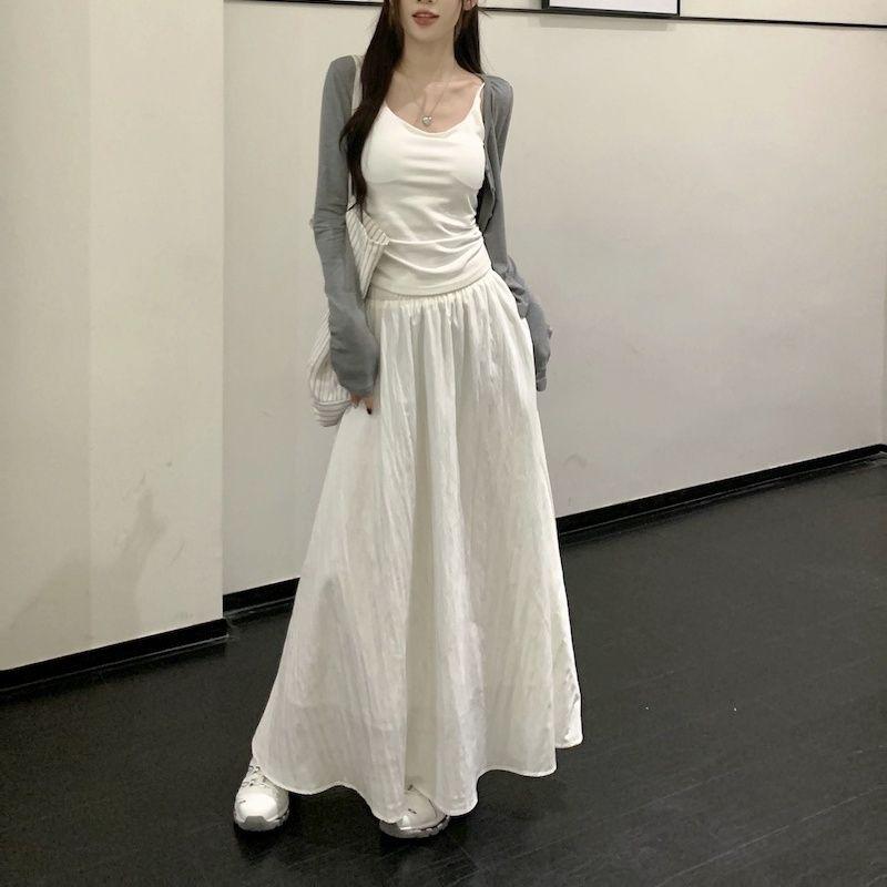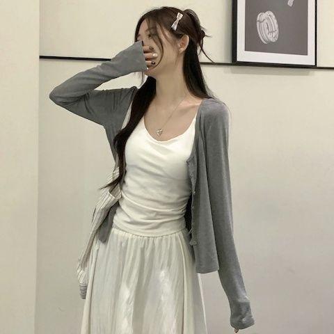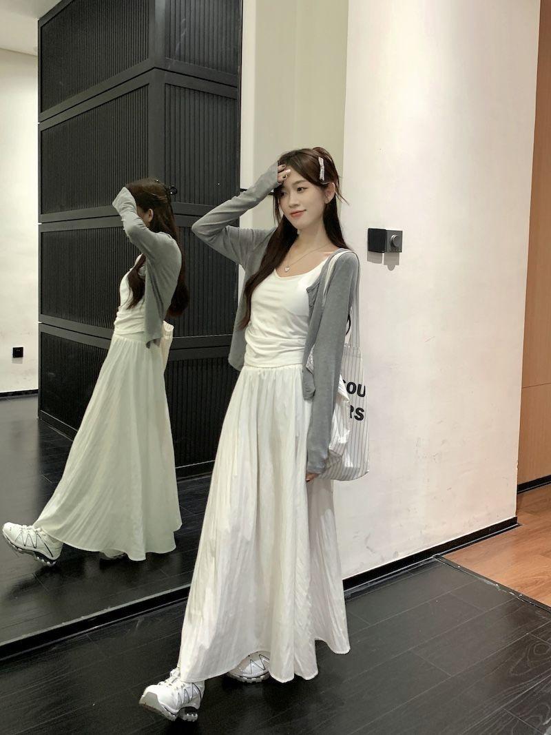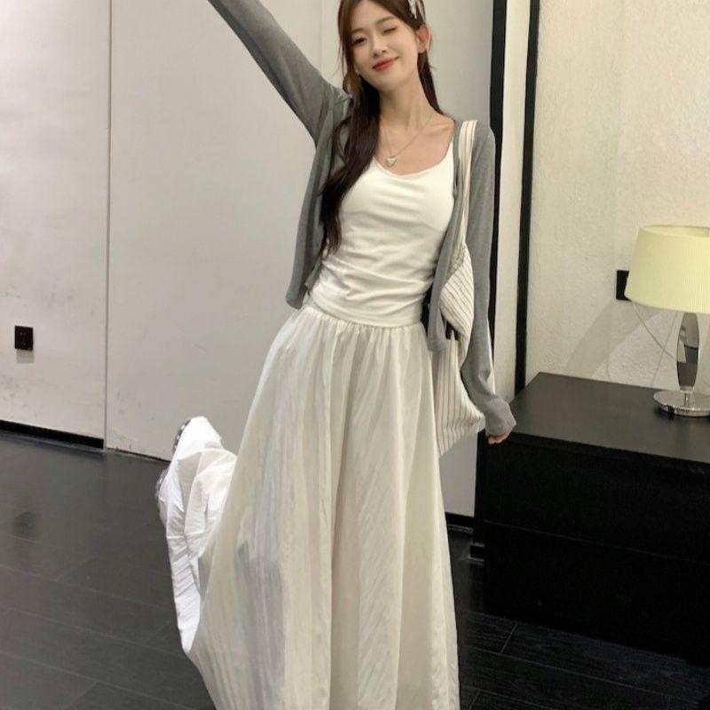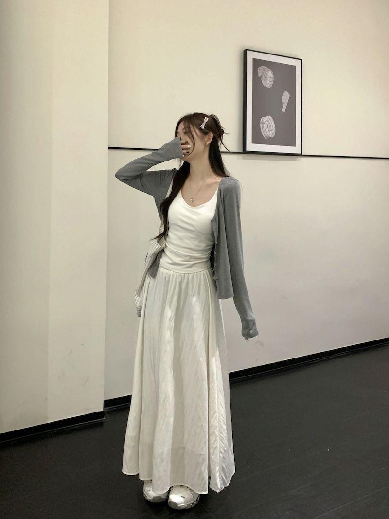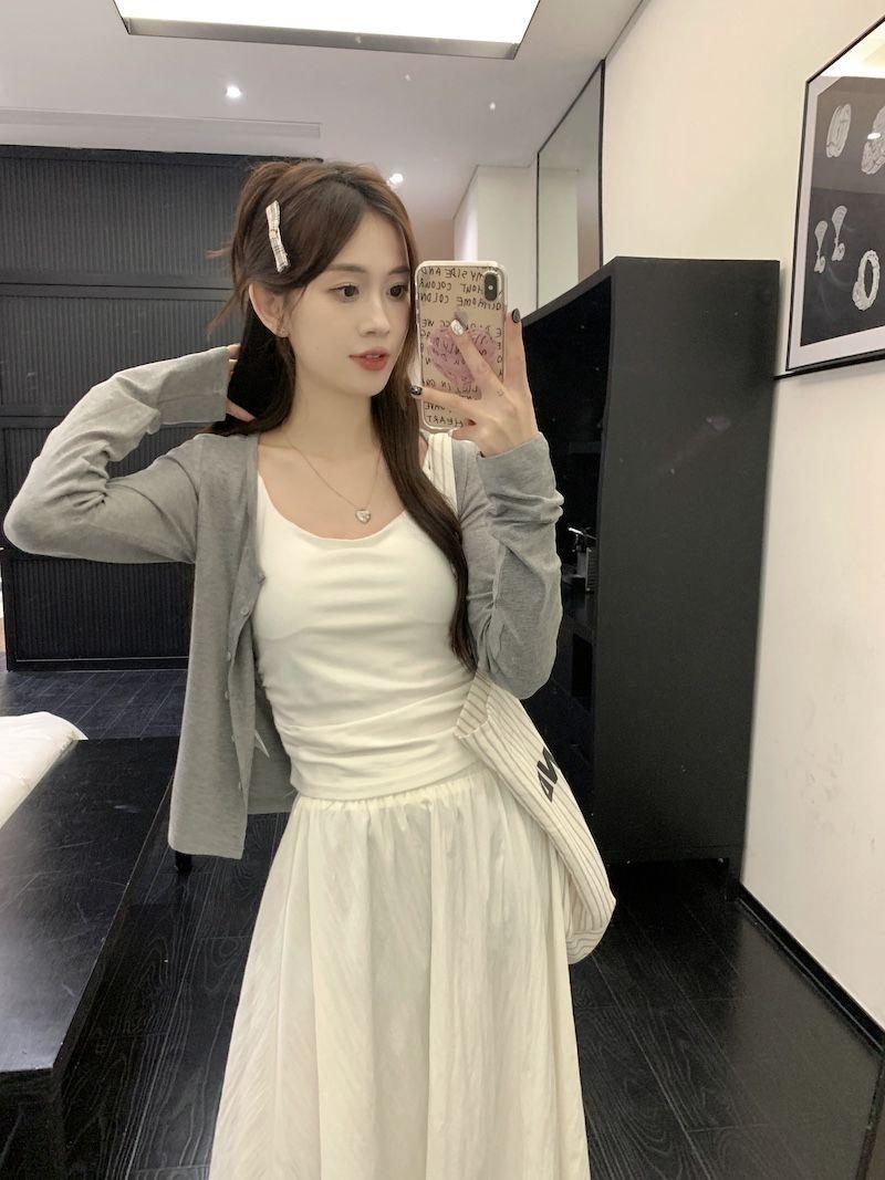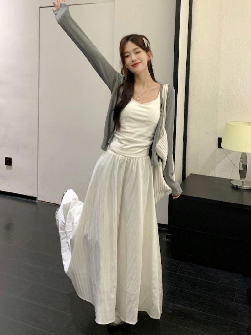 Falda Blanca Cárdigan de Tres Piezas Verano Elegante Estilo Diosa Estilo Sal Hermana Real Estilo Maduro Ligero Traje Falda Mangas Largas