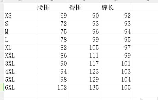 XS, S, M, L, XL, 2XL, 3XL, 4XL, 5XL, 6XL