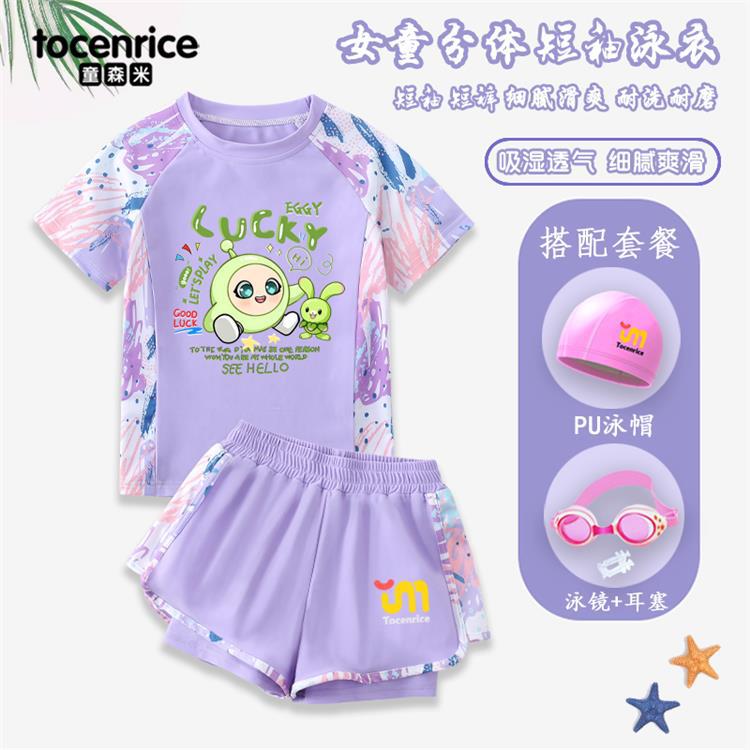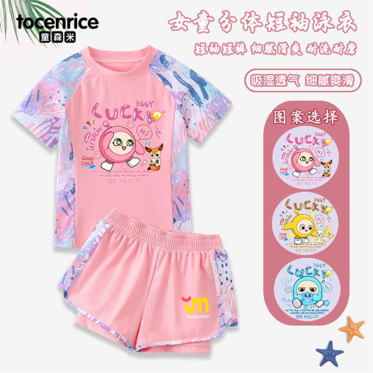 Traje de Baño Nuevo de Dibujos Animados Abby para Niñas Traje de Baño Dividido para Niñas Traje de Baño de Entrenamiento de Protección Solar para Niñas a la Moda # 205