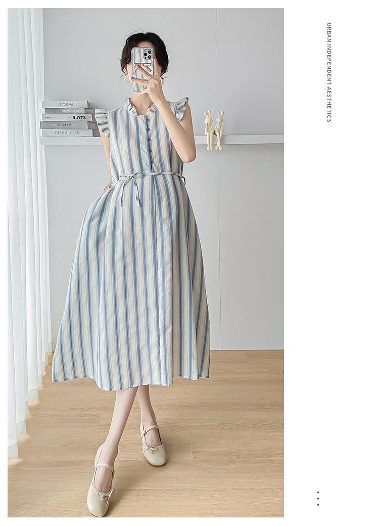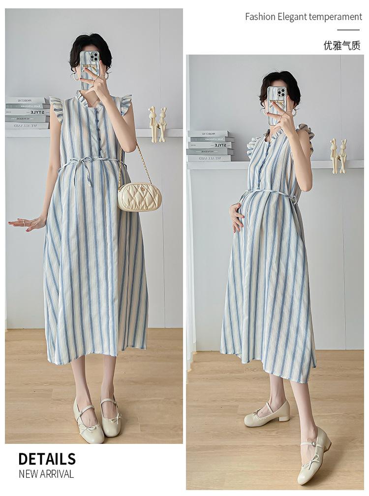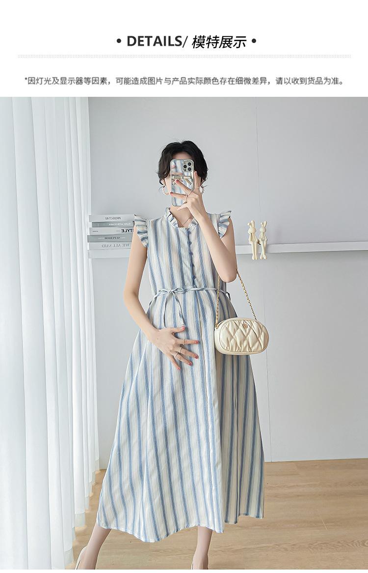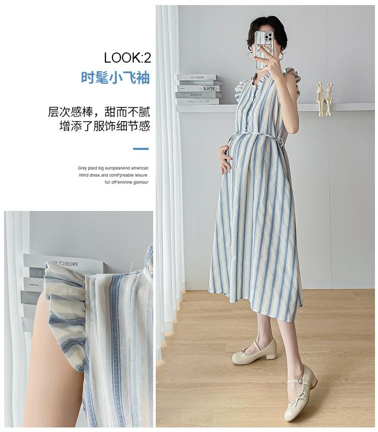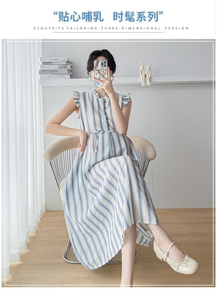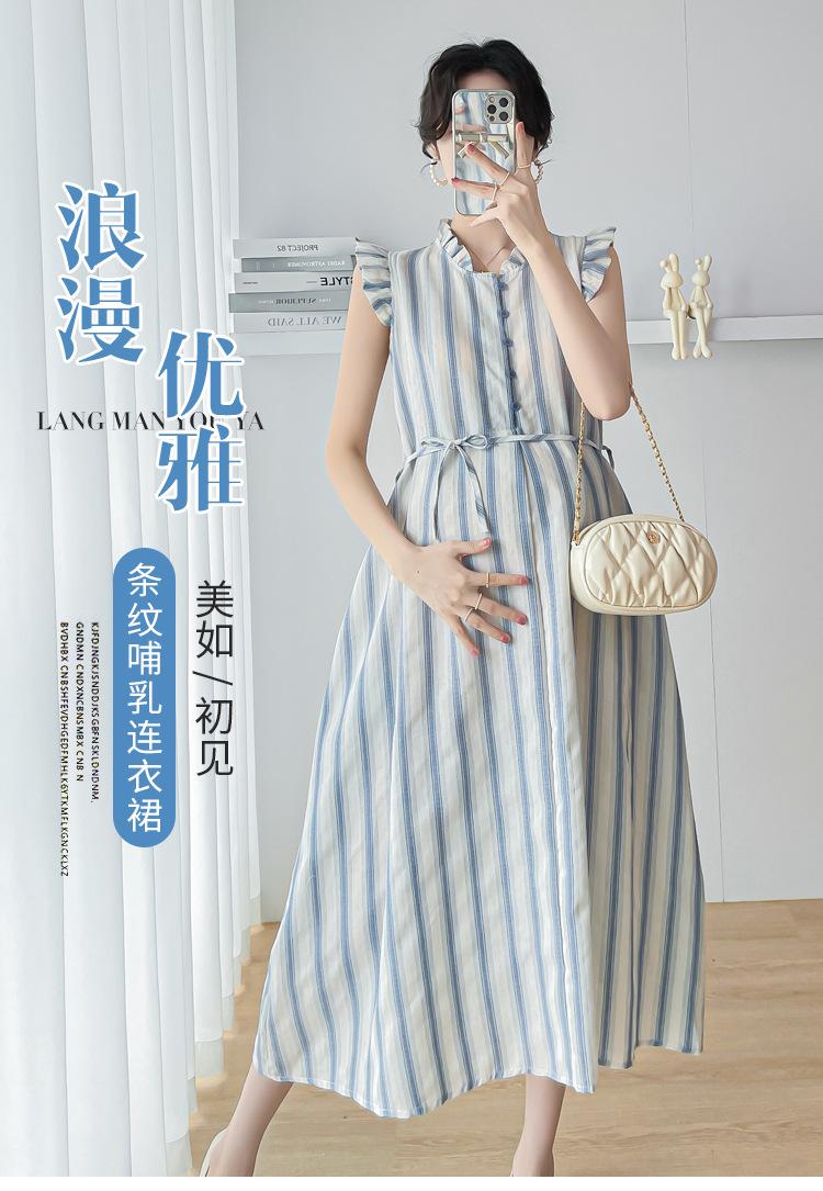 Ropa de maternidad 2024 Verano nuevo pequeño fresco azul a rayas manga corta con volantes pequeño vestido de lactancia para mujeres embarazadas ropa de lactancia