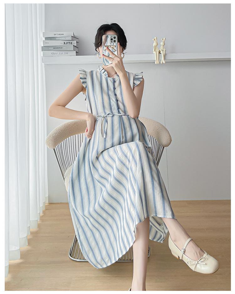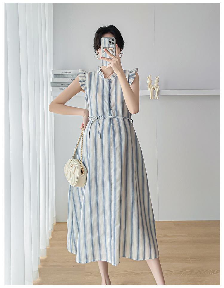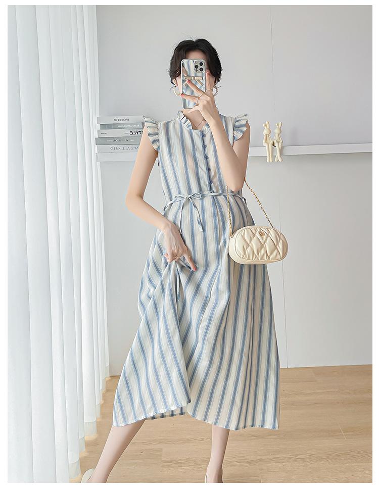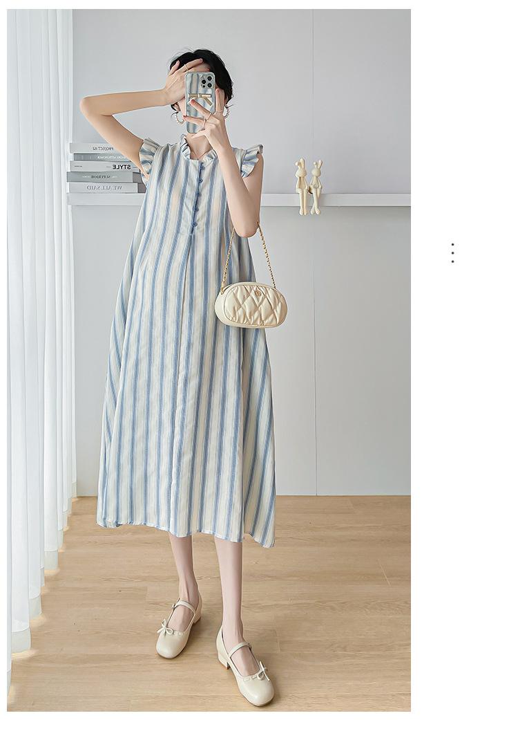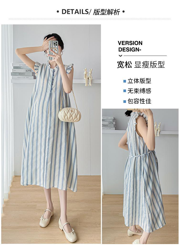 Ropa de maternidad 2024 Verano nuevo pequeño fresco azul a rayas manga corta con volantes pequeño vestido de lactancia para mujeres embarazadas ropa de lactancia