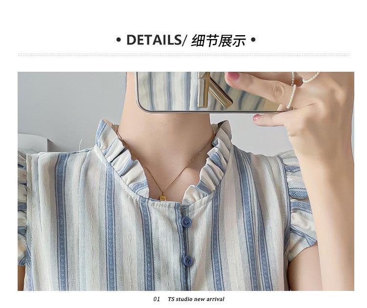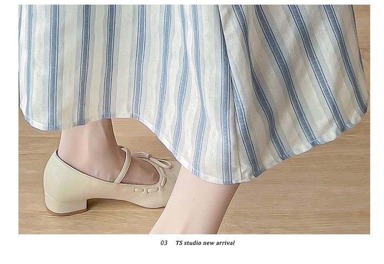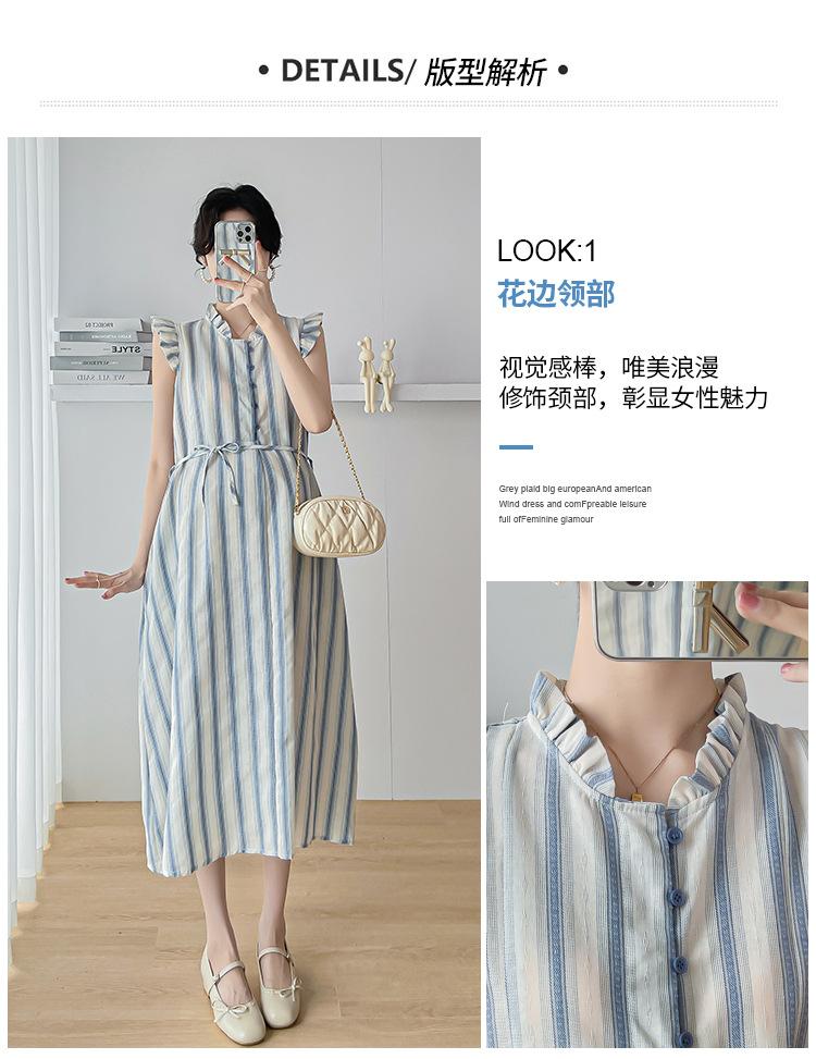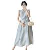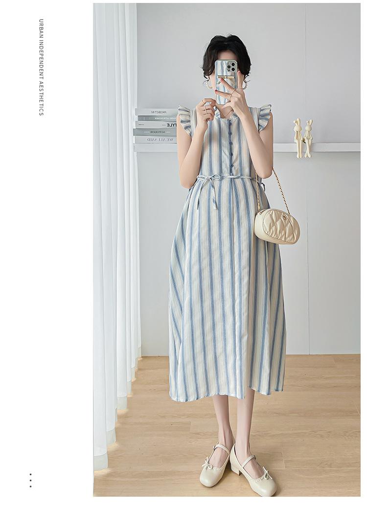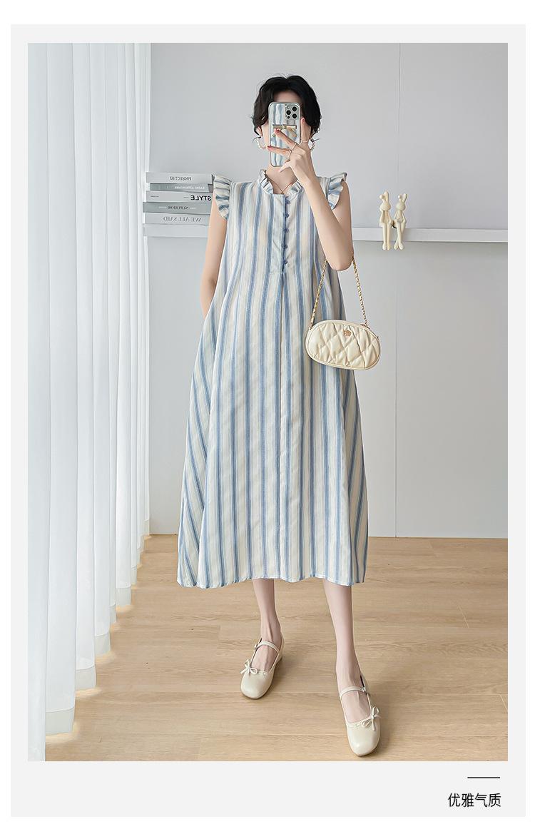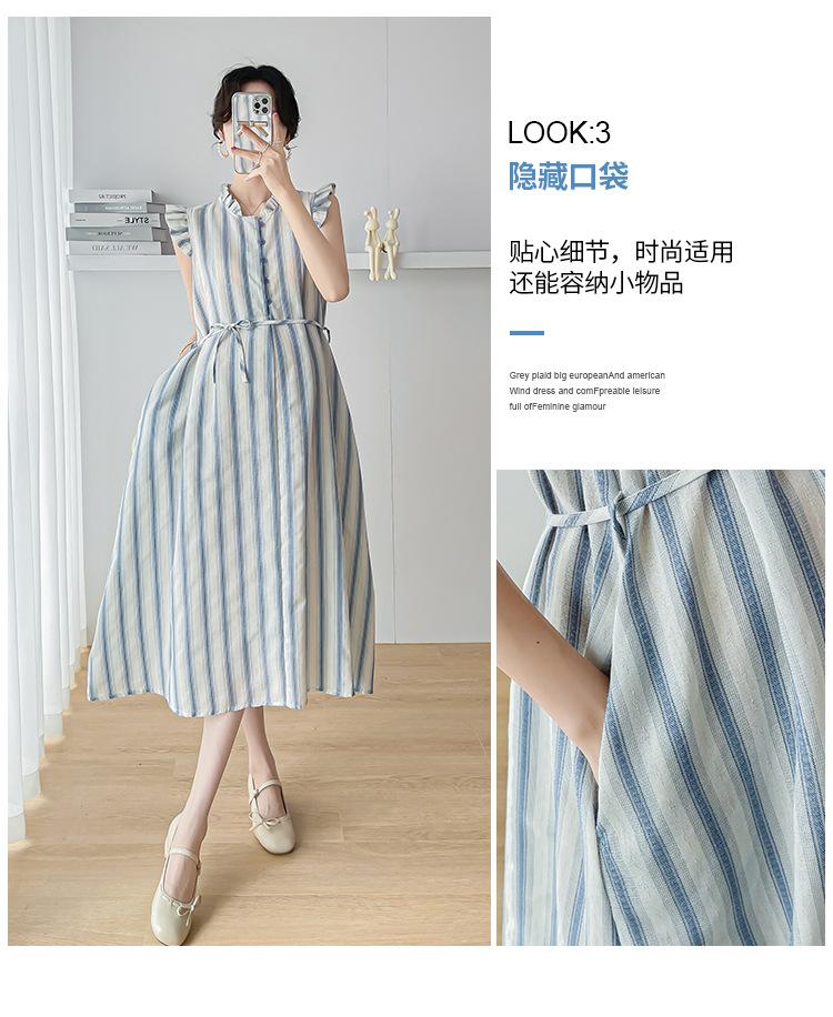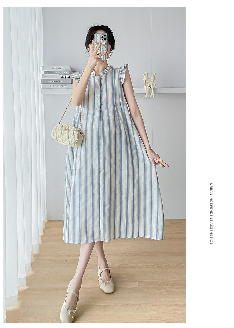 Ropa de maternidad 2024 Verano nuevo pequeño fresco azul a rayas manga corta con volantes pequeño vestido de lactancia para mujeres embarazadas ropa de lactancia