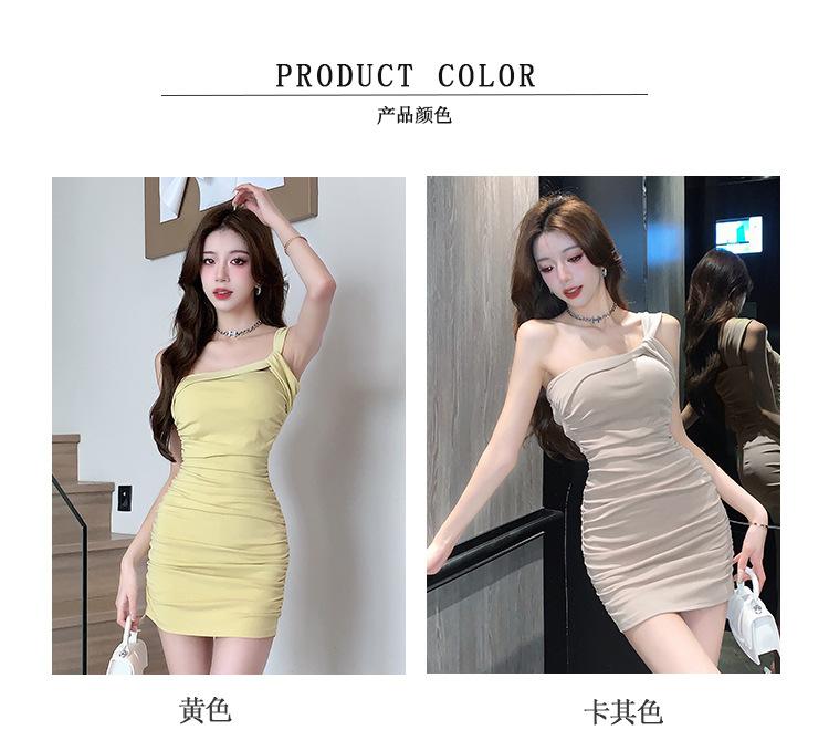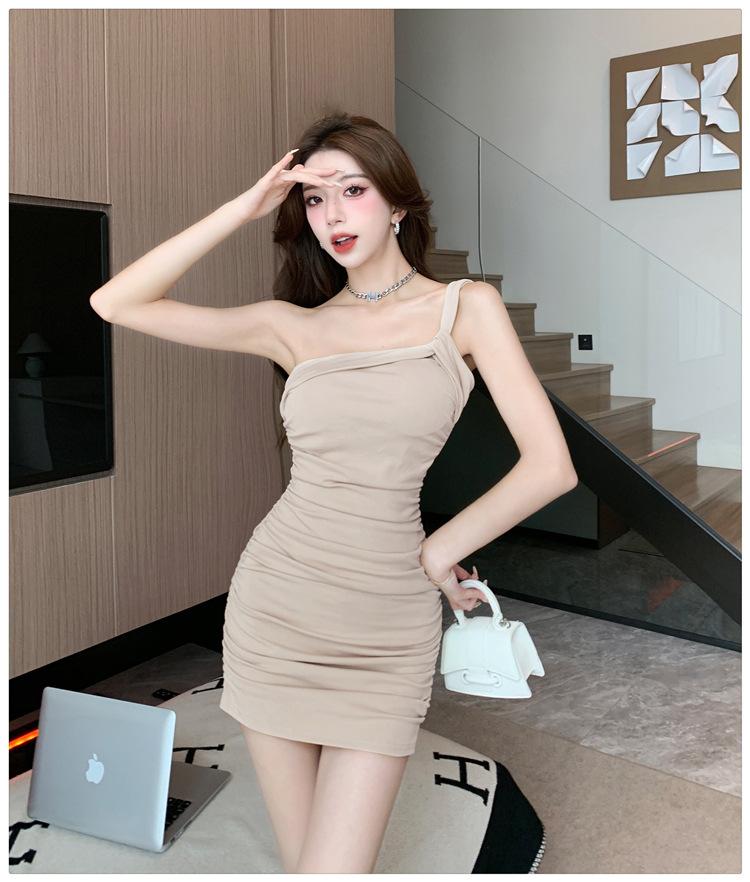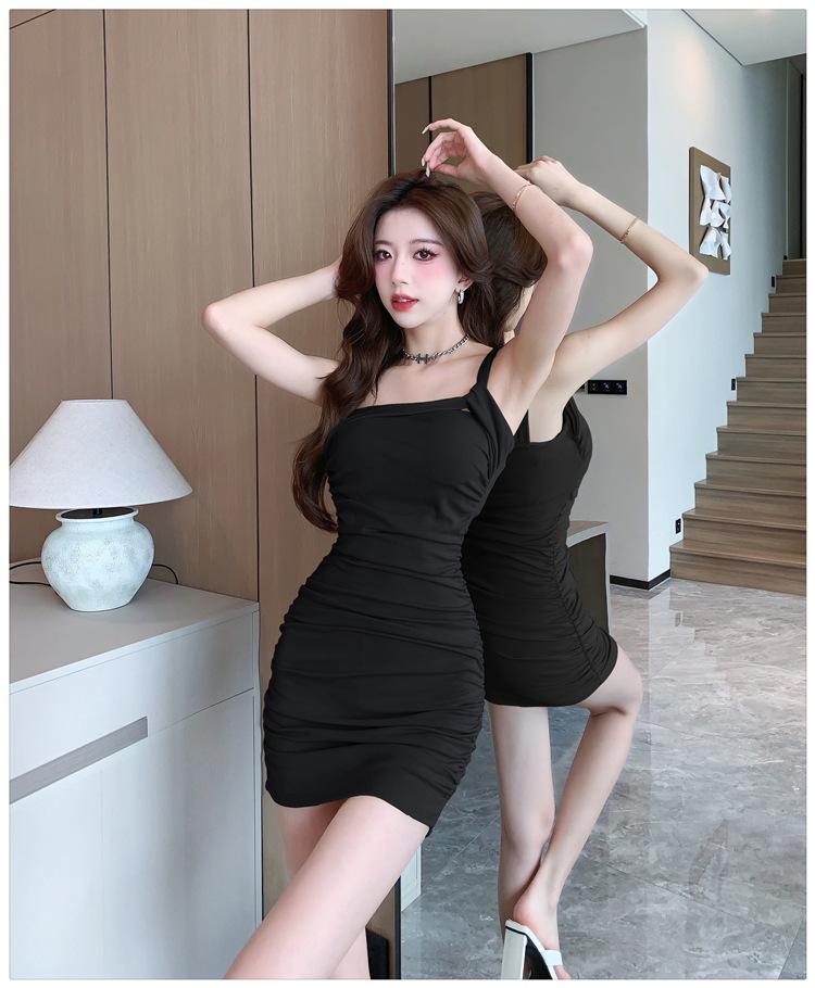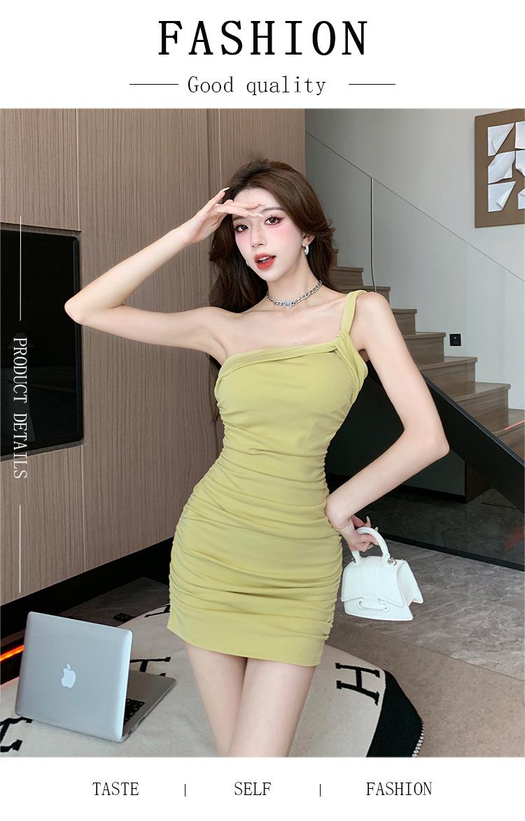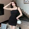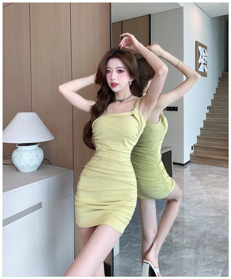 Vestido Bandolera Plisado de Color Sólido para Mujer Verano Nuevo Diseño Sensual Falda de Cadera Moda Chica Picante Pura