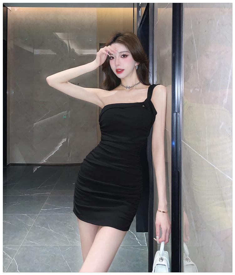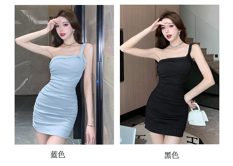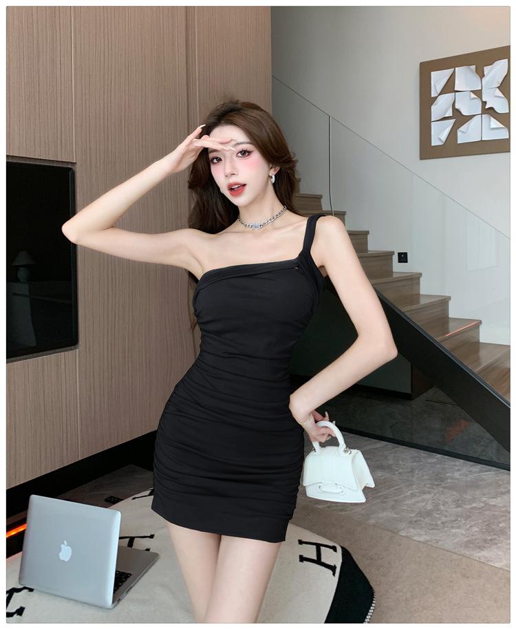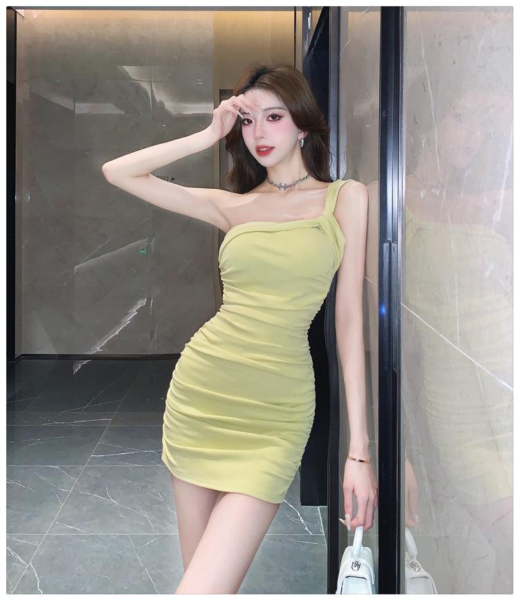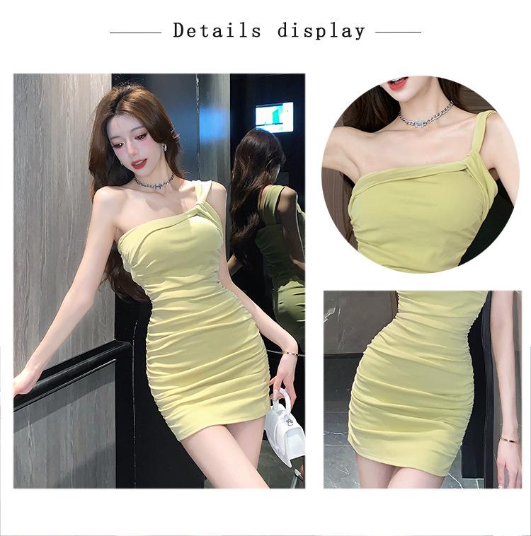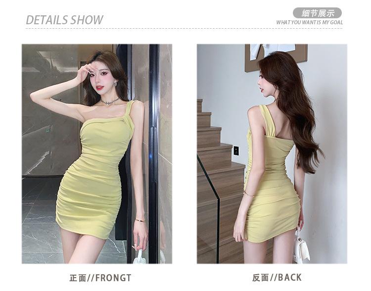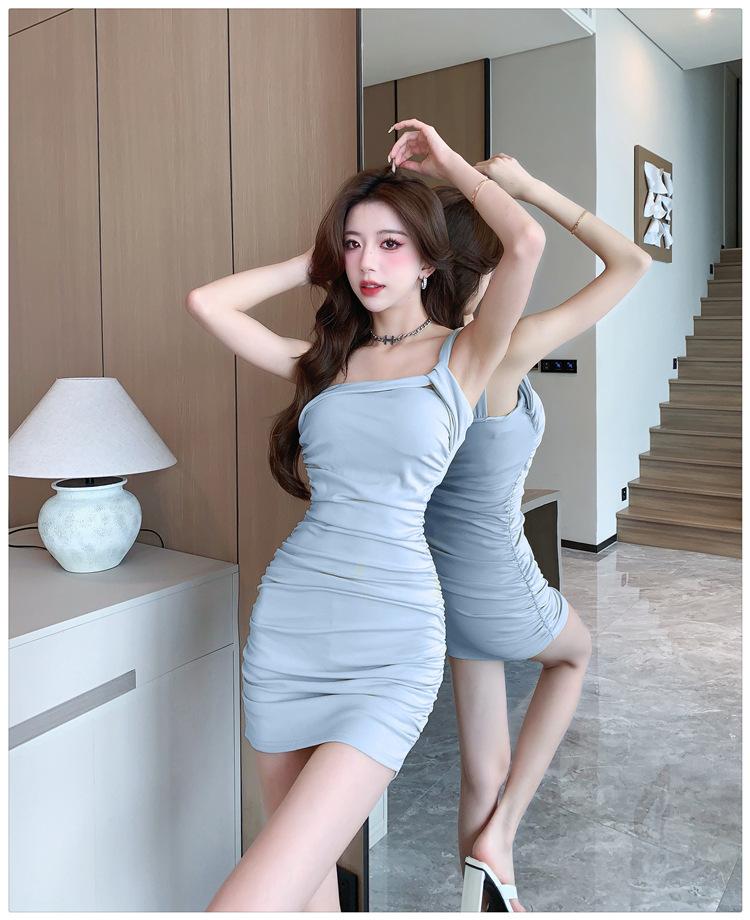 Vestido Bandolera Plisado de Color Sólido para Mujer Verano Nuevo Diseño Sensual Falda de Cadera Moda Chica Picante Pura