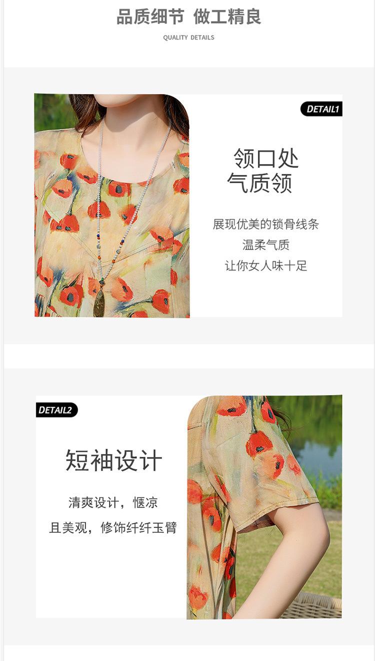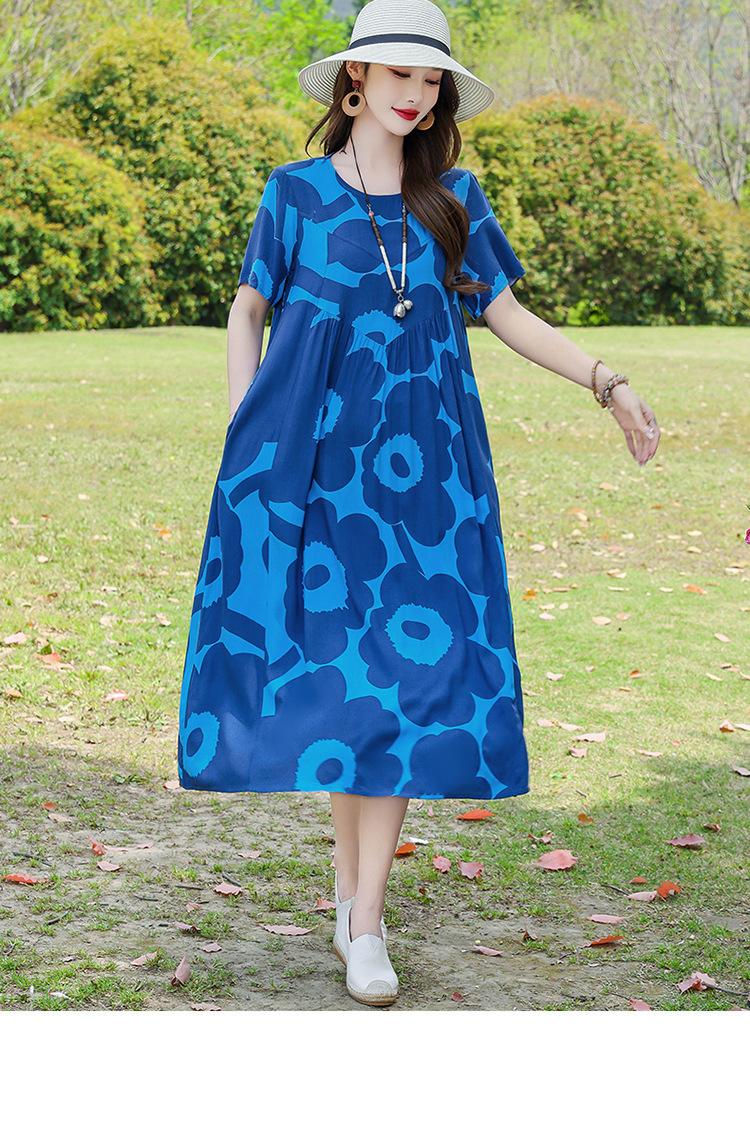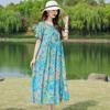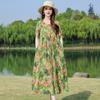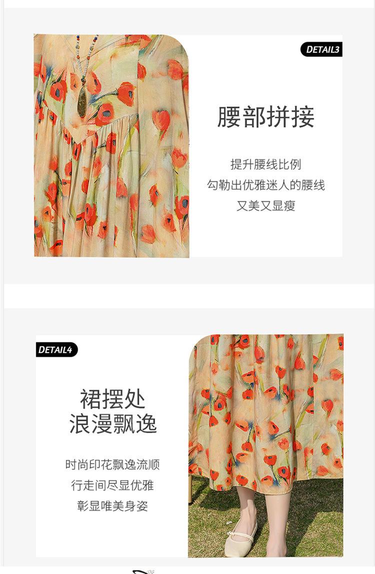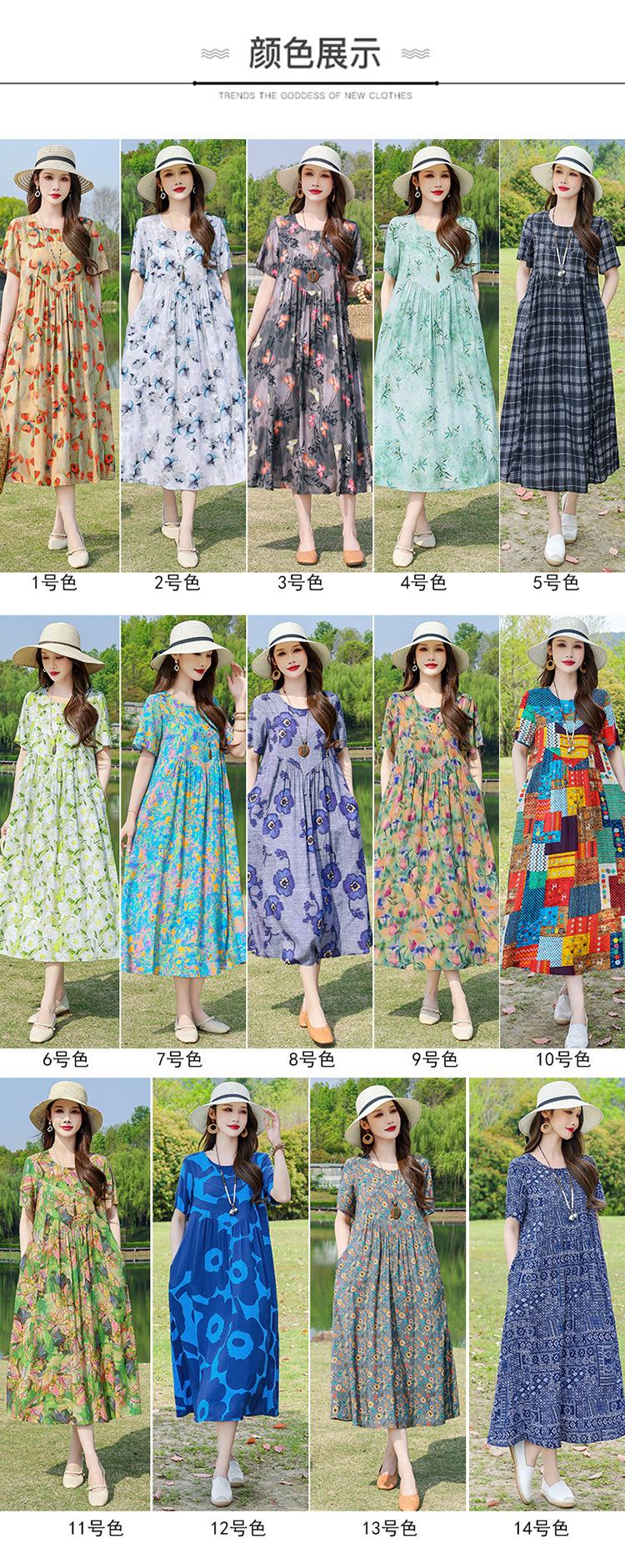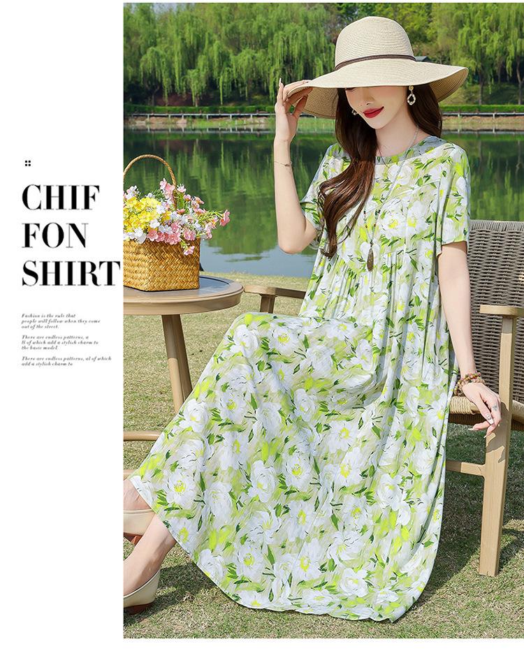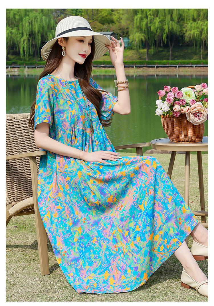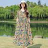 Nuevo vestido de verano de alta gama de algodón y seda para mujer, de longitud media, de moda, estilo occidental, falda de seda con flores artificiales de algodón.