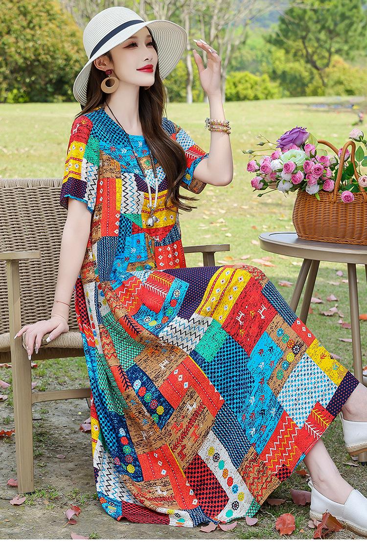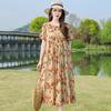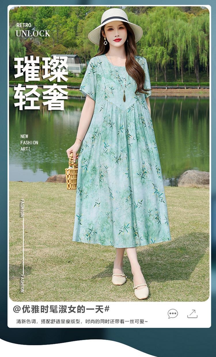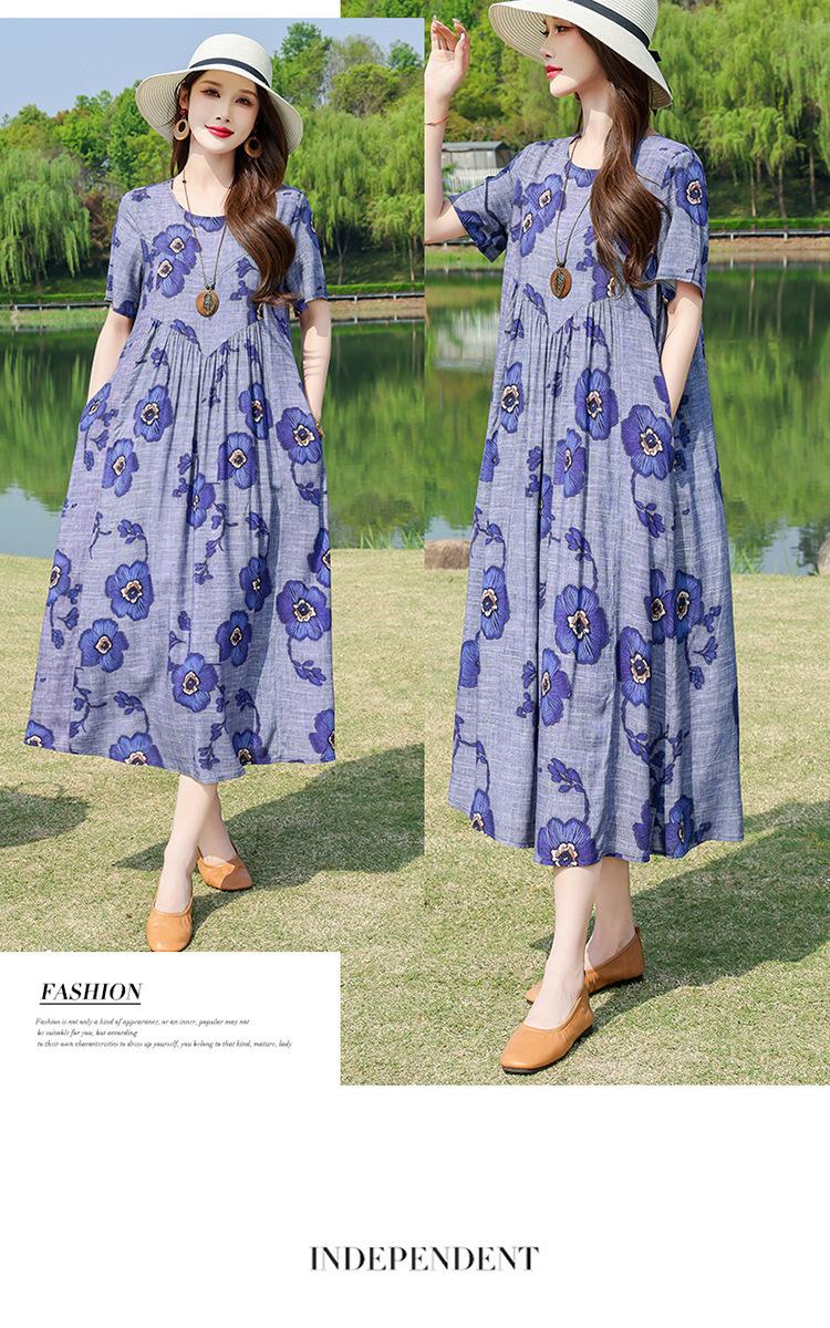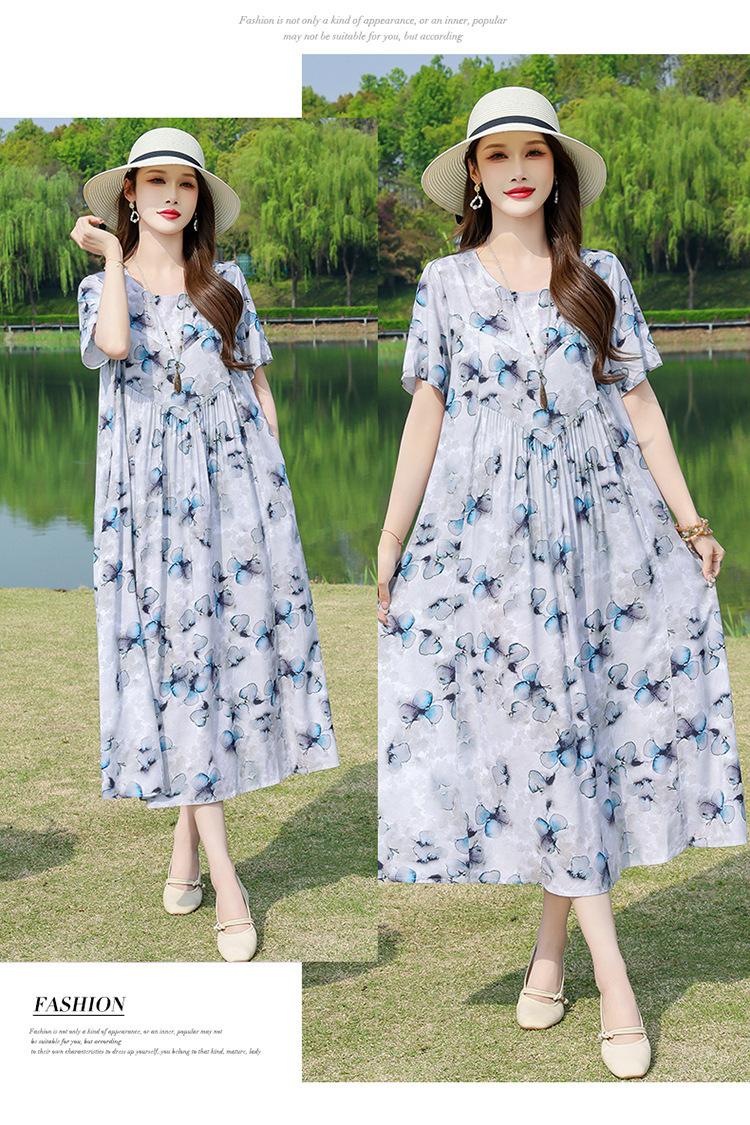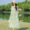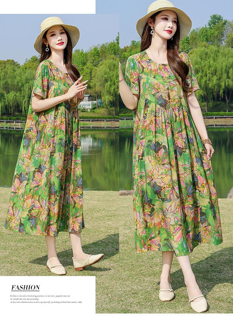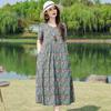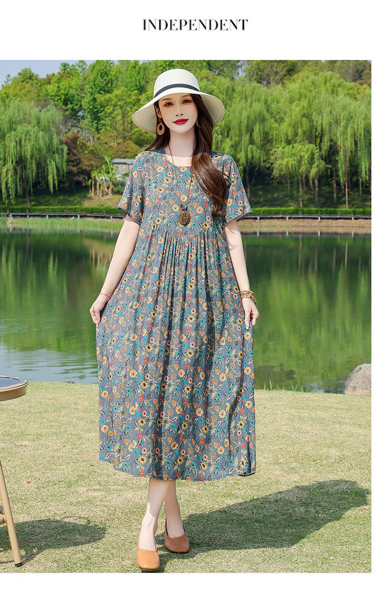 Nuevo vestido de verano de alta gama de algodón y seda para mujer, de longitud media, de moda, estilo occidental, falda de seda con flores artificiales de algodón.