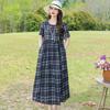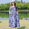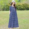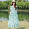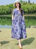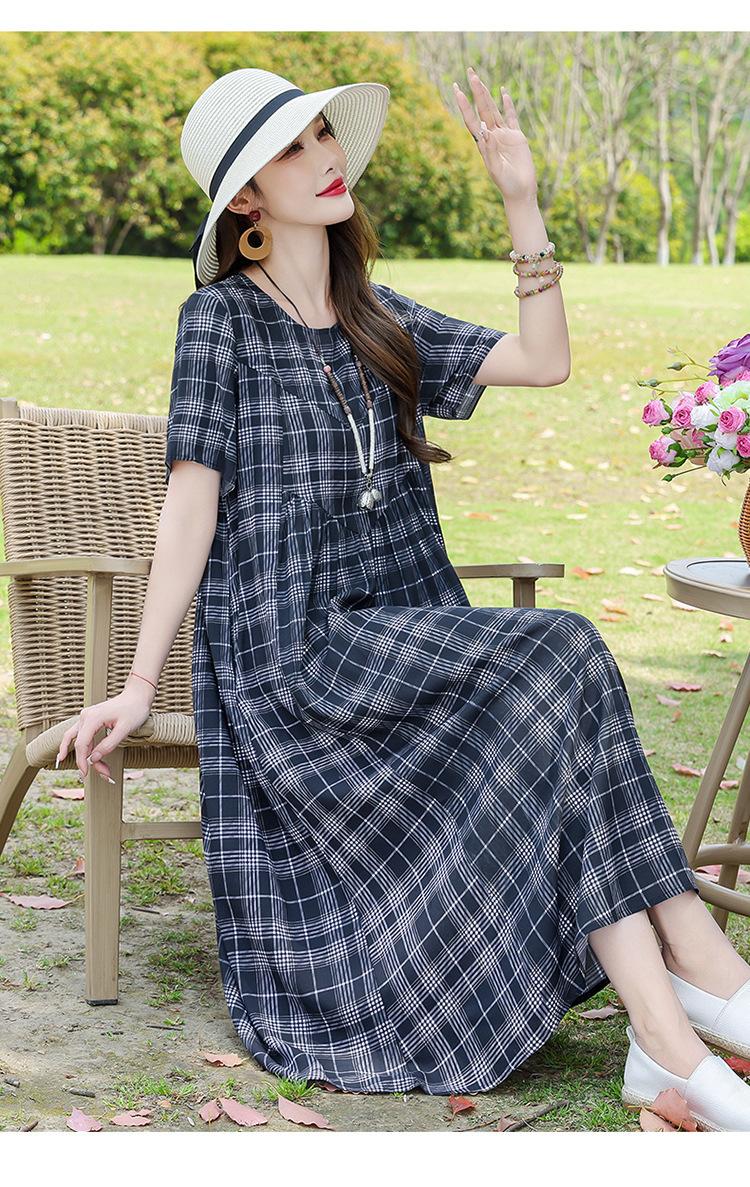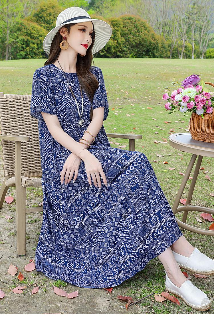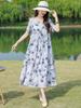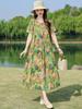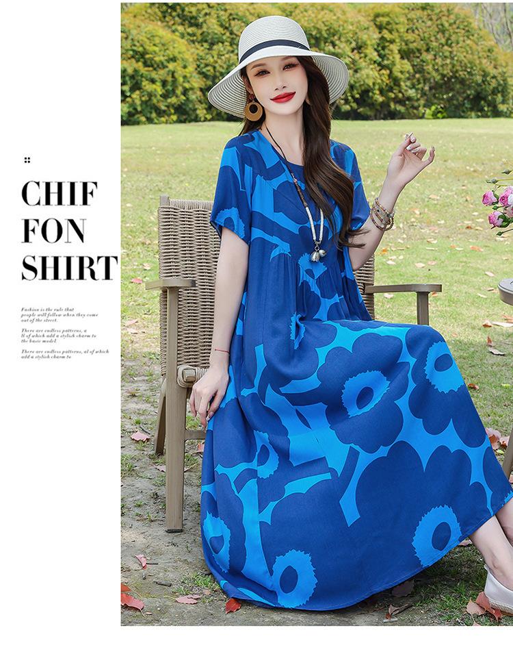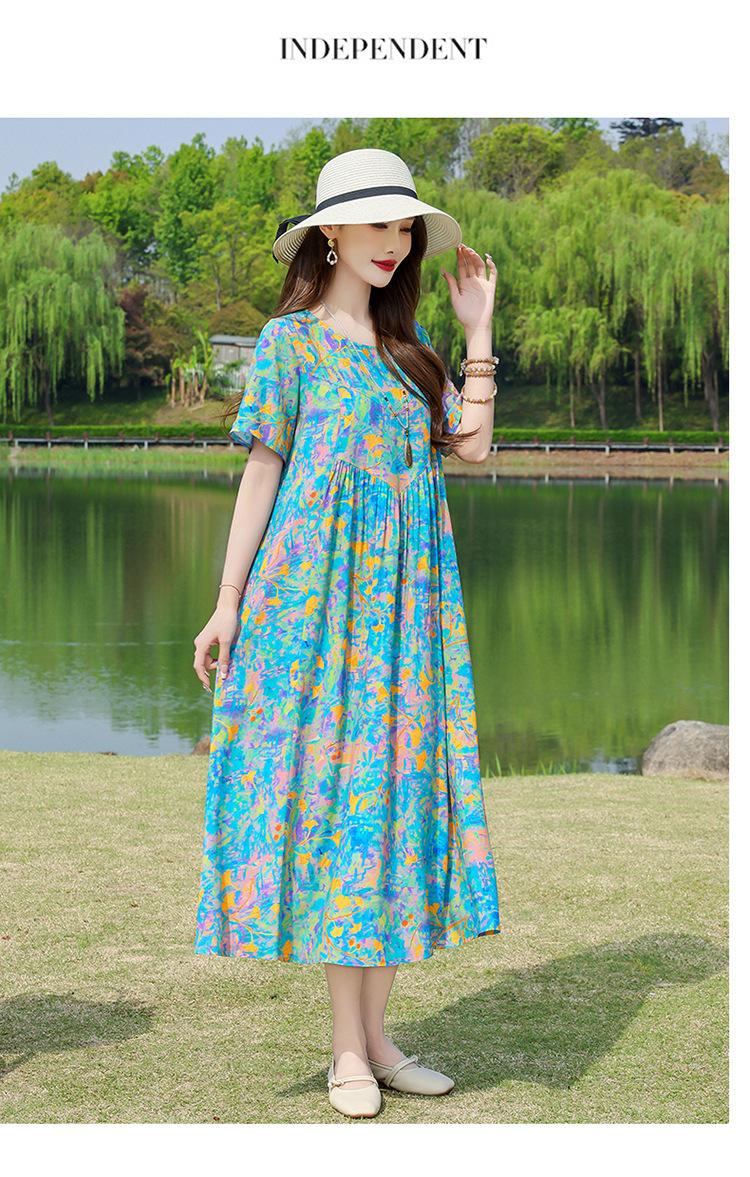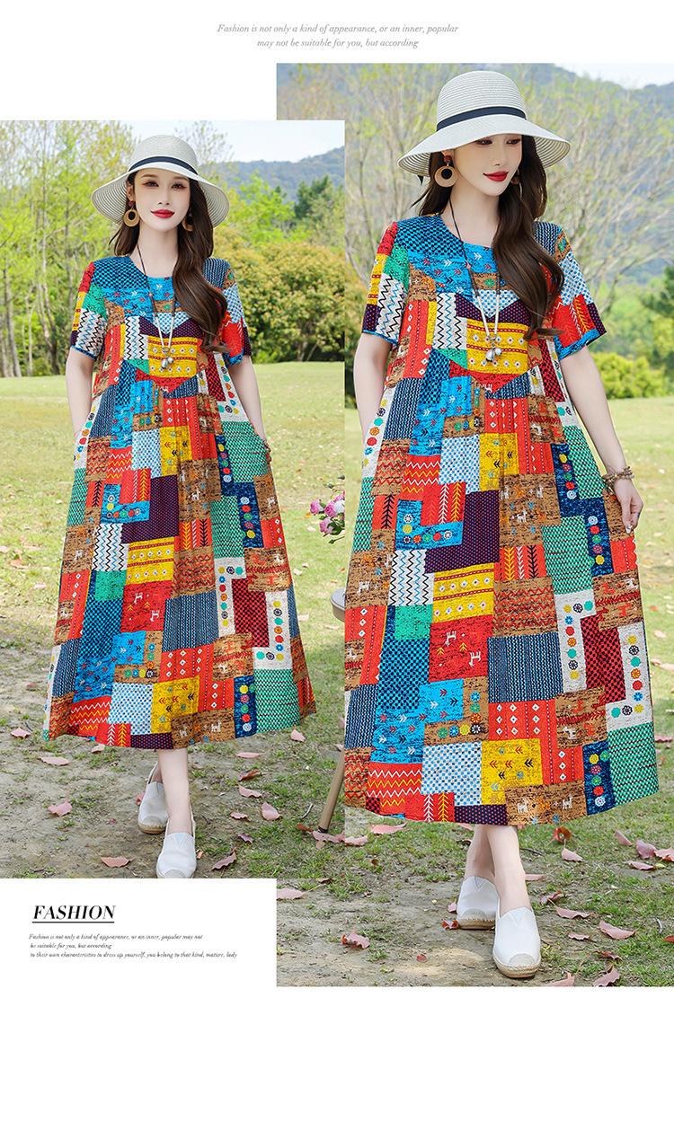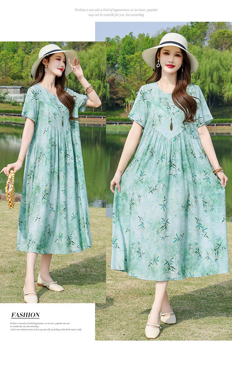 Nuevo vestido de verano de alta gama de algodón y seda para mujer, de longitud media, de moda, estilo occidental, falda de seda con flores artificiales de algodón.