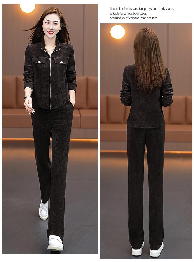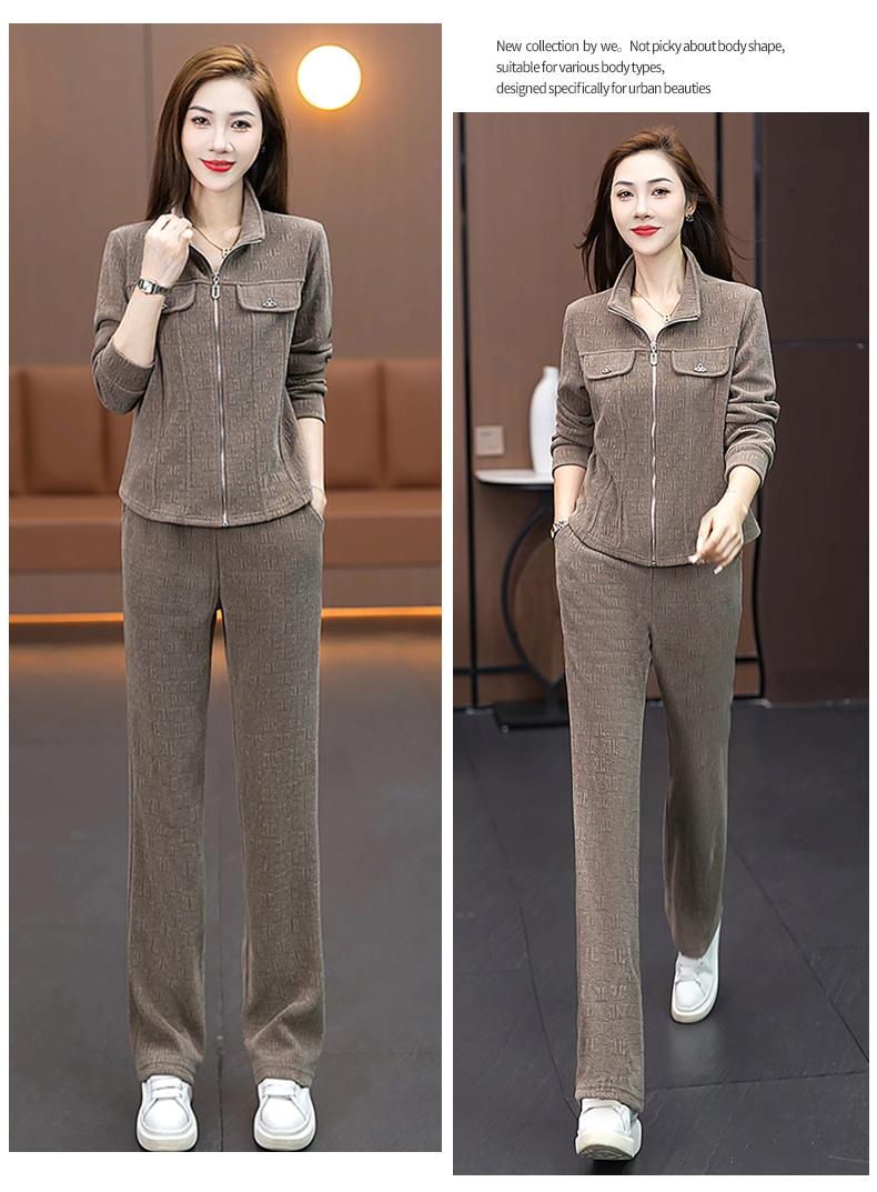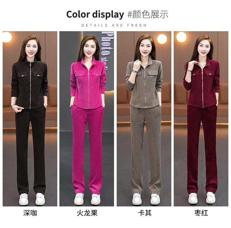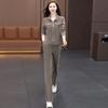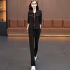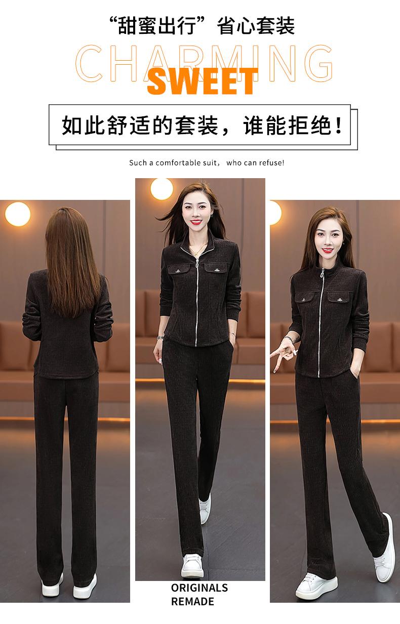 Traje deportivo de moda de alta gama para mujer, primavera y otoño, nuevo, elegante suéter adelgazante con cuello, cárdigan con cremallera, pantalones, conjunto de dos piezas