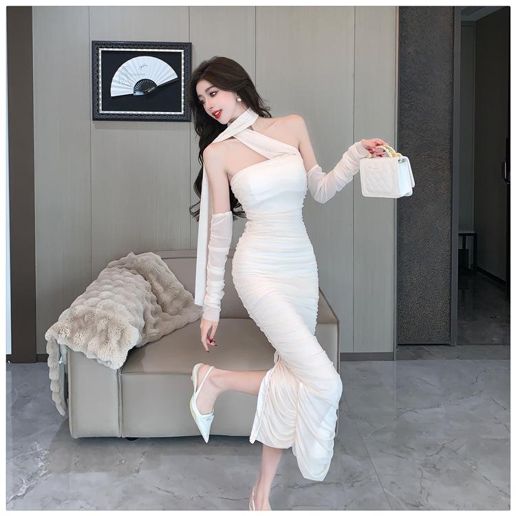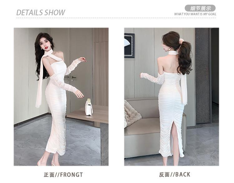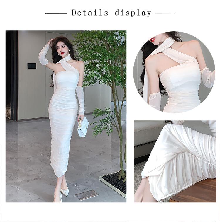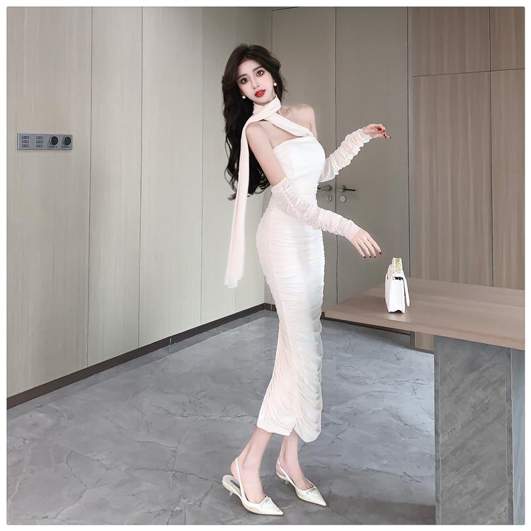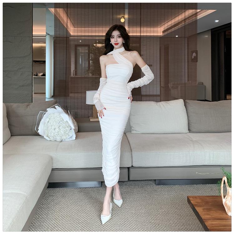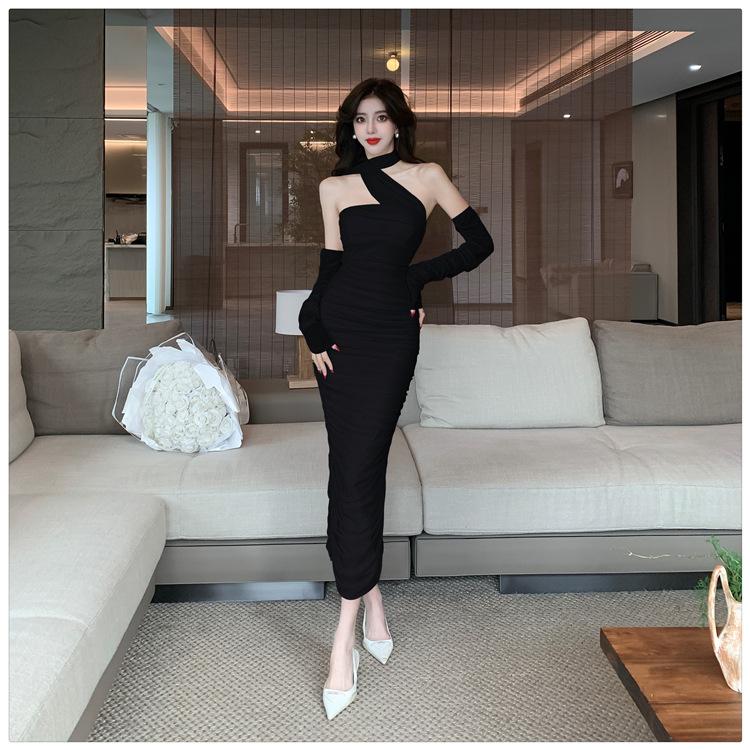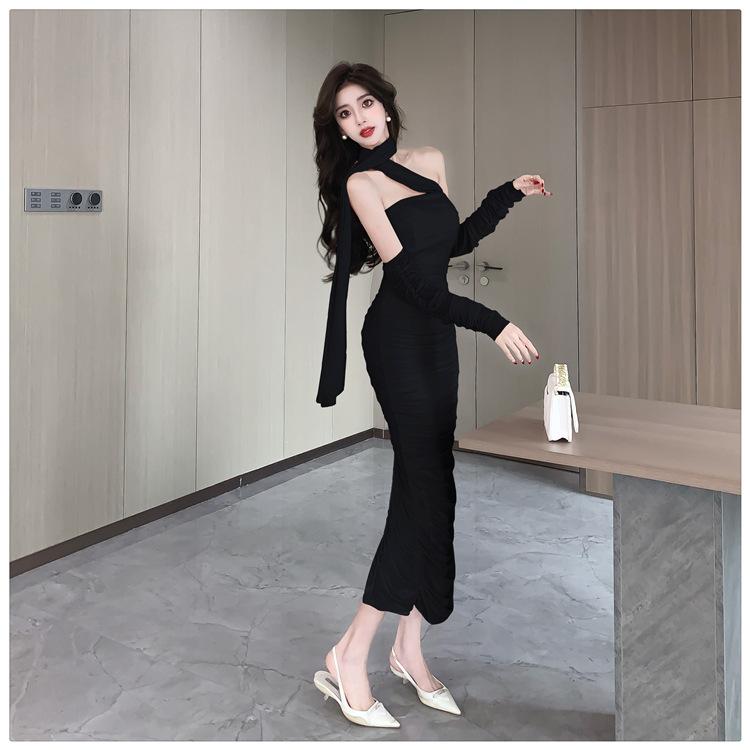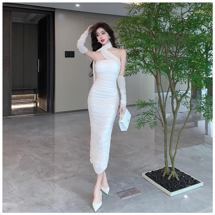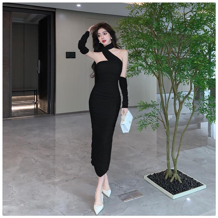 Vestido tubo ajustado de primavera y verano 2025 para mujer, vestido largo ajustado con cuello, falda sexy a la cadera con mangas