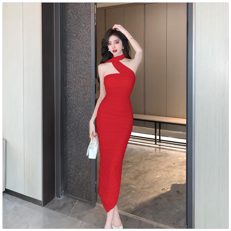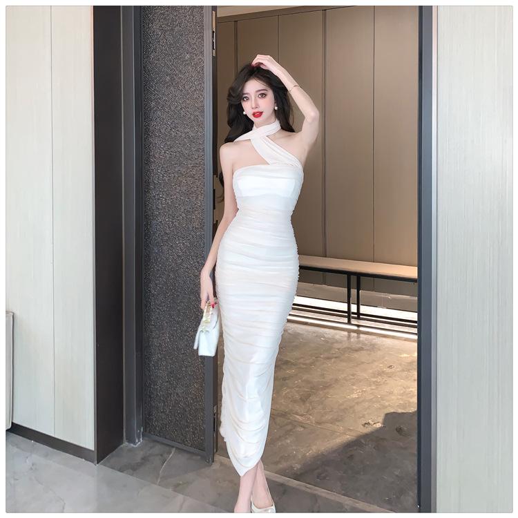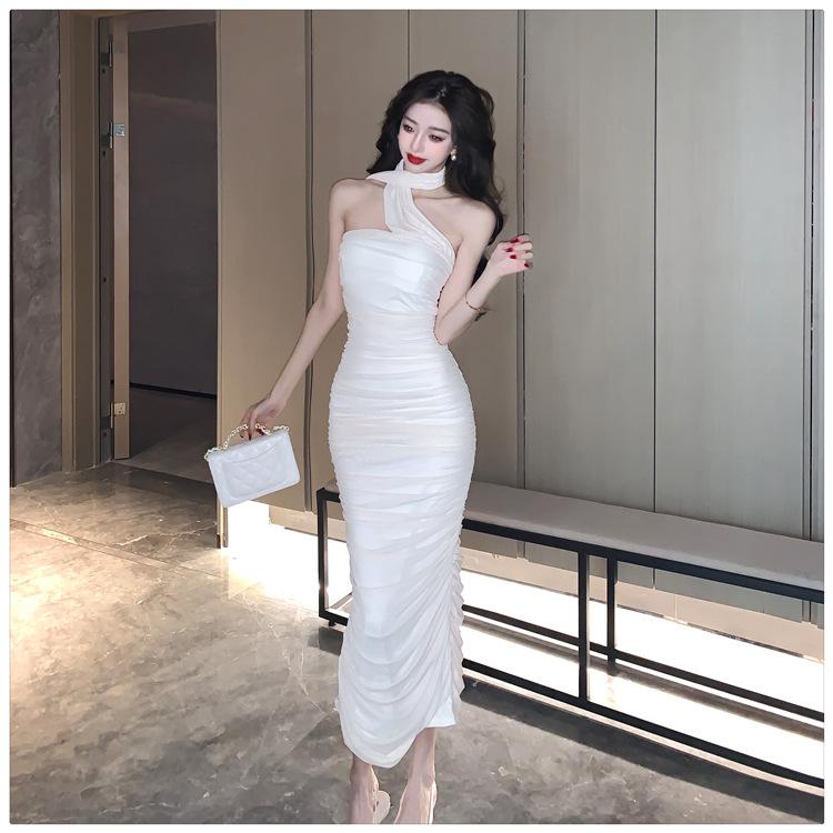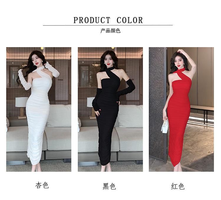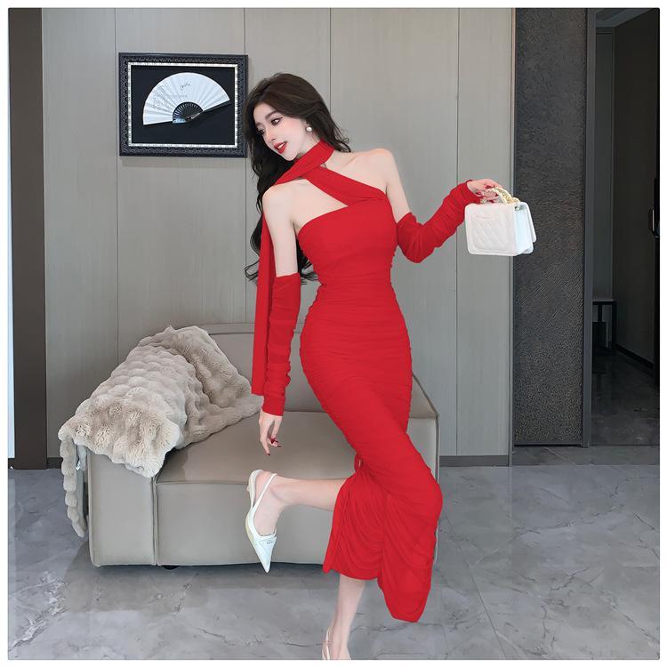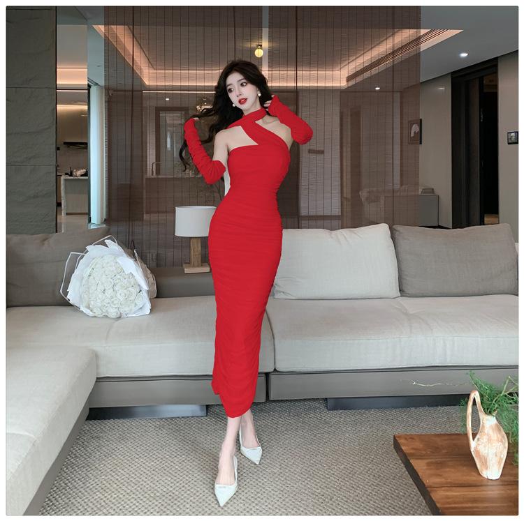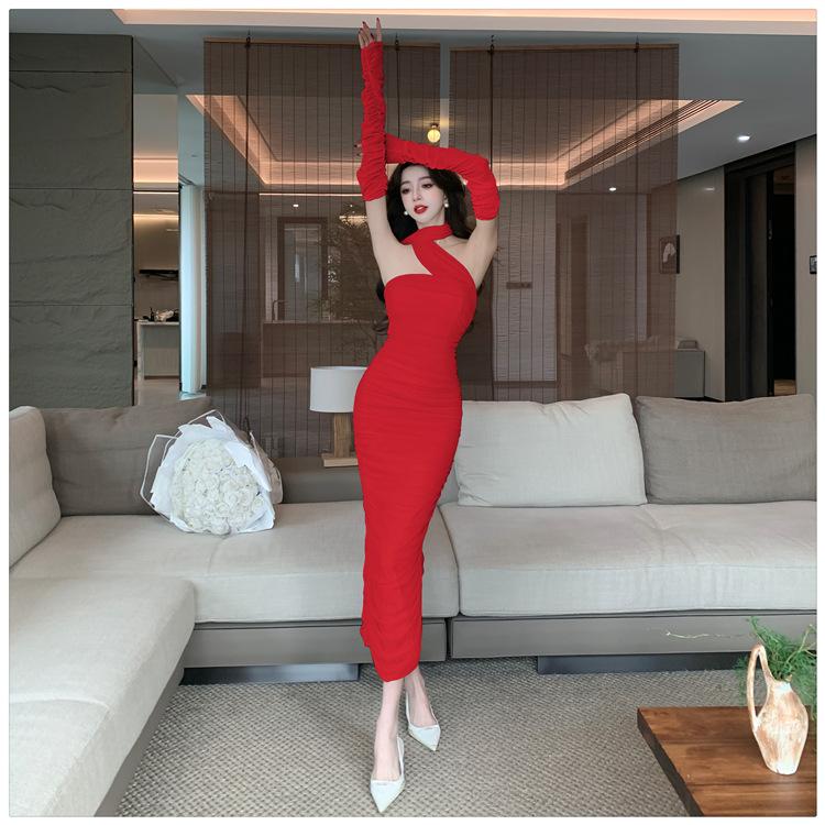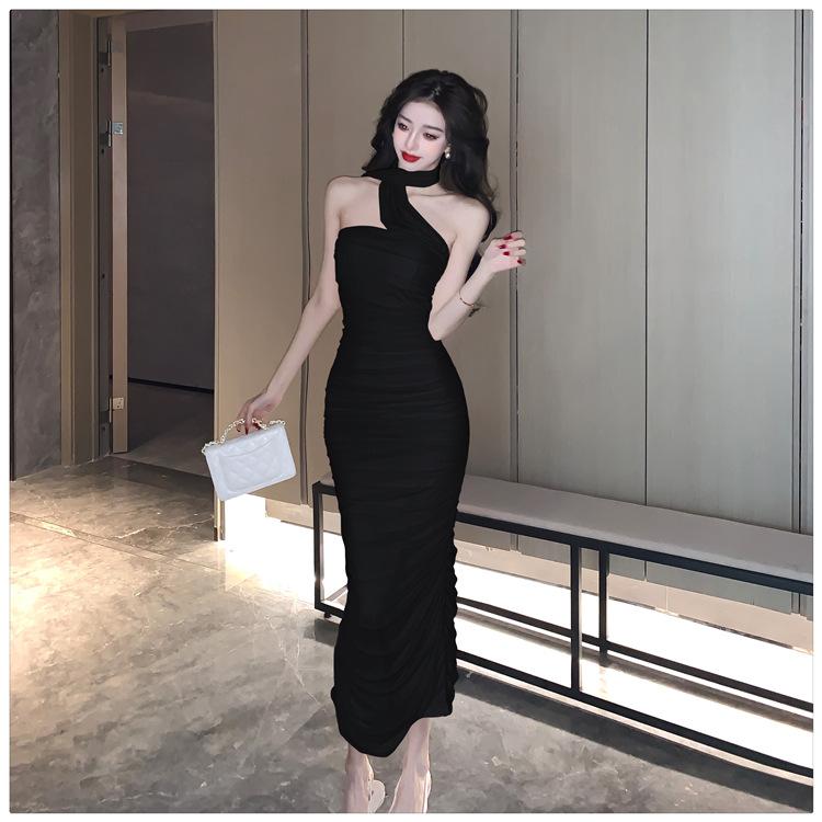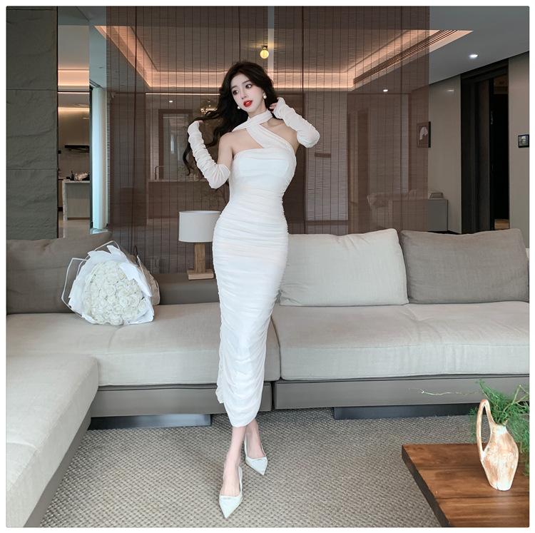 Vestido tubo ajustado de primavera y verano 2025 para mujer, vestido largo ajustado con cuello, falda sexy a la cadera con mangas