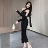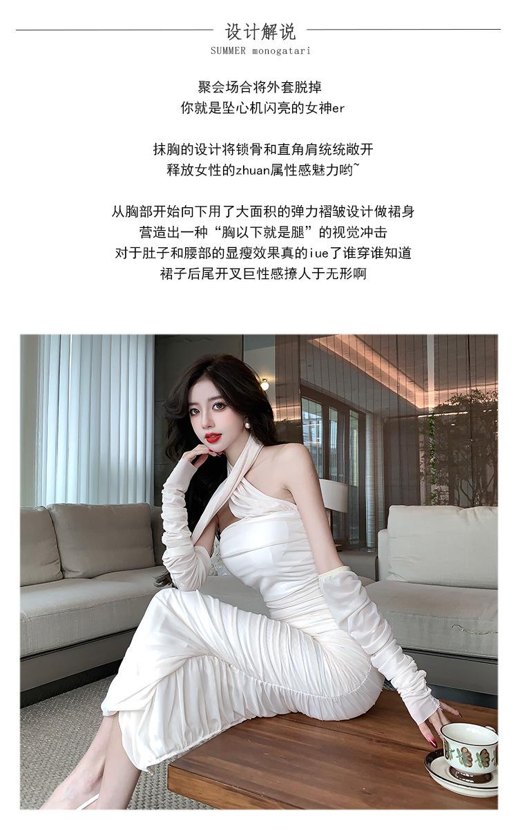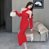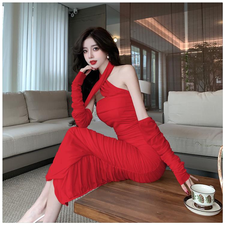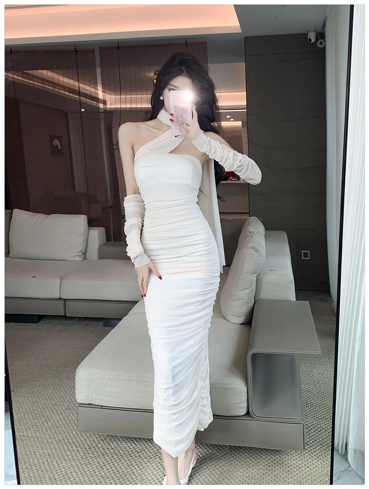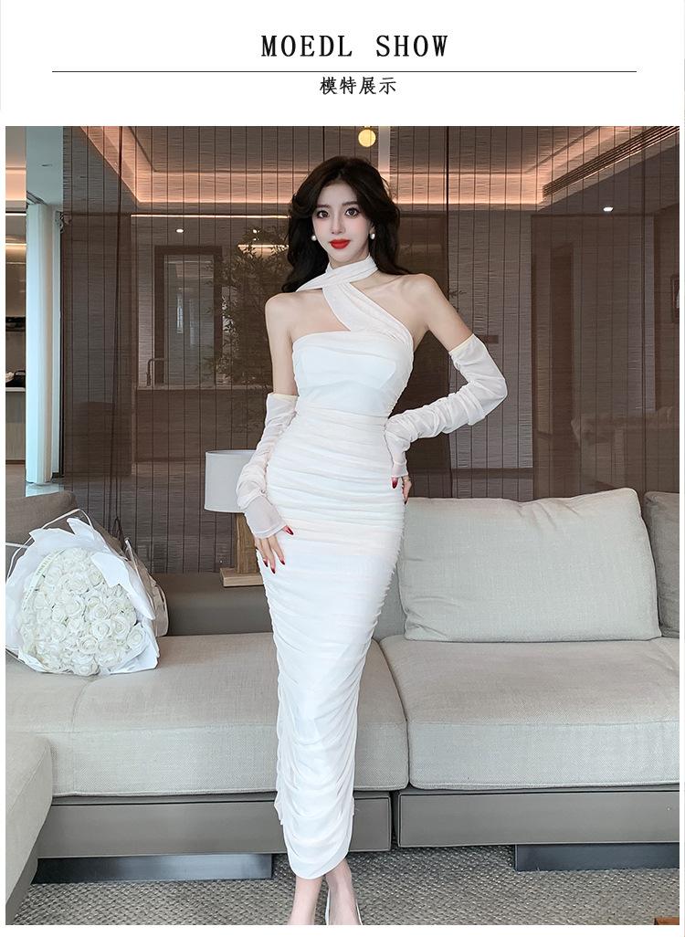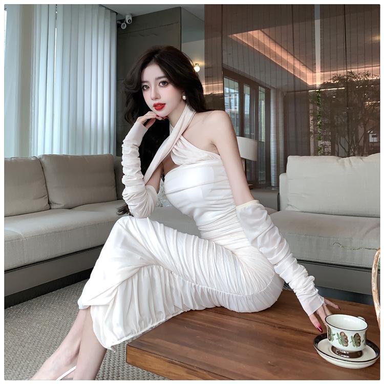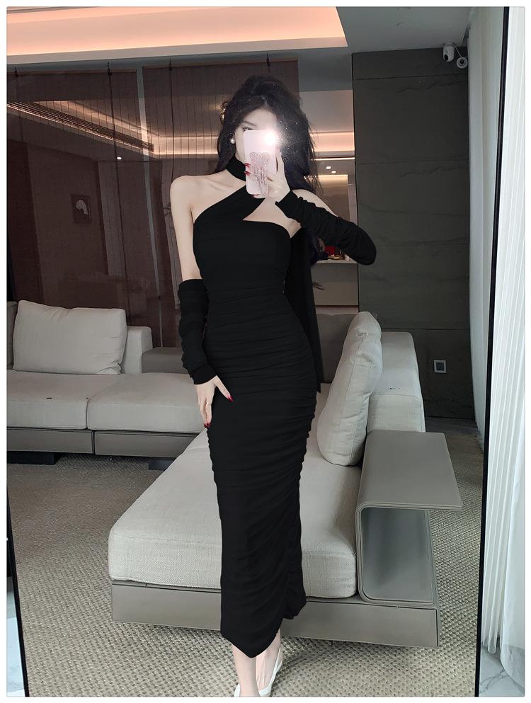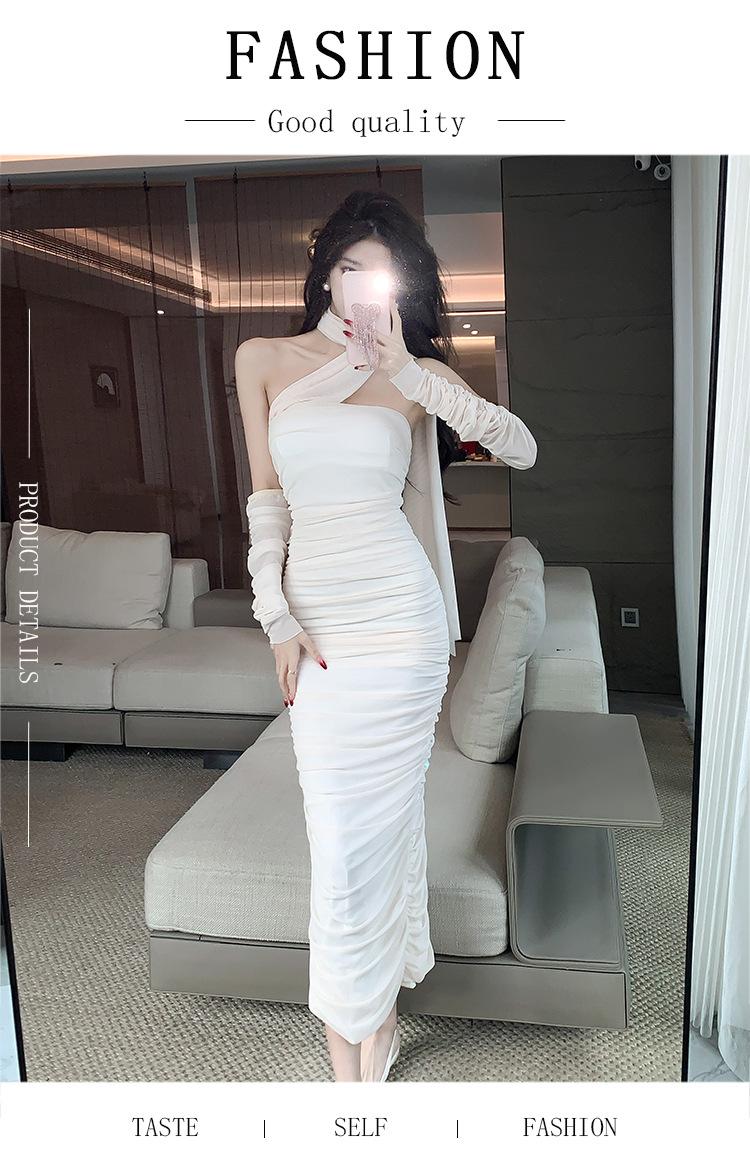 Vestido tubo ajustado de primavera y verano 2025 para mujer, vestido largo ajustado con cuello, falda sexy a la cadera con mangas