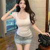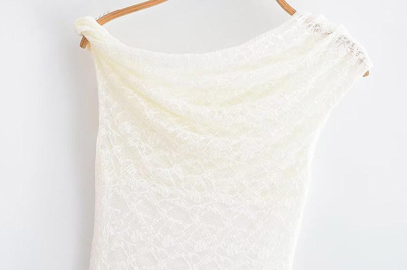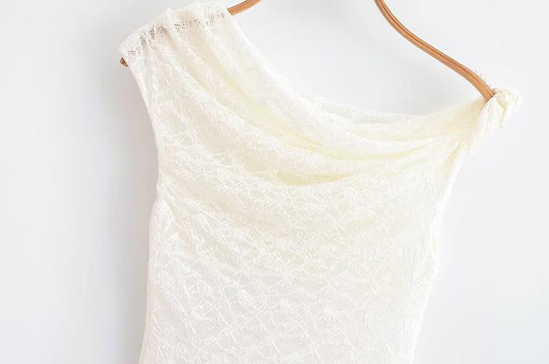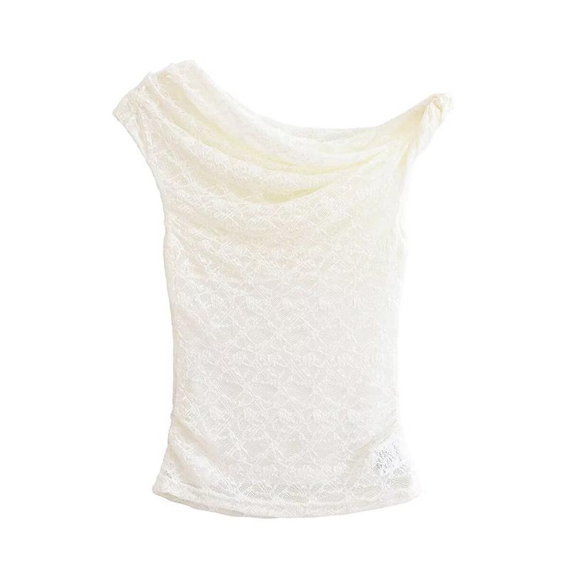 Verano Ajustado Cuello de una Línea Blanco Sin Mangas Delgado Sexy Encaje Camisa Estilo Europeo y Americano Transfronterizo Nuevo Camiseta Top para Mujer