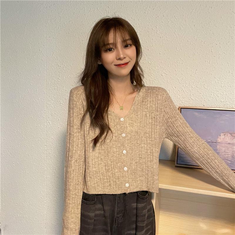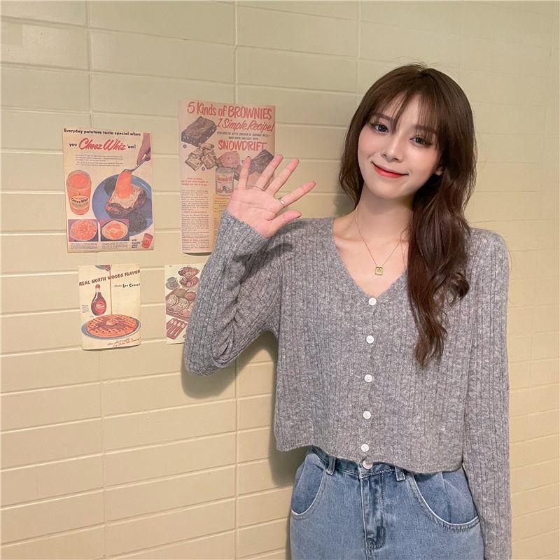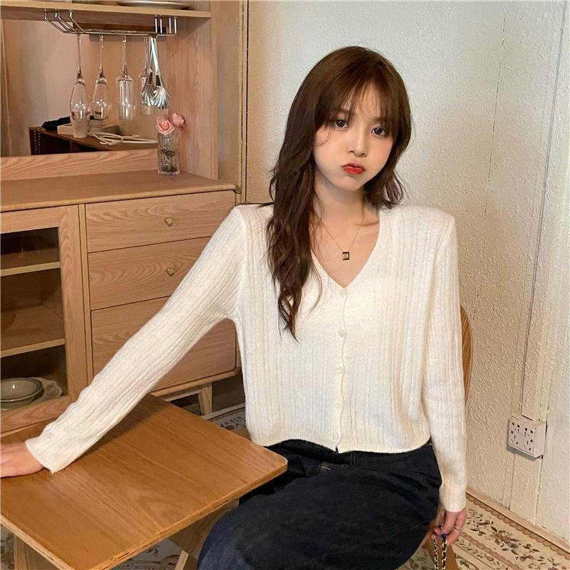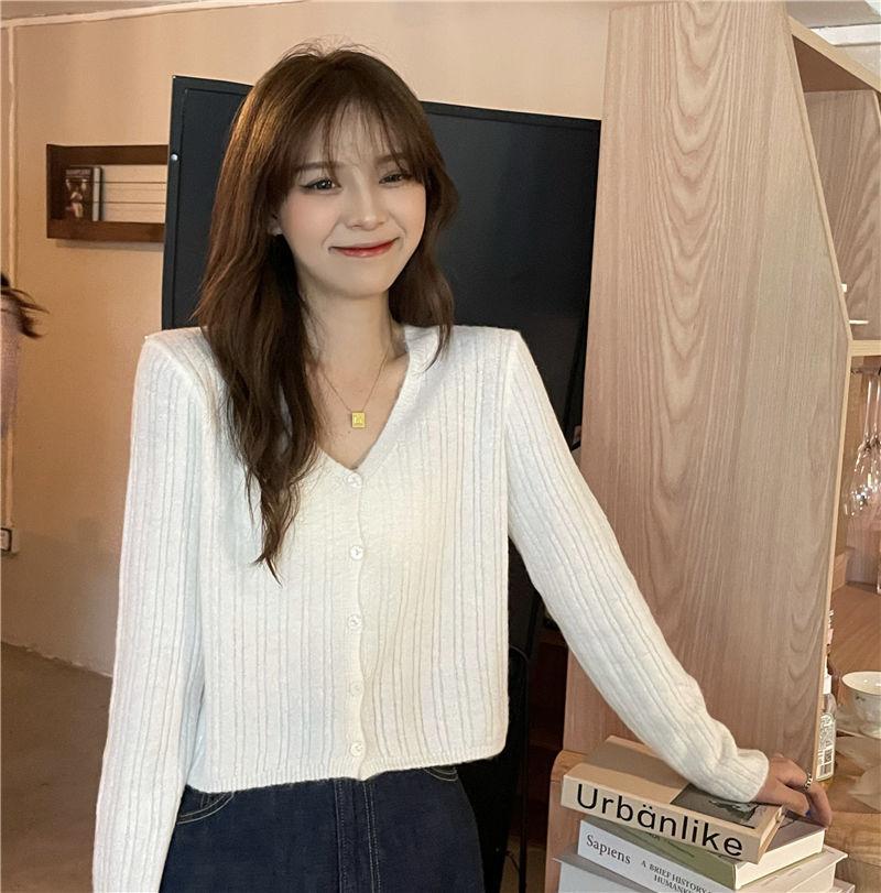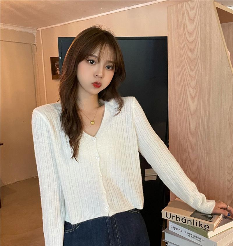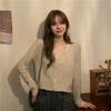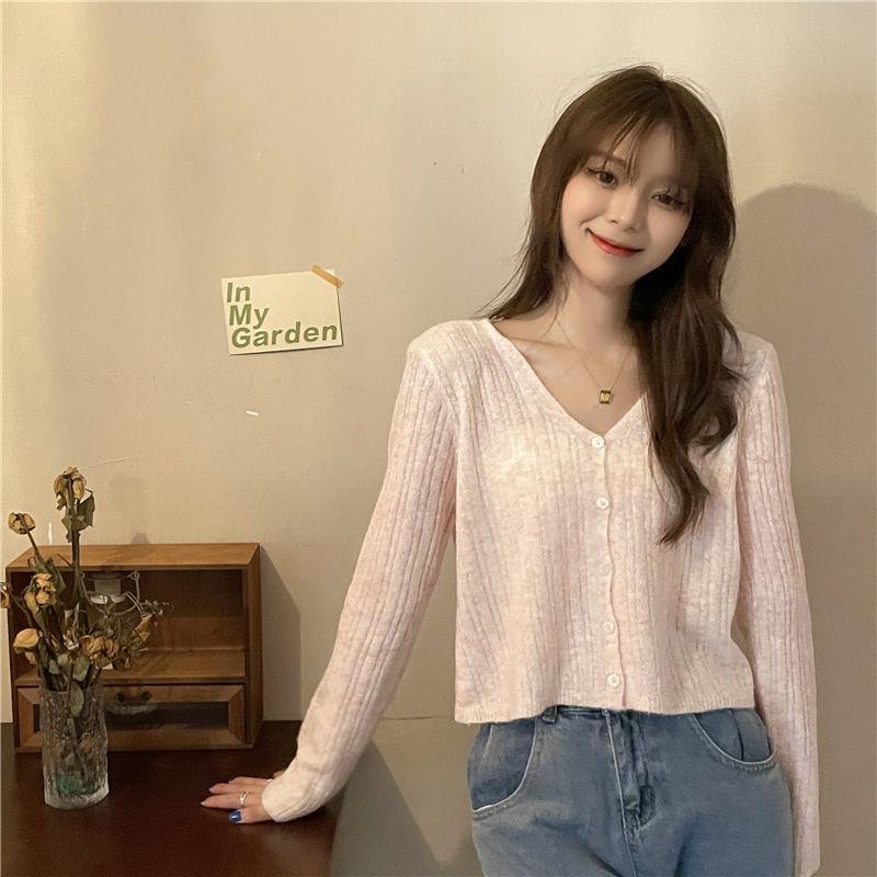 Cárdigan corto de punto con botones y cuello en V estilo coreano para primavera y otoño, manga larga, elegante, dulce, entallado, combina con todo, para mujer
