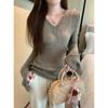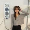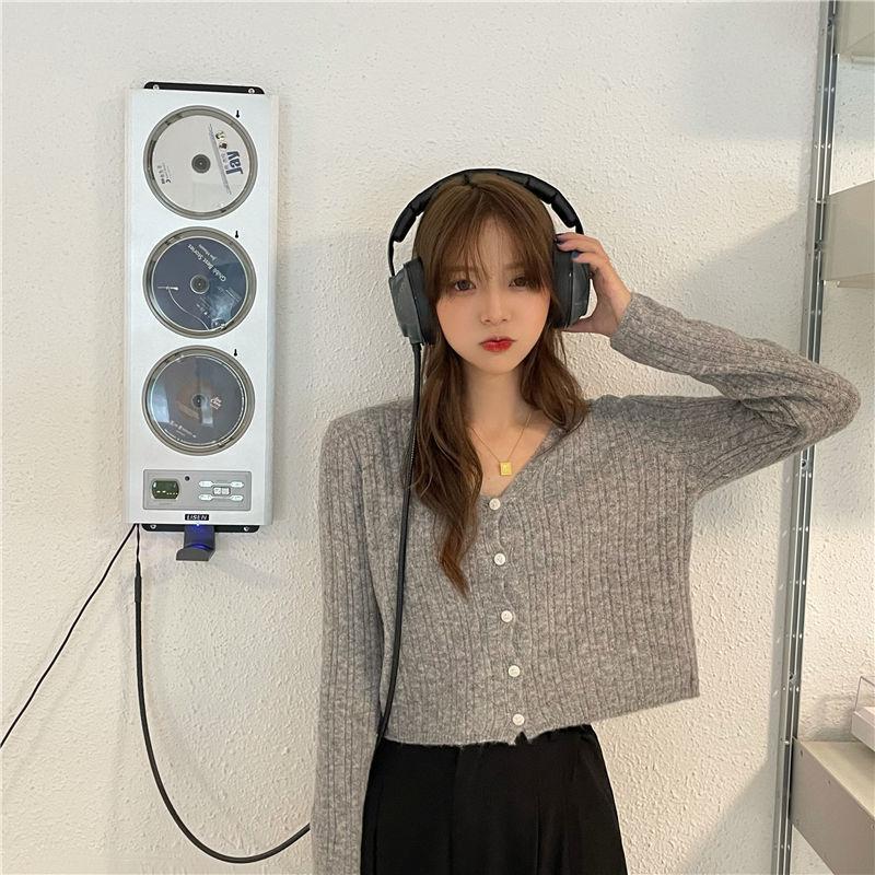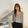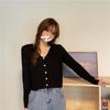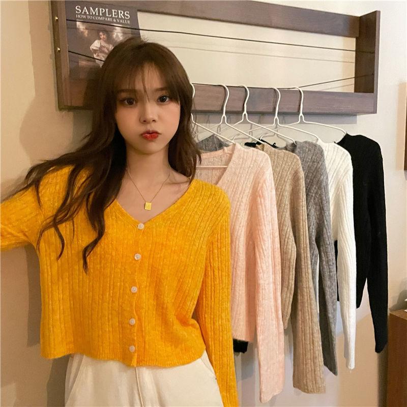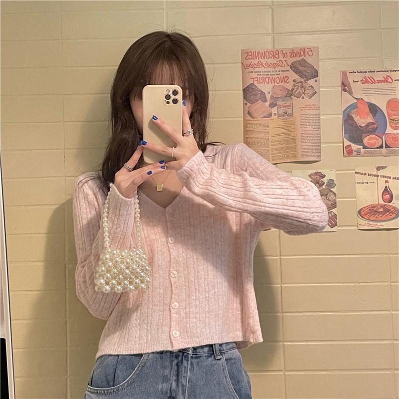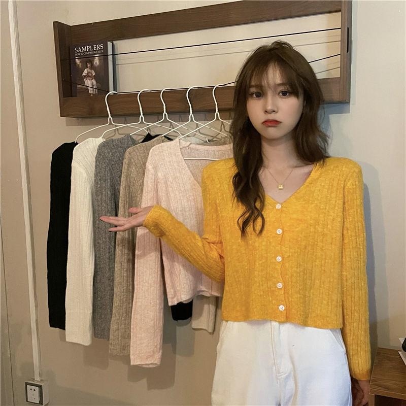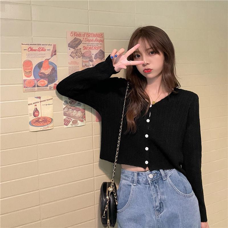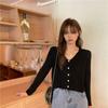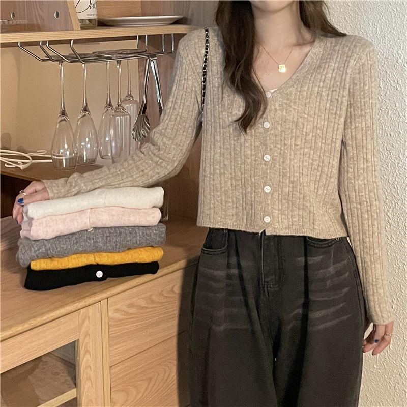 Cárdigan corto de punto con botones y cuello en V estilo coreano para primavera y otoño, manga larga, elegante, dulce, entallado, combina con todo, para mujer