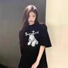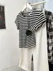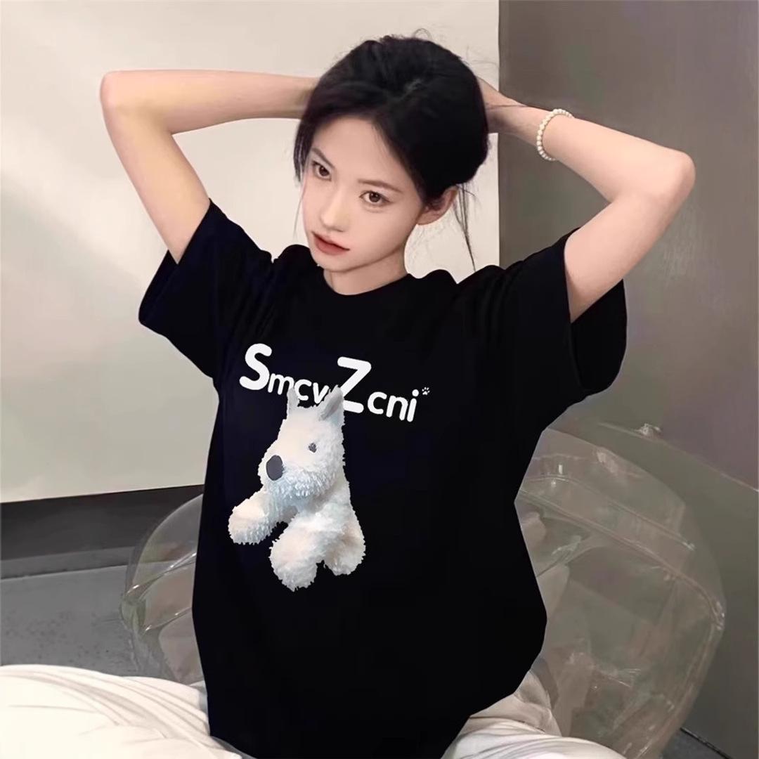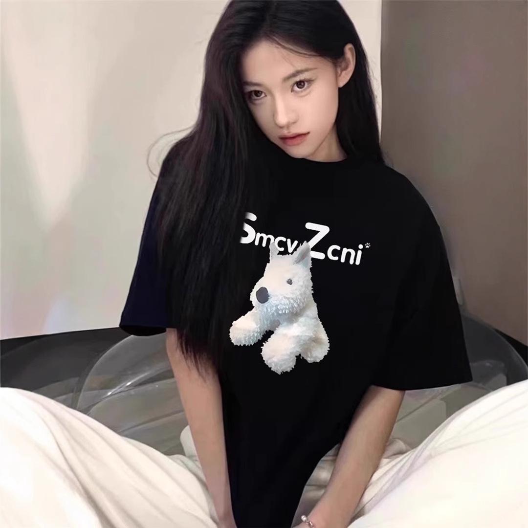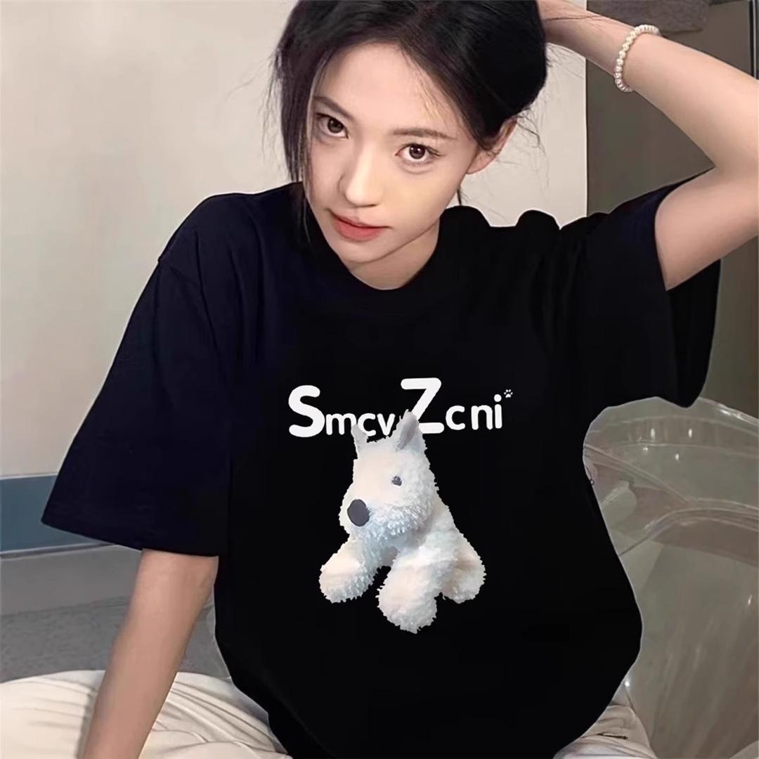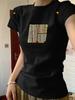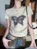 Camiseta de manga corta con hombros descubiertos para mujer, diseño popular de verano 2025, estilo nicho americano, holgada e informal, de manga corta.