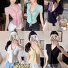 Camiseta de Manga Corta Estilo Elegante y Delicado Estilo Francés con Encaje y Nudo de Lazo con Cuello en V Tejido para Mujer Verano Nueva Llegada