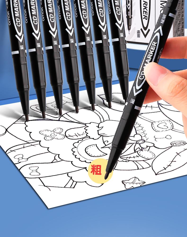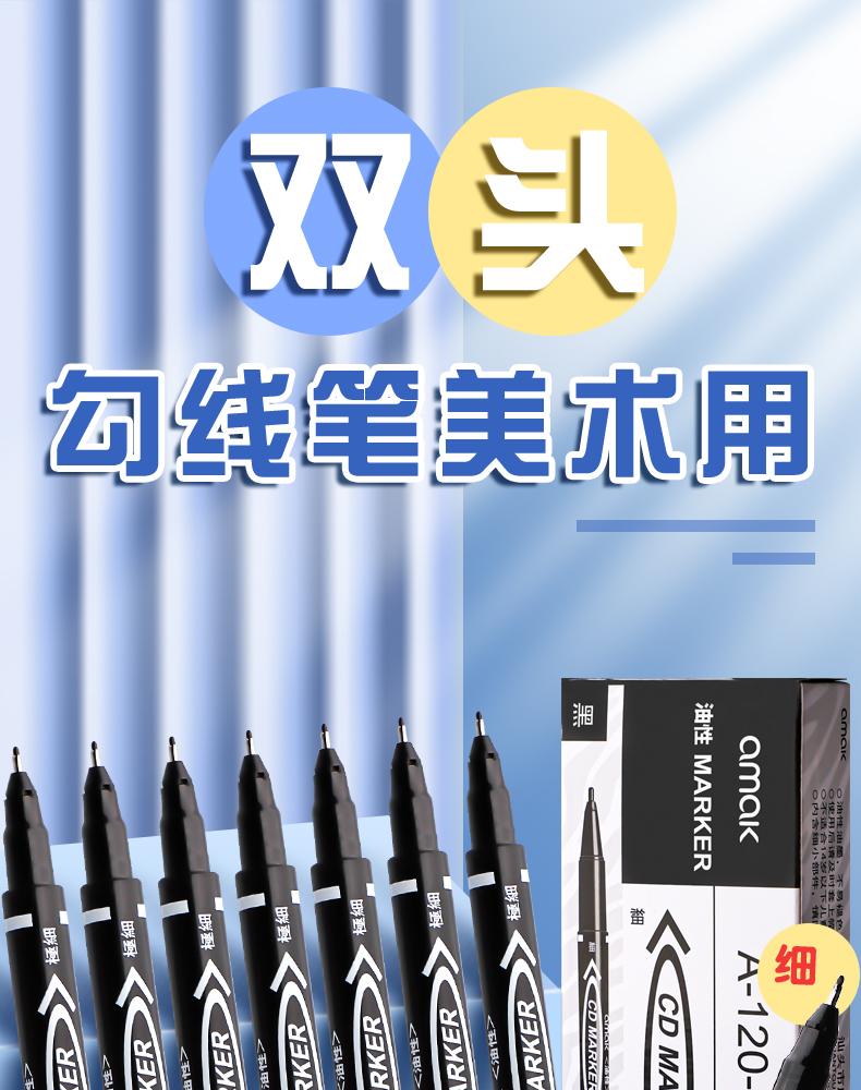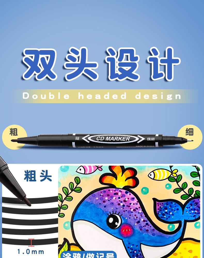 Marcador pequeño de doble punta Gouxianbi Arte Estudiantes de primaria Negro Oleoso Punta fina Marca Dibujo infantil Jardín de niños Dibujo