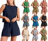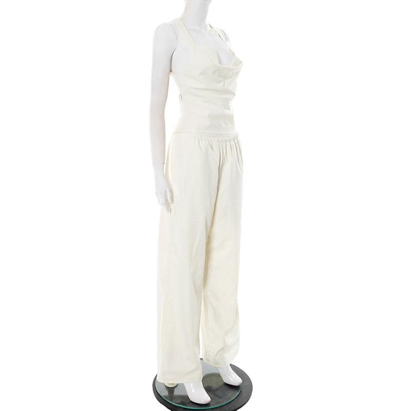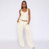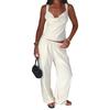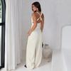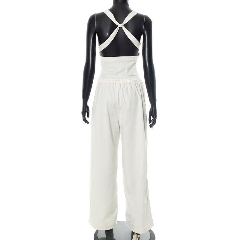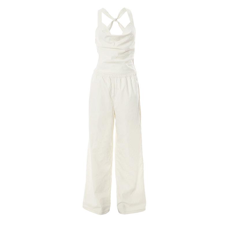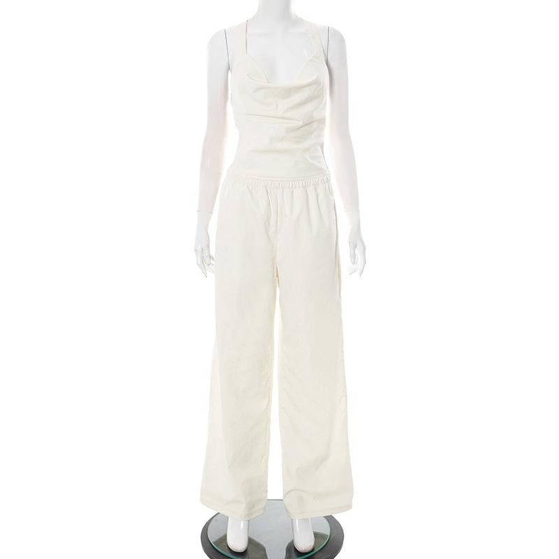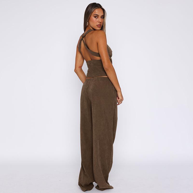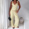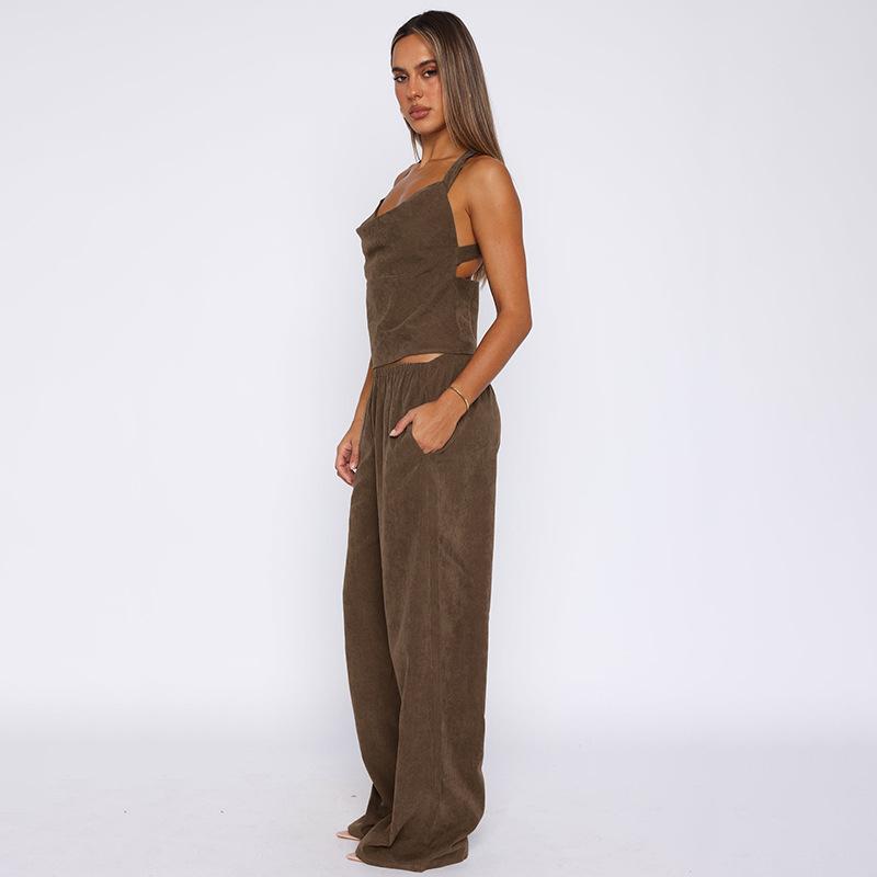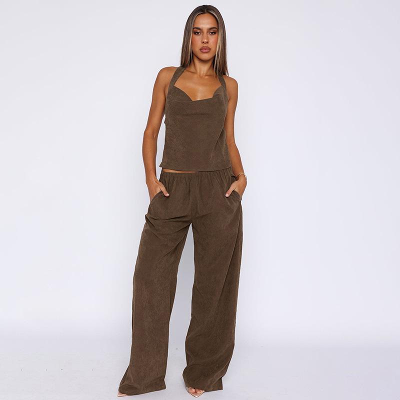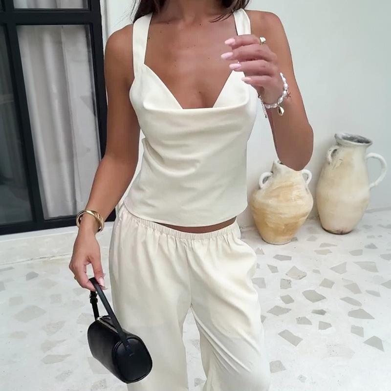 Amazon 2025 Nuevo Traje de Verano para Mujer Europeo y Americano Nuevo Color Sólido Sin Mangas Tirantes Cruzados Pantalón Recto para Mujer