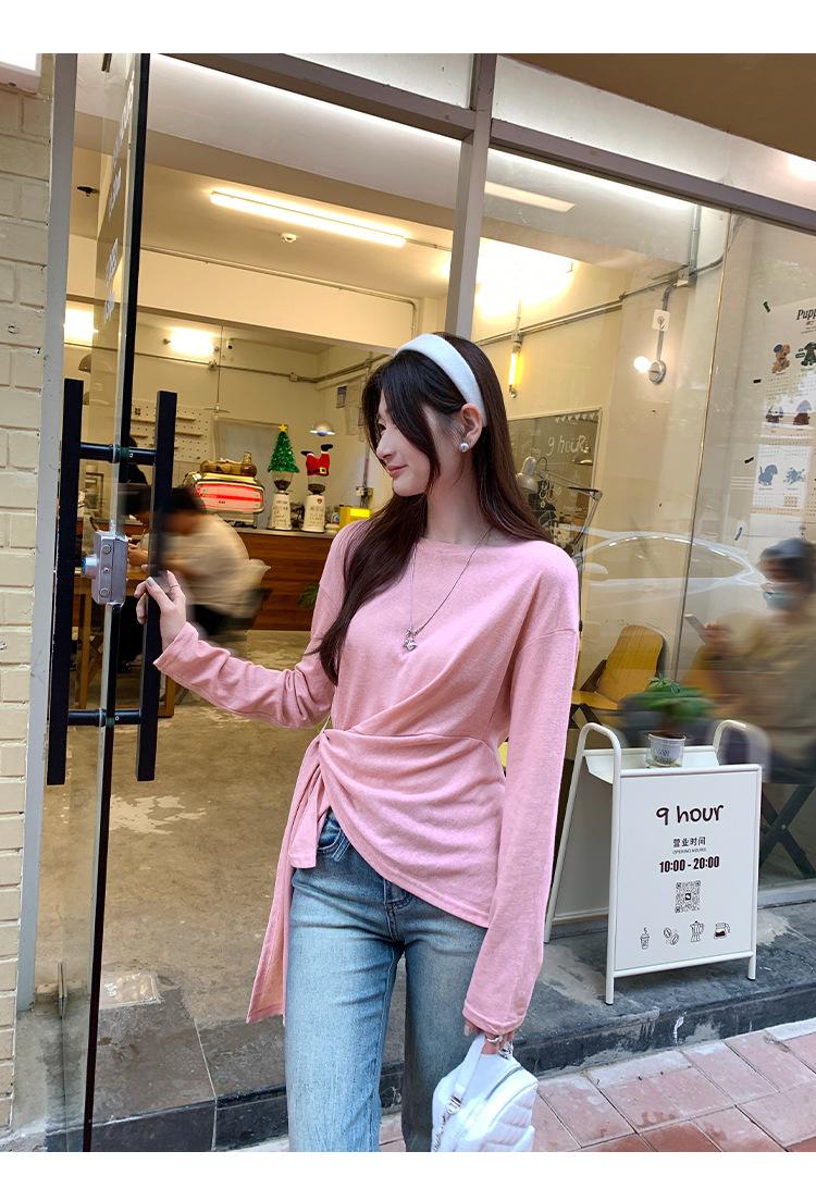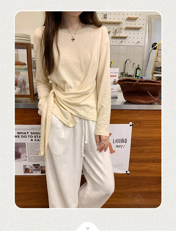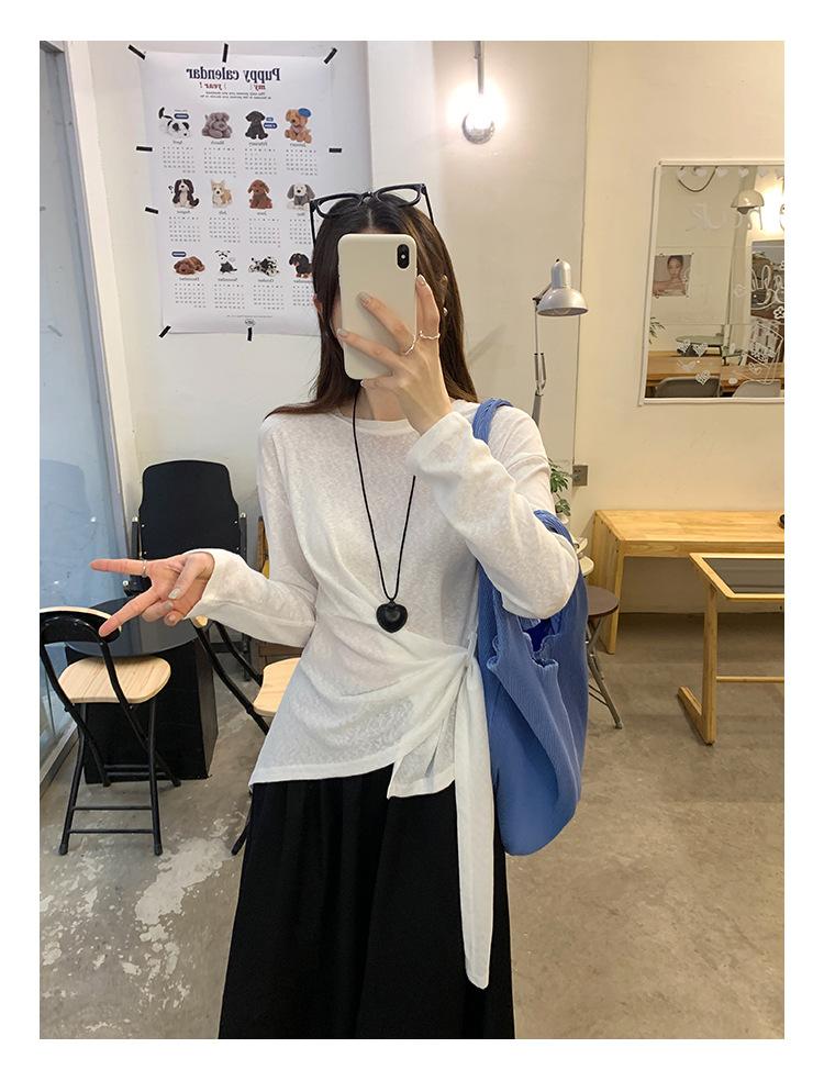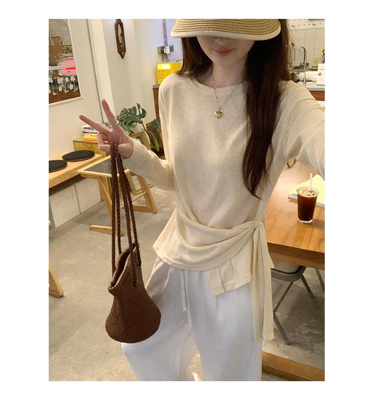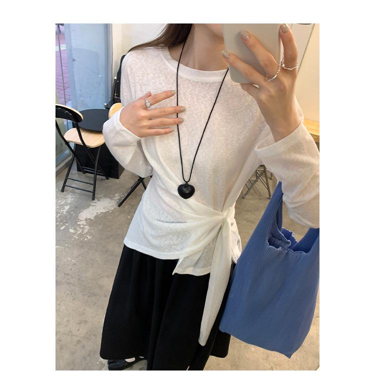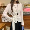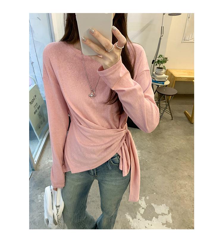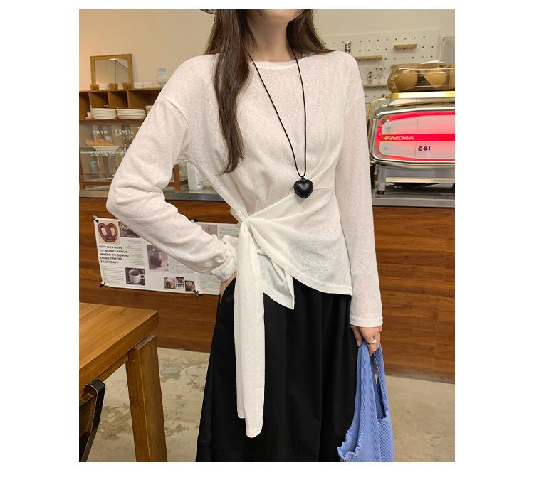 Chic Coreano Camiseta Slim de Manga Larga con Cuello Redondo y Lazo en la Cintura para Mujer Cuidado Seleccionado Nuevo 2025 Otoño y Verano Buenas Blusas