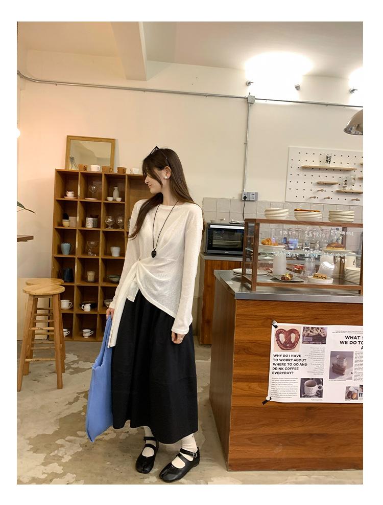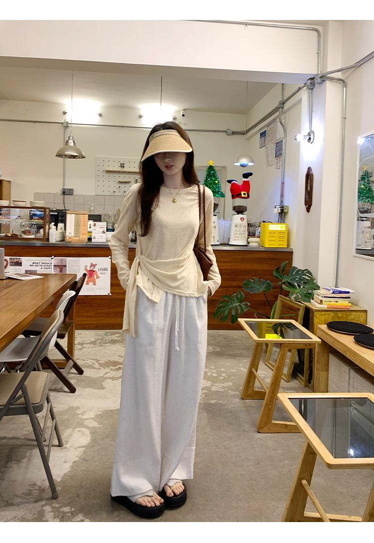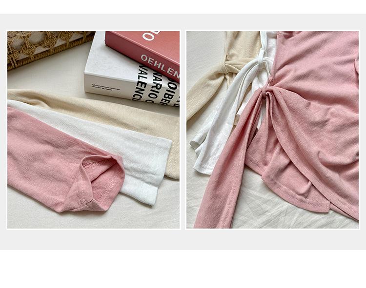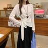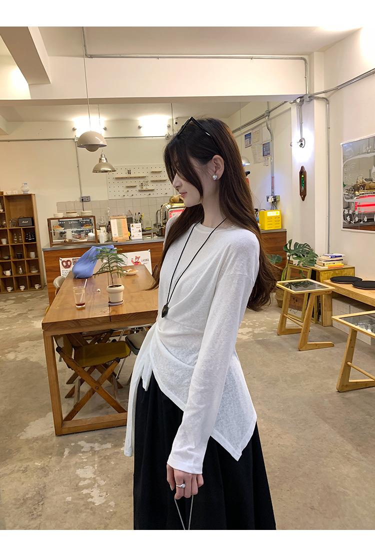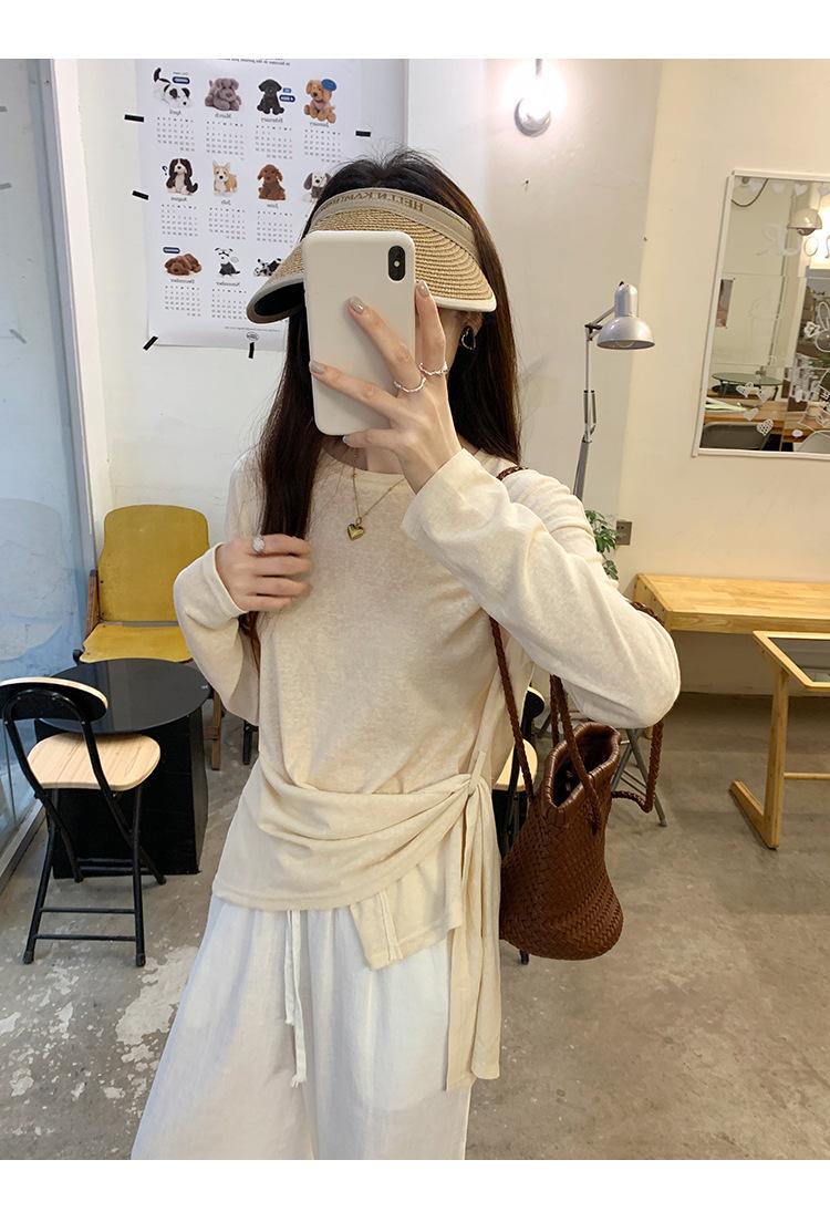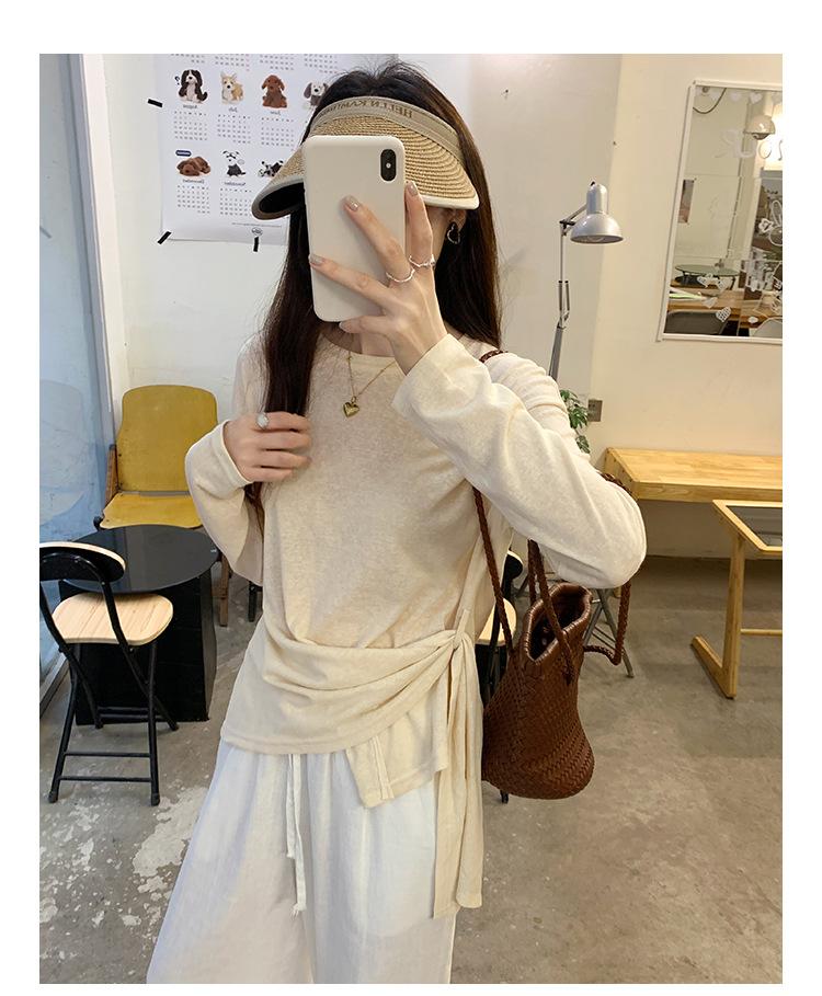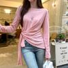 Chic Coreano Camiseta Slim de Manga Larga con Cuello Redondo y Lazo en la Cintura para Mujer Cuidado Seleccionado Nuevo 2025 Otoño y Verano Buenas Blusas
