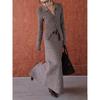 2025 Nuevo Cárdigan Top de Otoño e Invierno Falda Larga Conjunto de Dos Piezas Moda Socialité Francesa Traje de Punto para Mujer