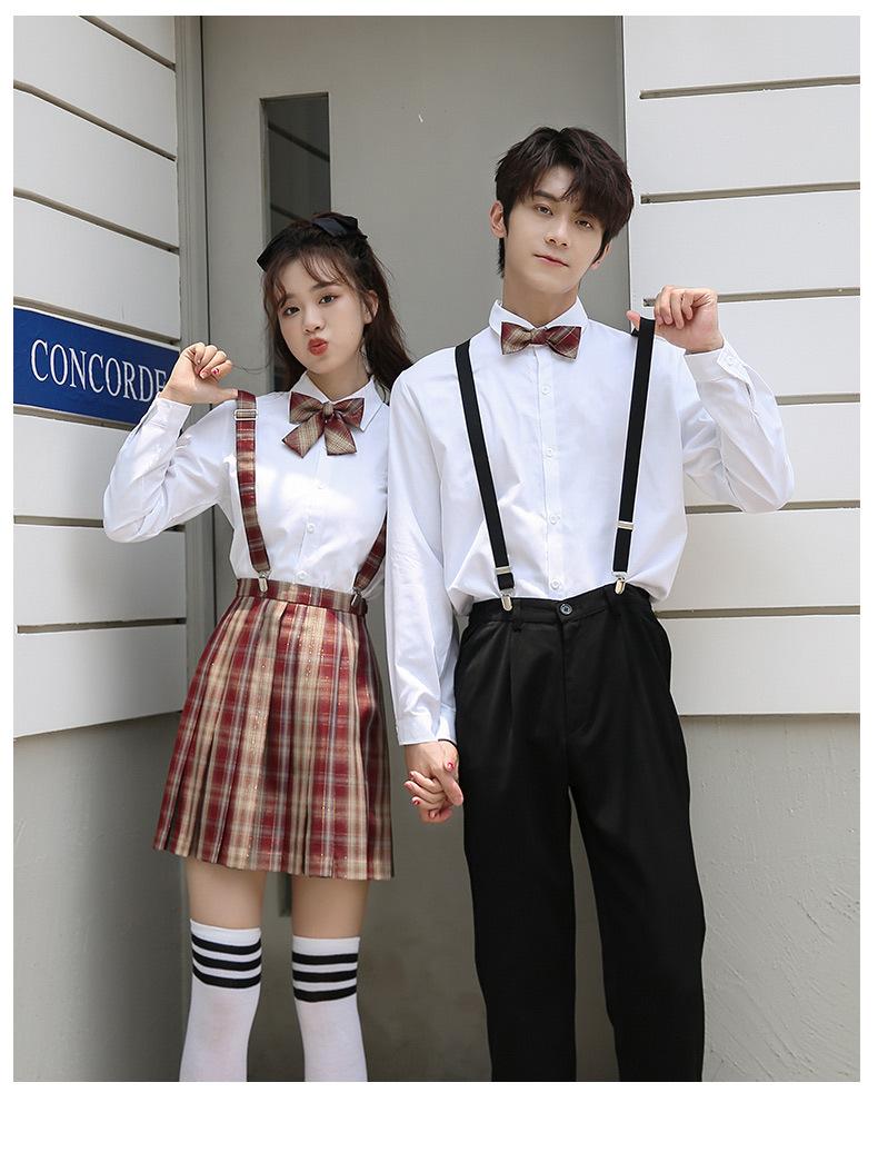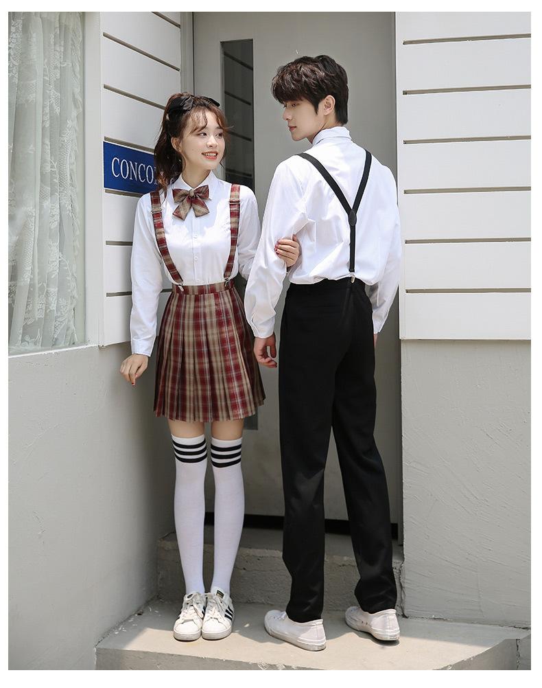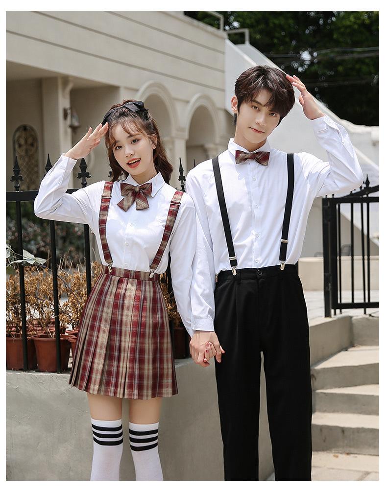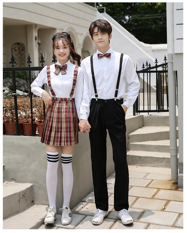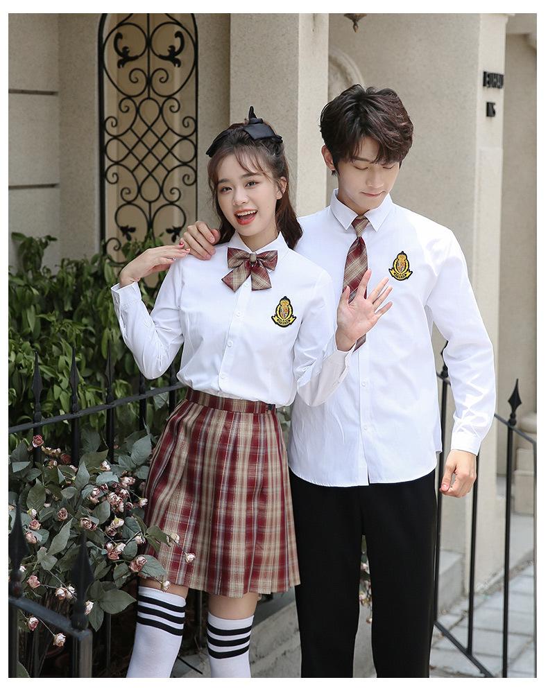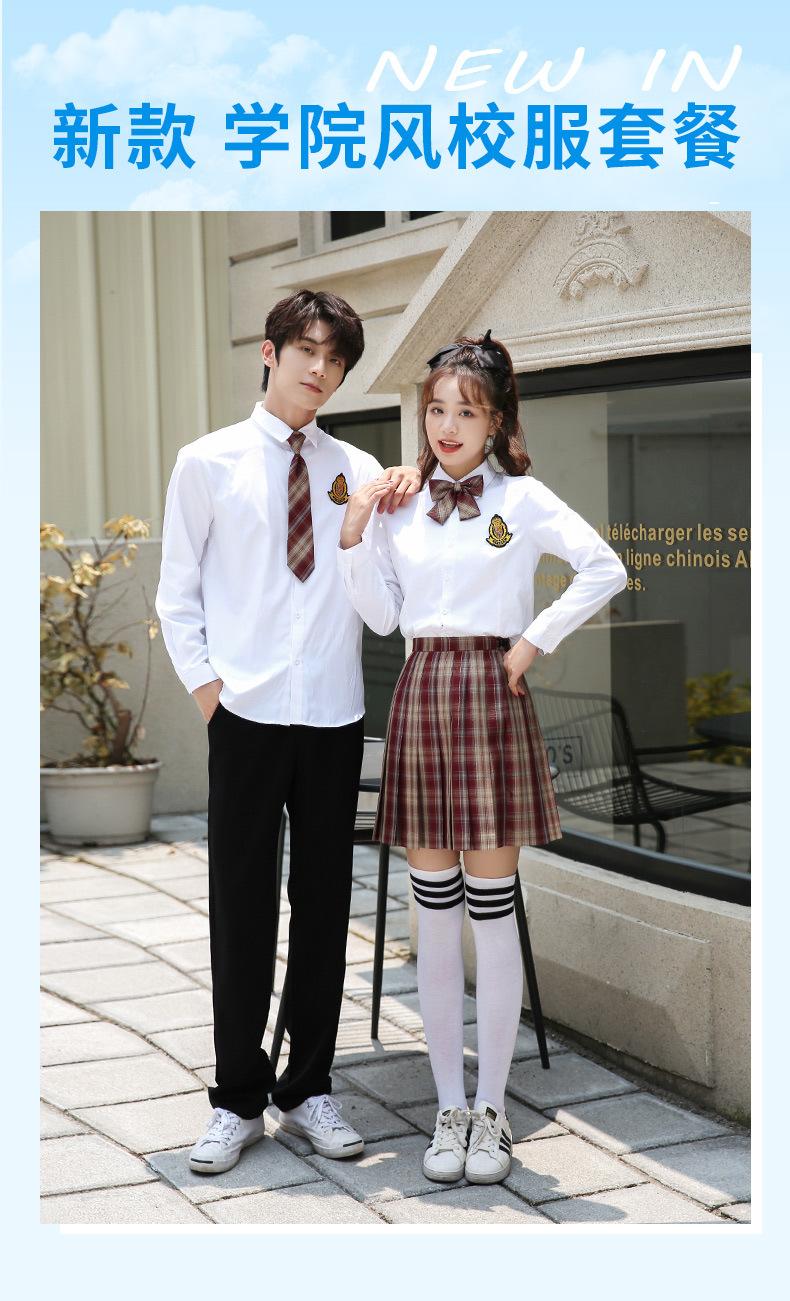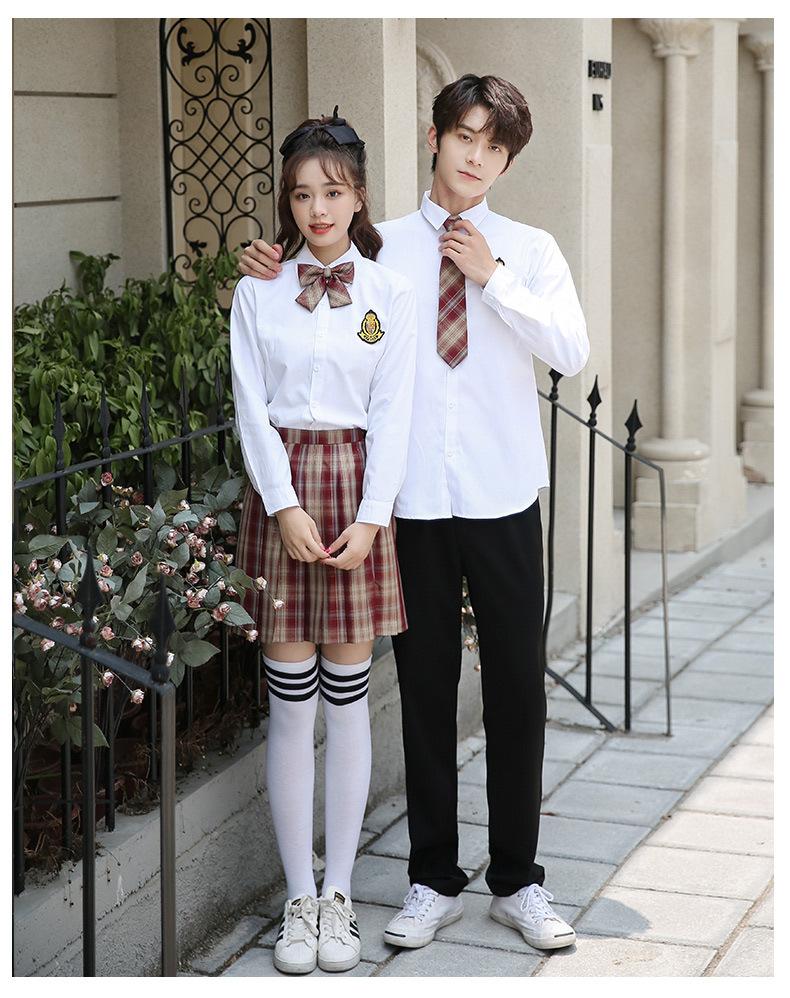 Nuevo Traje de Uniforme de Secundaria de Primavera Verano y Otoño Estudiantes de Secundaria Camisa de Manga Larga Vestido Vestido de Clase de Graduación