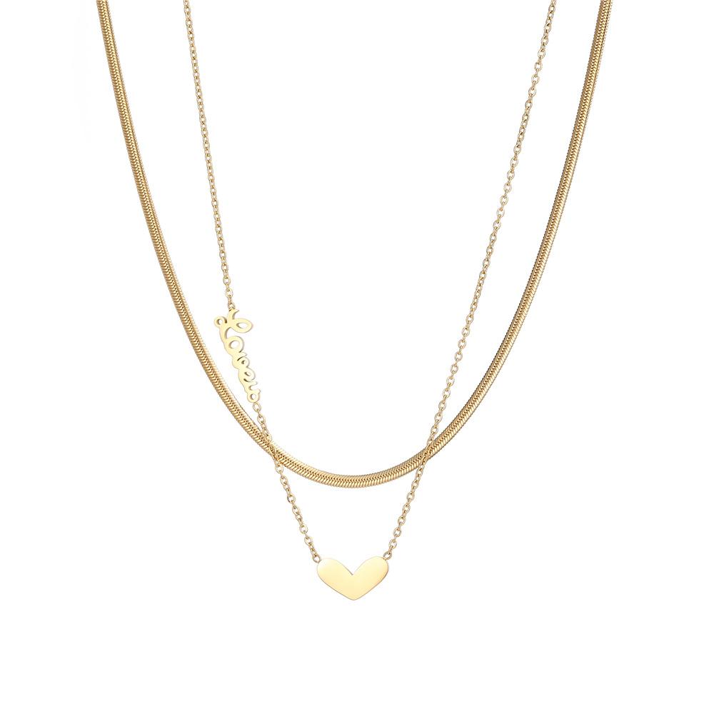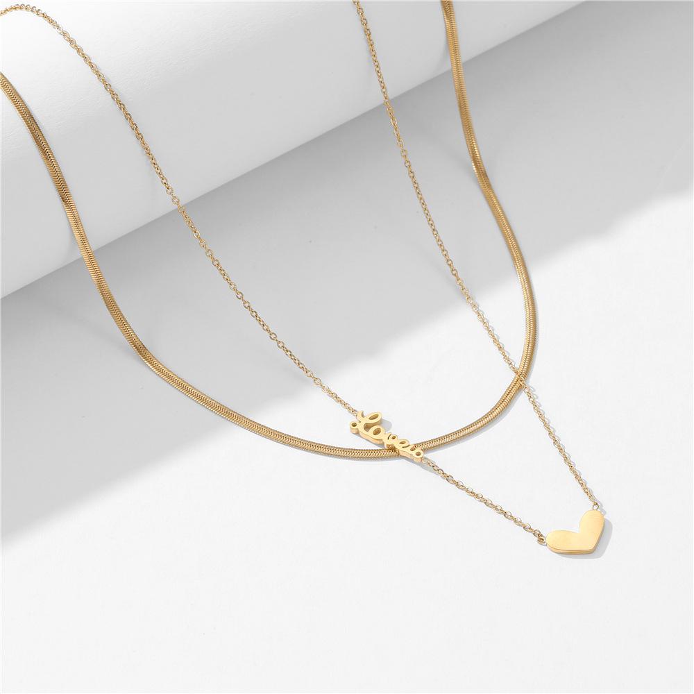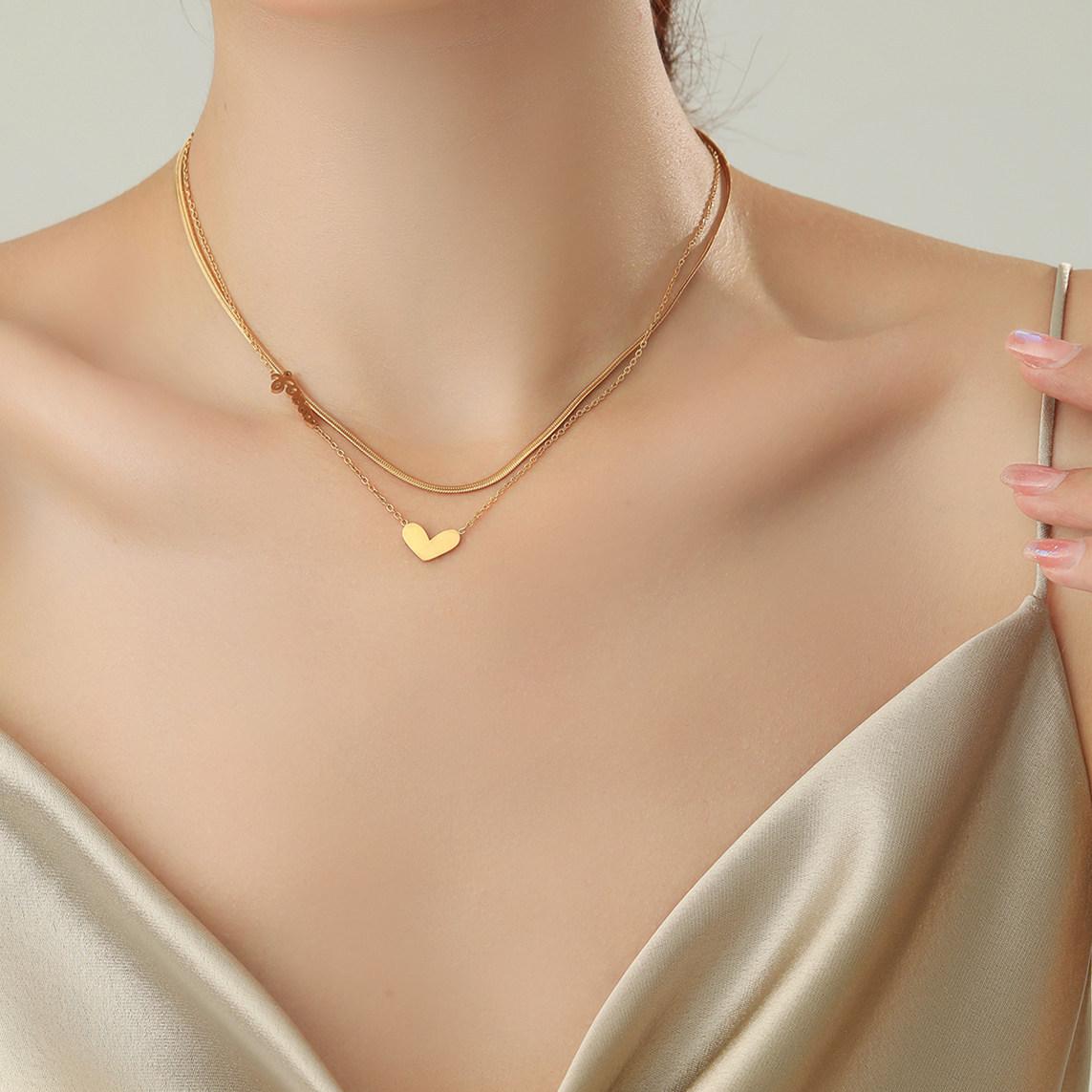 Collar europeo y americano de acero de titanio nuevo, cadena para clavícula, diseño de nicho femenino, colgante de amor, chapado en oro, collar de joyería que no se desvanece