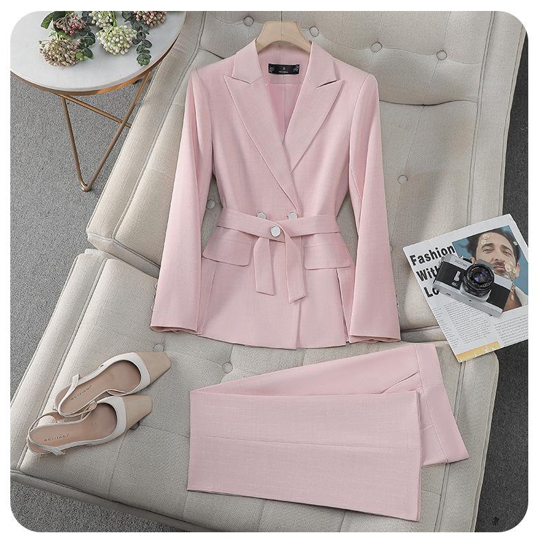 2025 Nuevo Rosa Chaqueta de Traje Pequeño con Cuello para Mujer Manga Larga Traje Profesional Ropa de Trabajo para Mujer 8960 Estilo Fragante Pequeño Celebridad