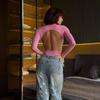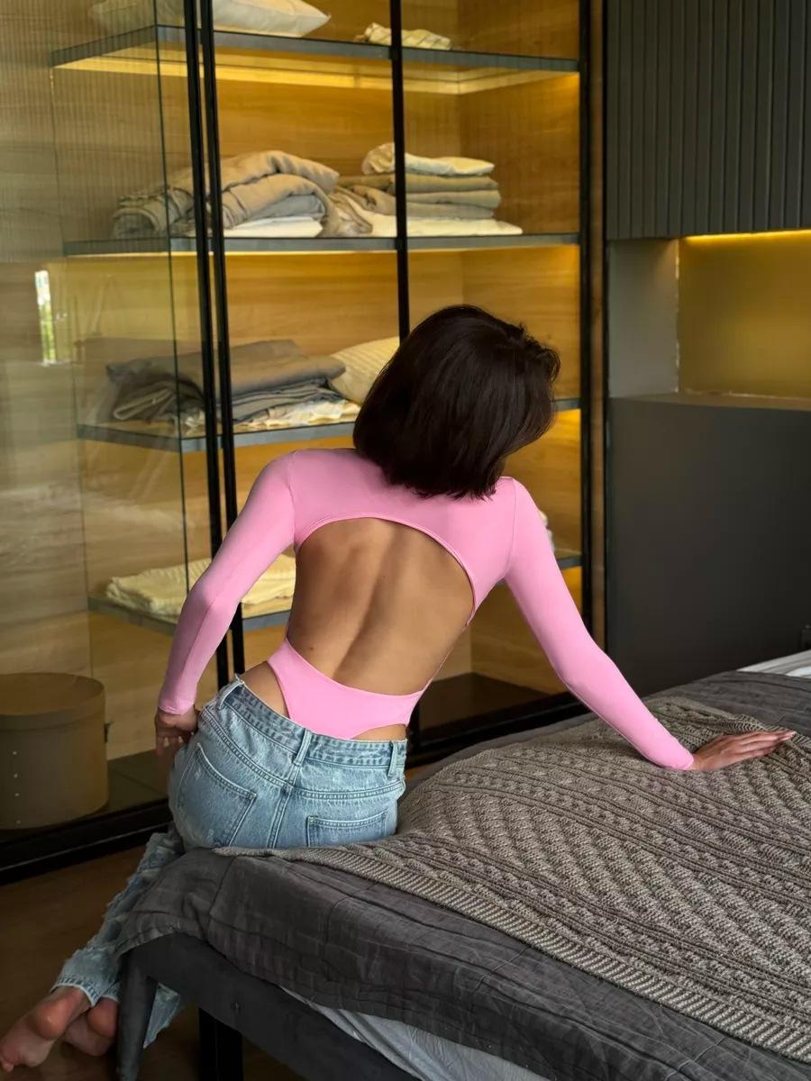 En toda Europa y los Estados Unidos primavera y otoño manga larga cuello redondo chica caliente intrigante espalda descubierta color sólido moda temperamento mono al por mayor sexy