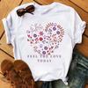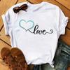 2025 Primavera y Verano Ropa de Mujer Transfronteriza Aliexpress Nueva Camiseta Blanca con Estampado de Corazón Tops de Manga Corta para Mujer y Camisetas Básicas