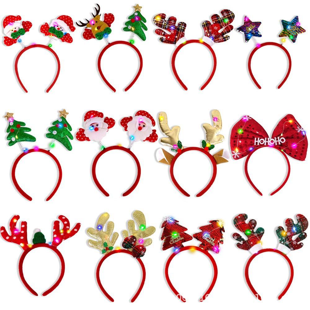 Old man + tree headband (with lights), Santa claus + bow headband (with lights), Christmas elk headband (with ...