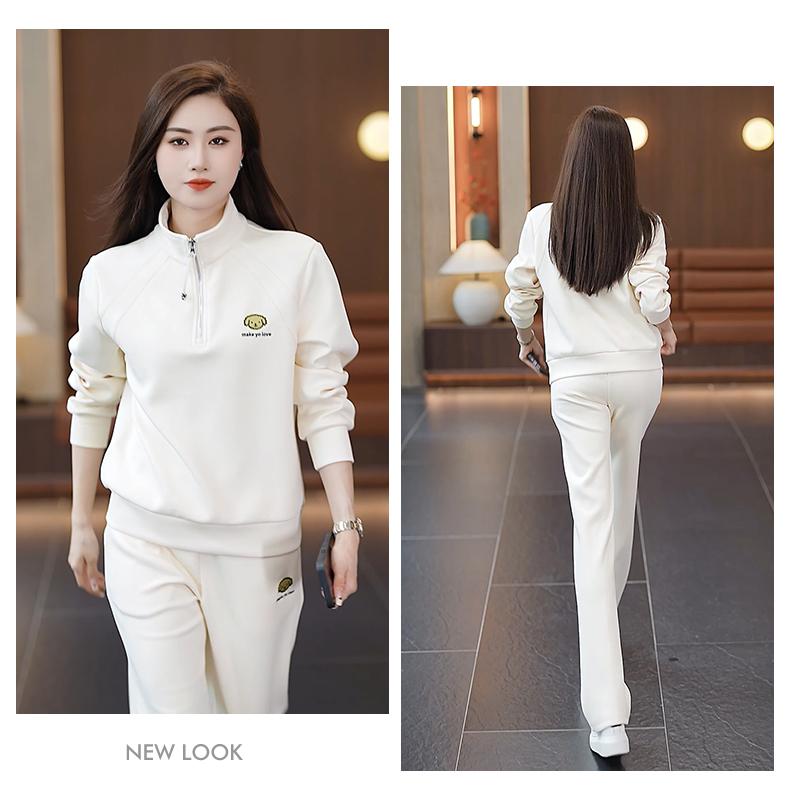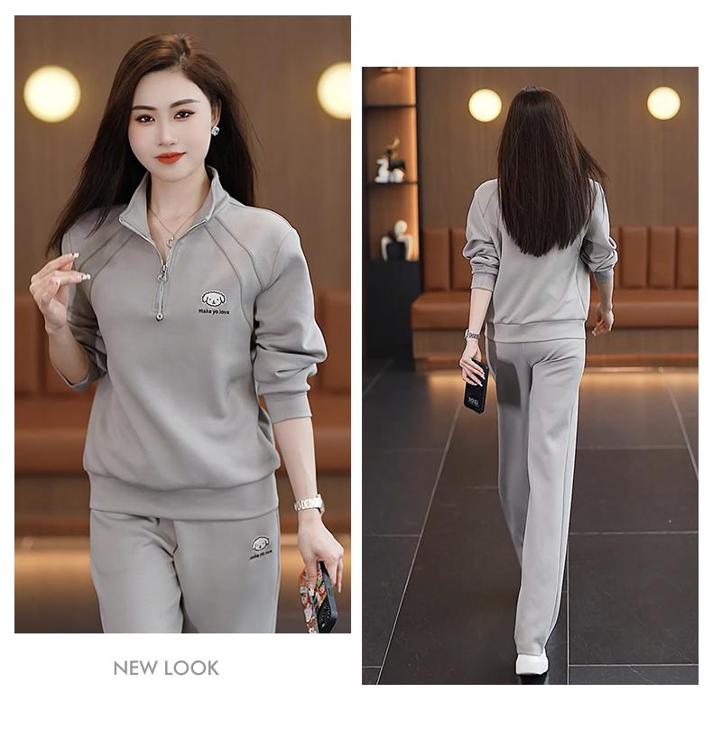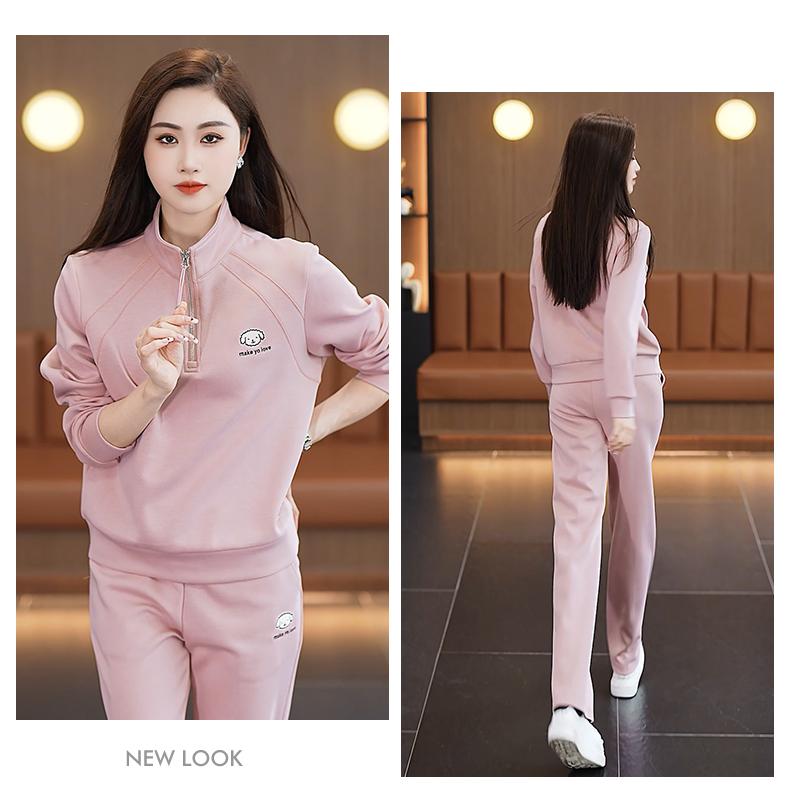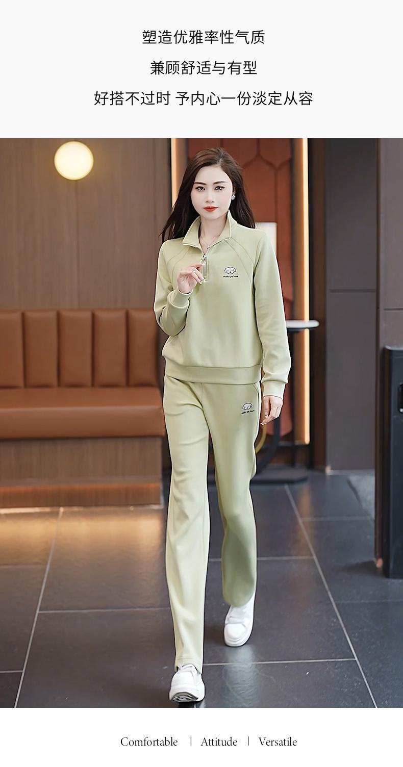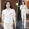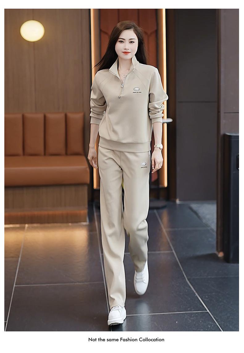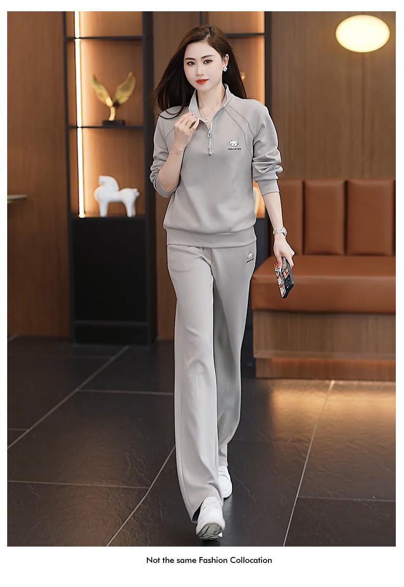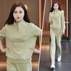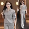 Traje deportivo de ocio para mujer primavera y otoño 2025 nueva moda cuello occidental suéter de manga larga conjunto de dos piezas para correr