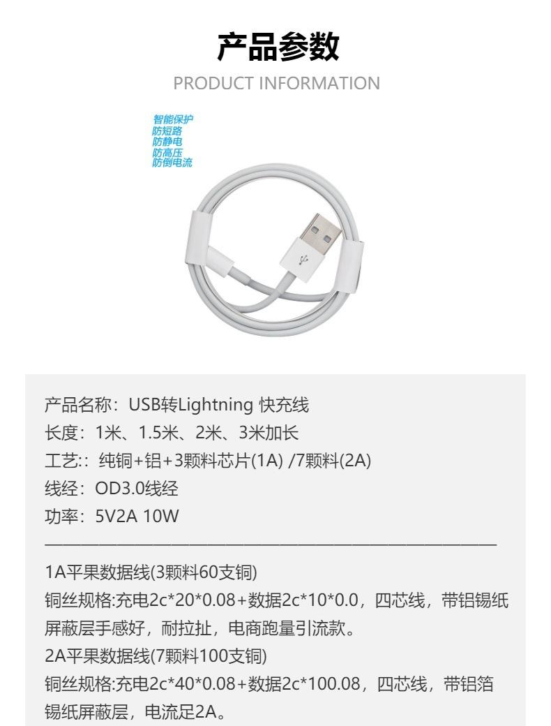 Adecuado para cable de datos Apple carga rápida iphone12/11/X/8 teléfono móvil carga rápida usb cable de carga Apple 3 metros