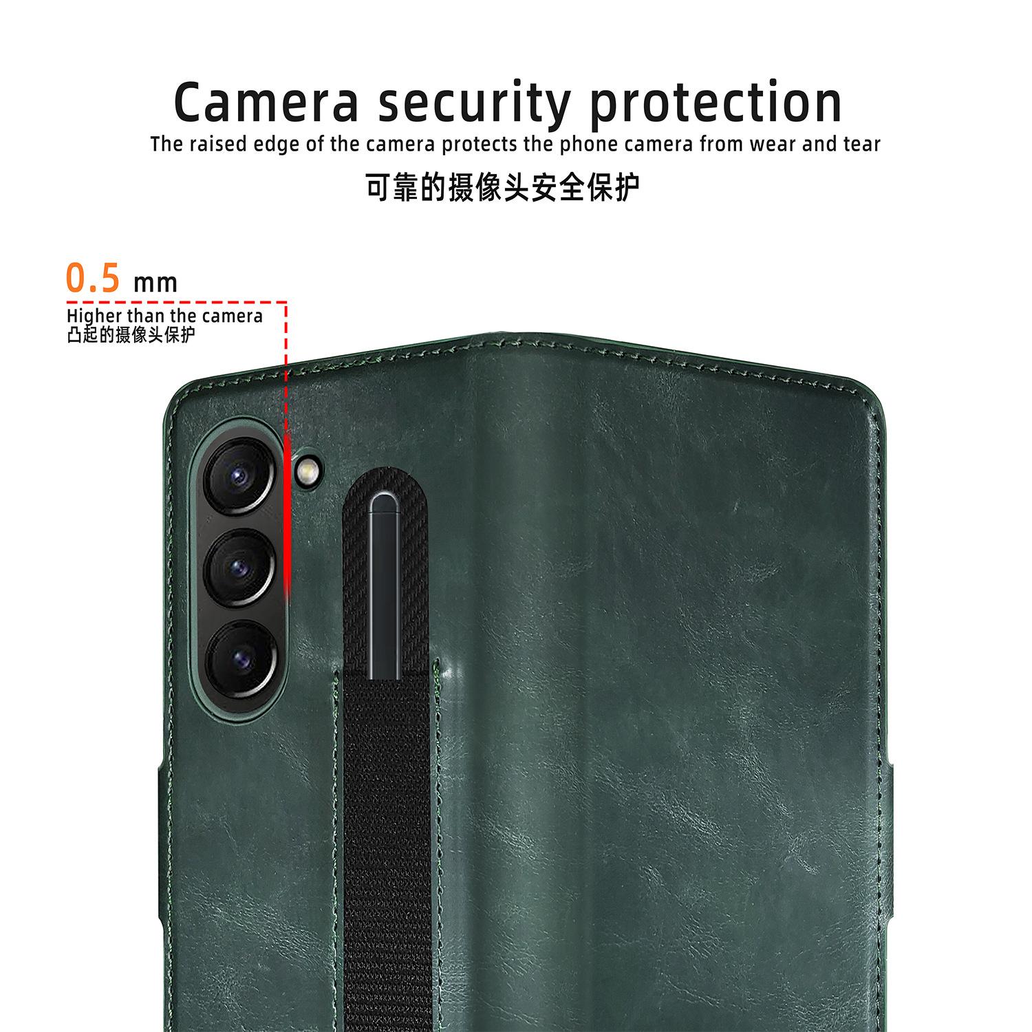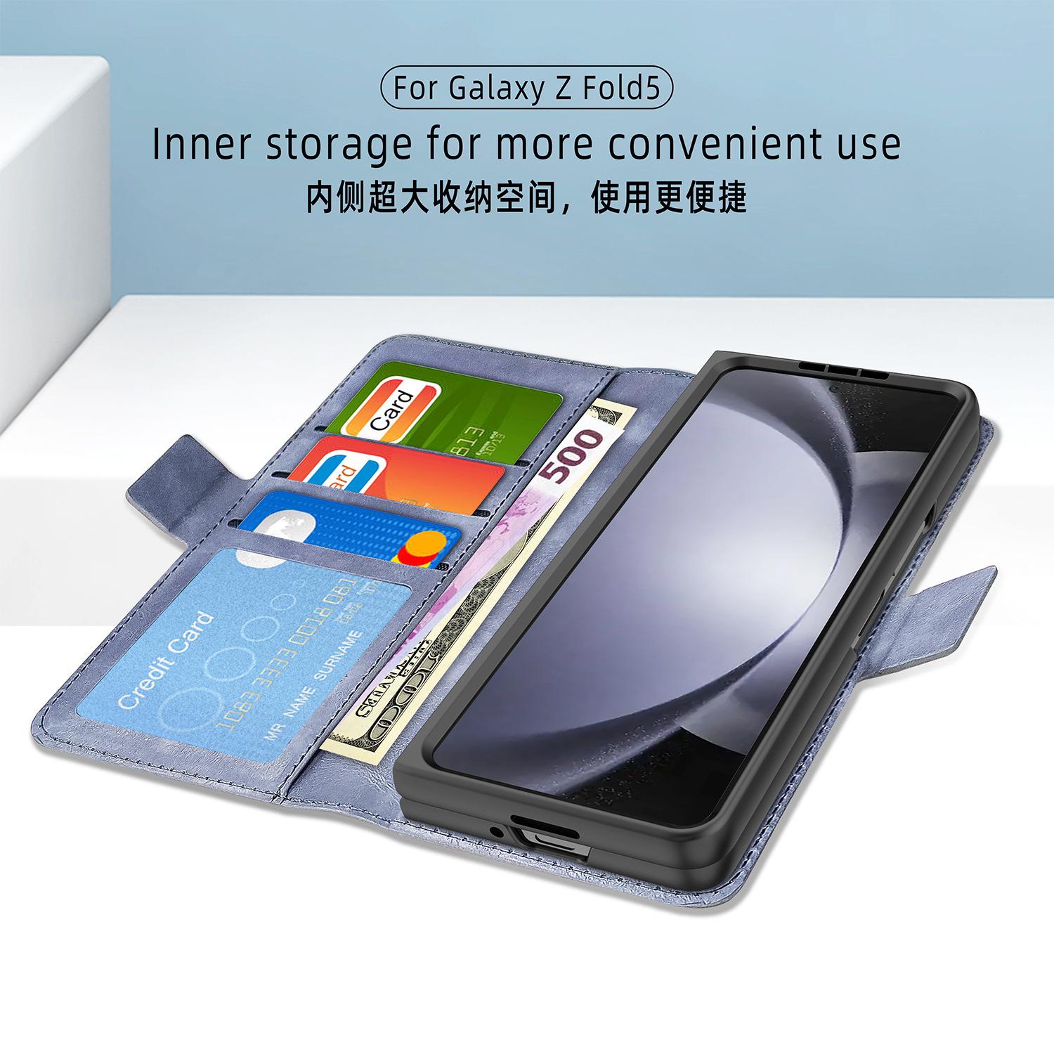 Para Samsung Fold6 Funda para Teléfono Estuche de Cuero para Negocios Película Todo en Uno Ranura para Lápiz Estuche para Tarjetas Cubierta Protectora a Prueba de Caídas