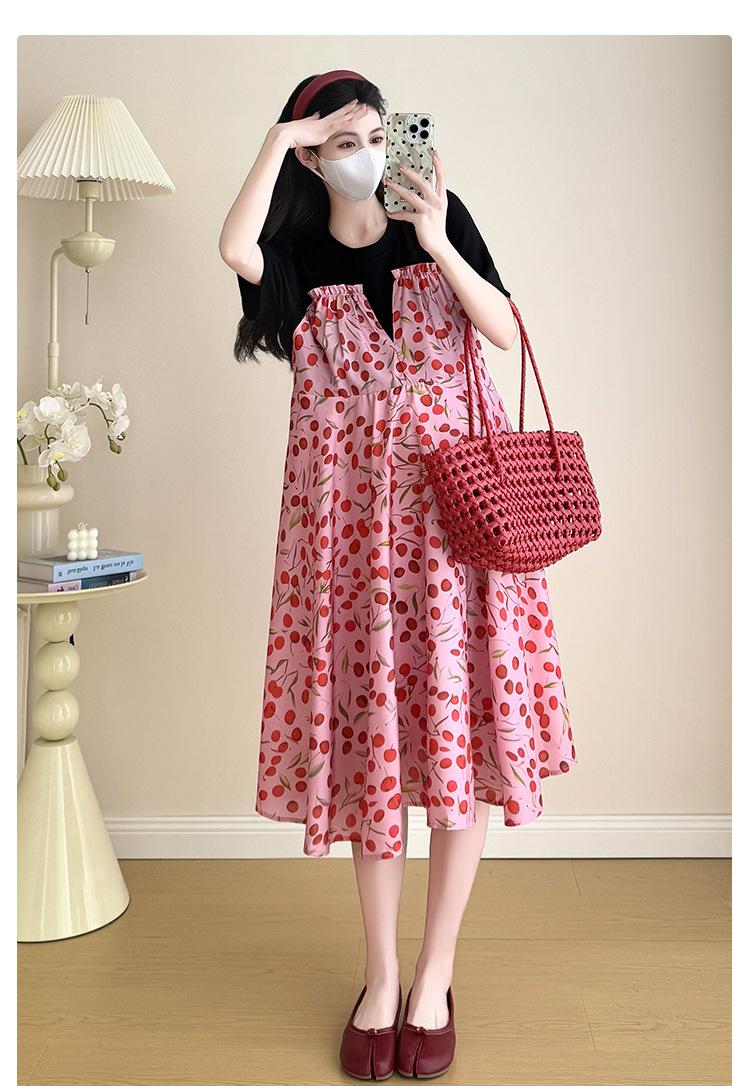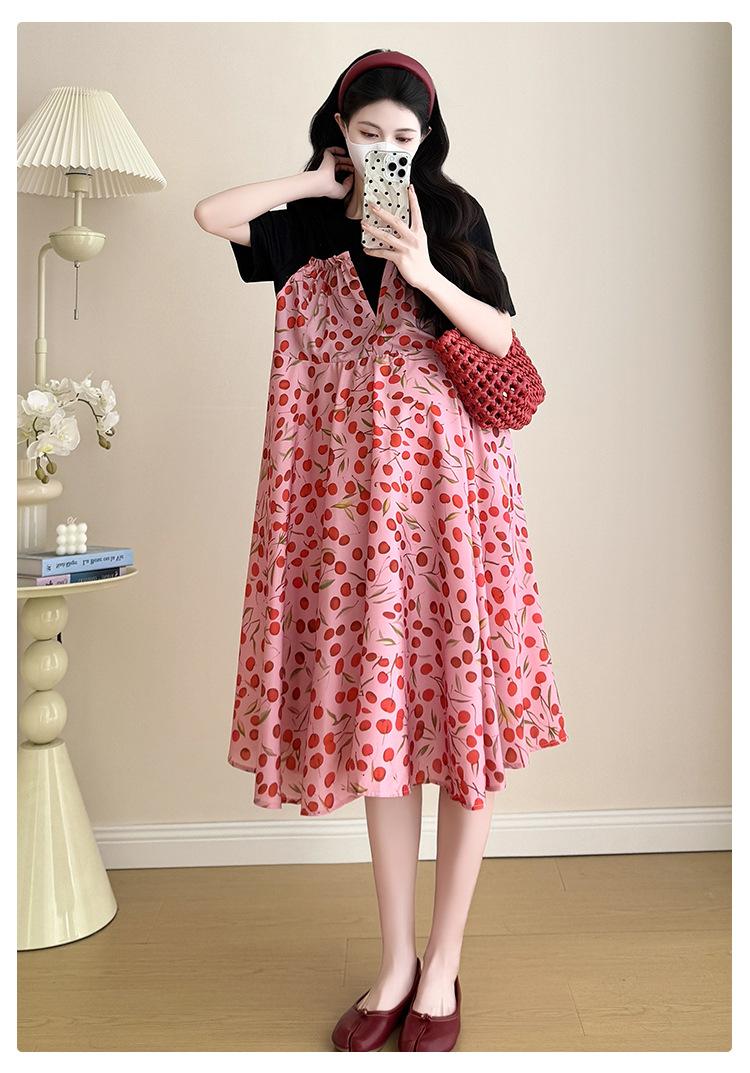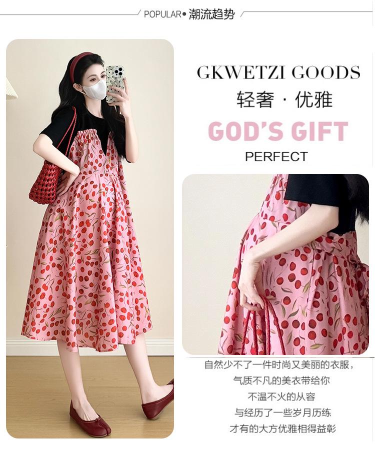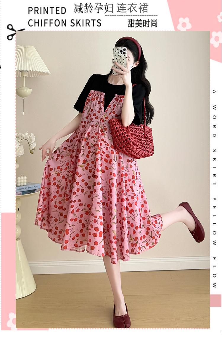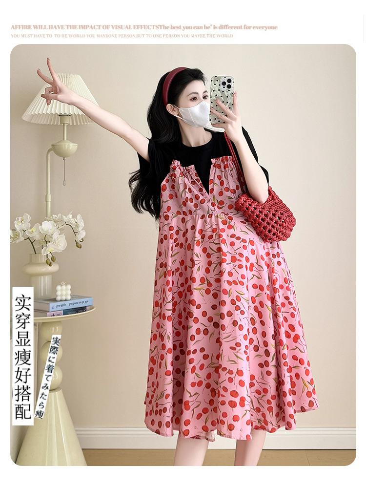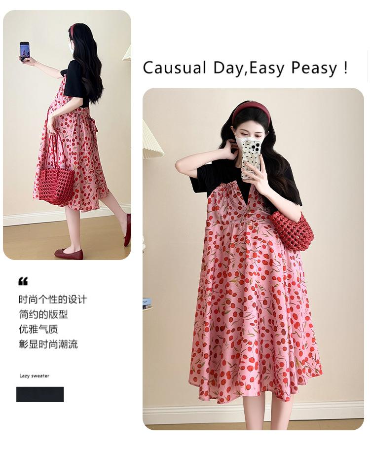 Vestido de maternidad de verano 2025, nuevo, con cuello redondo y costuras falsas, dos largos.