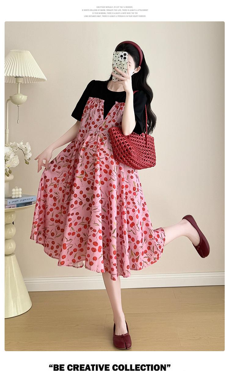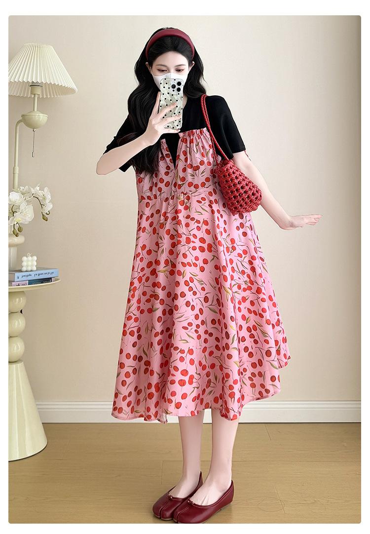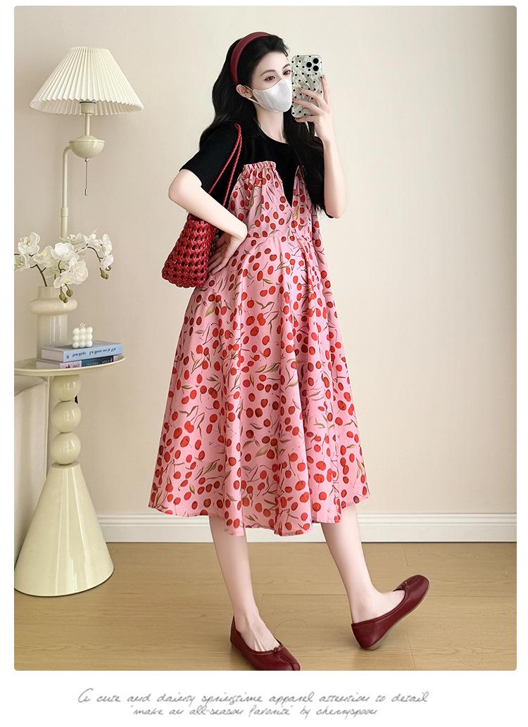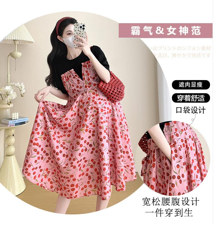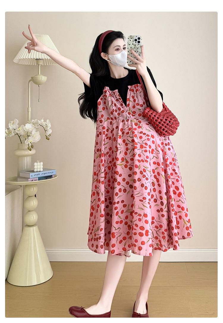Vestido de maternidad de verano 2025, nuevo, con cuello redondo y costuras falsas, dos largos.