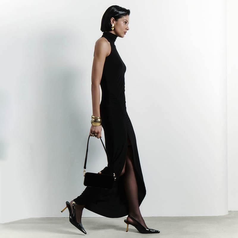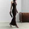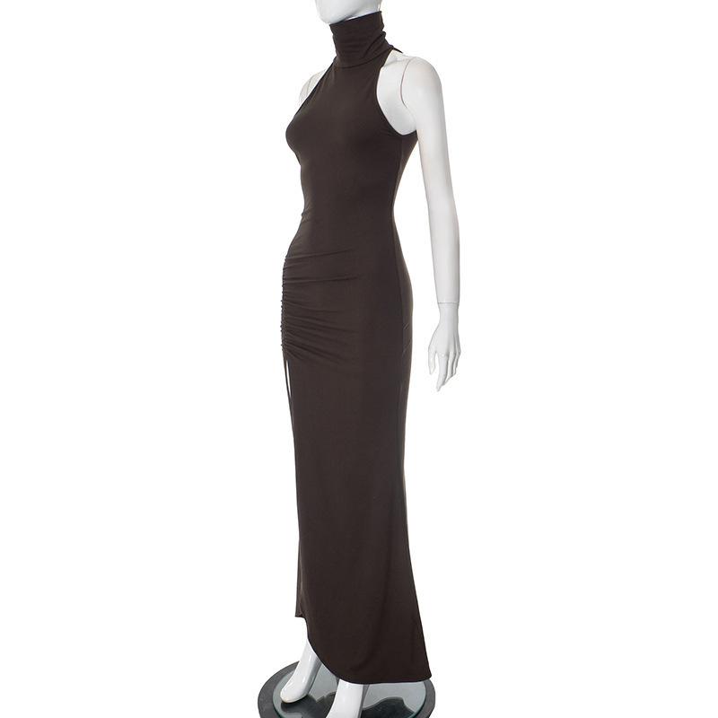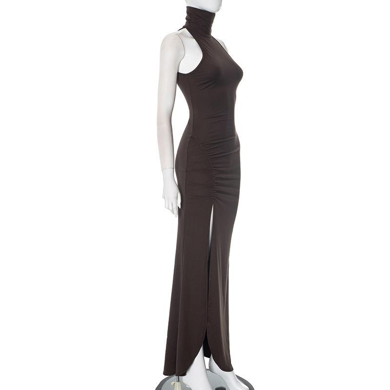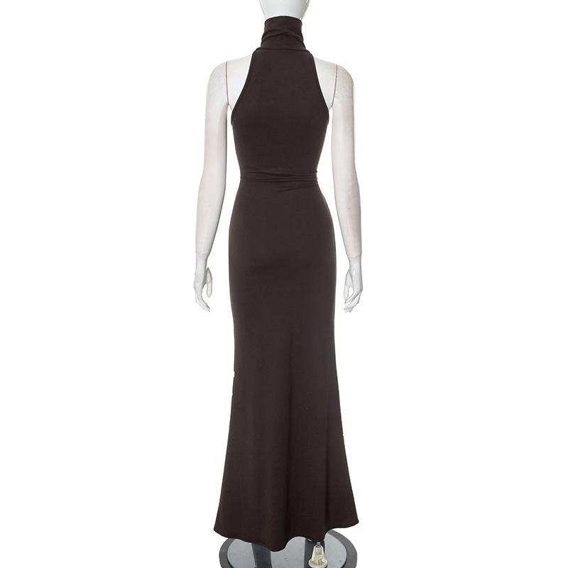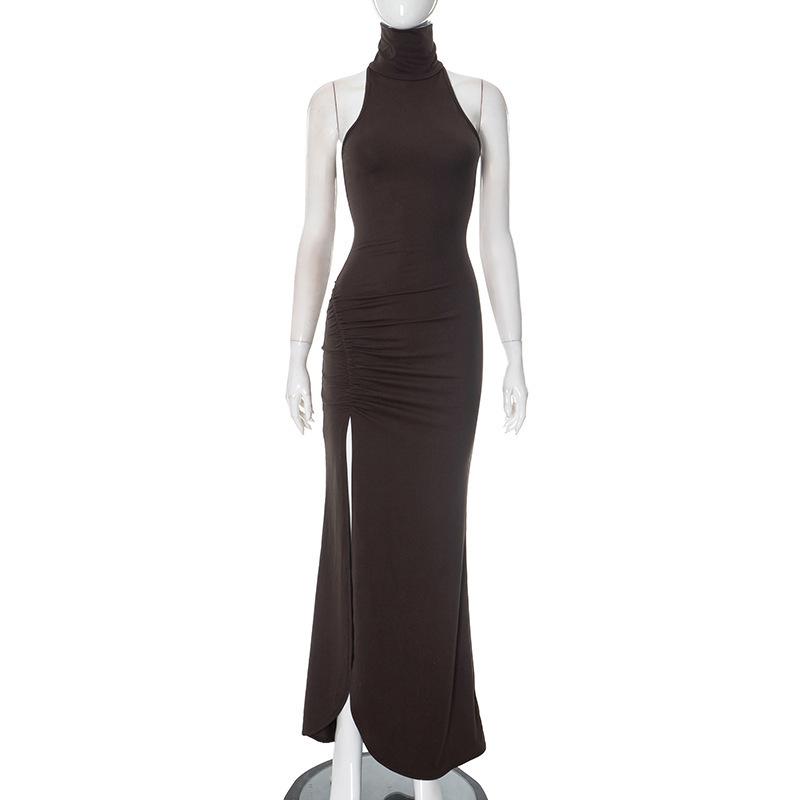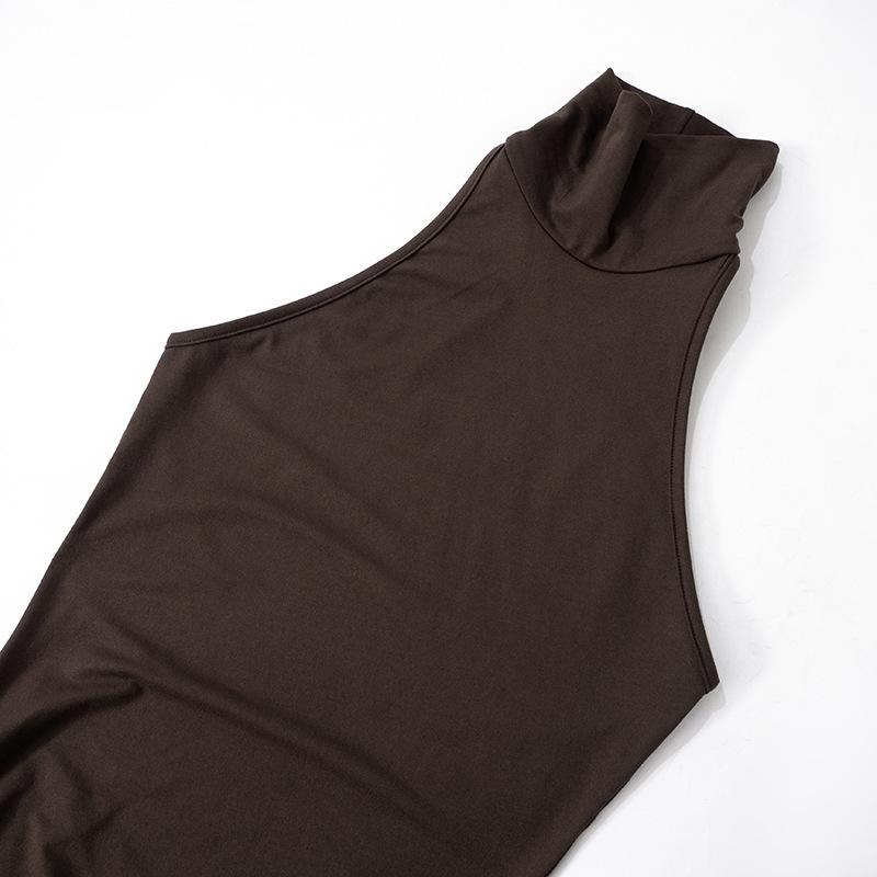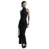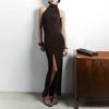 Primavera y verano estilo europeo y americano 2025 nuevo chaleco sin mangas de cuello alto para mujer con costuras vestido largo con abertura para mujer