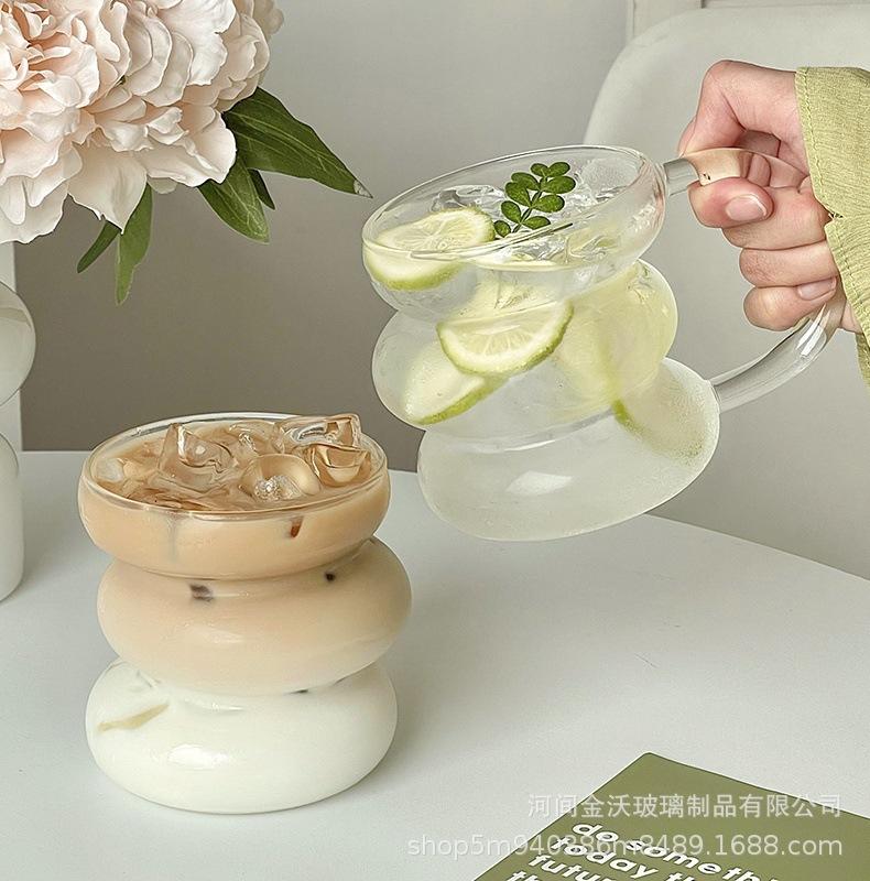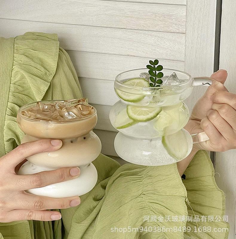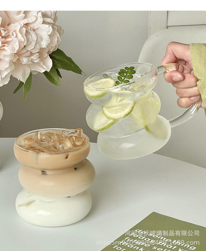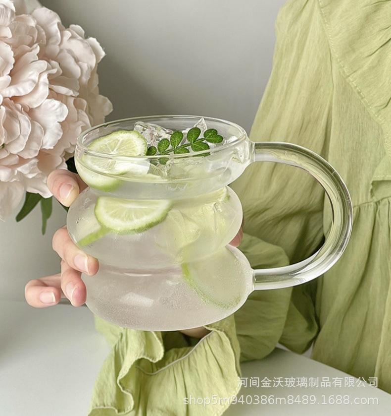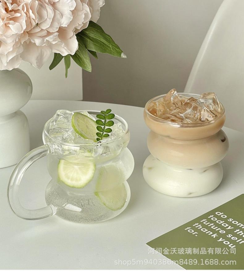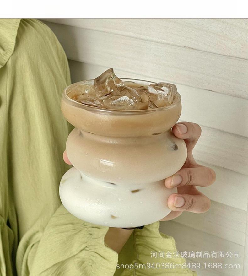 Copa irregular de calificación FCM transfronteriza de vidrio de borosilicato de una sola capa copa transparente de oruga copa para leche y café