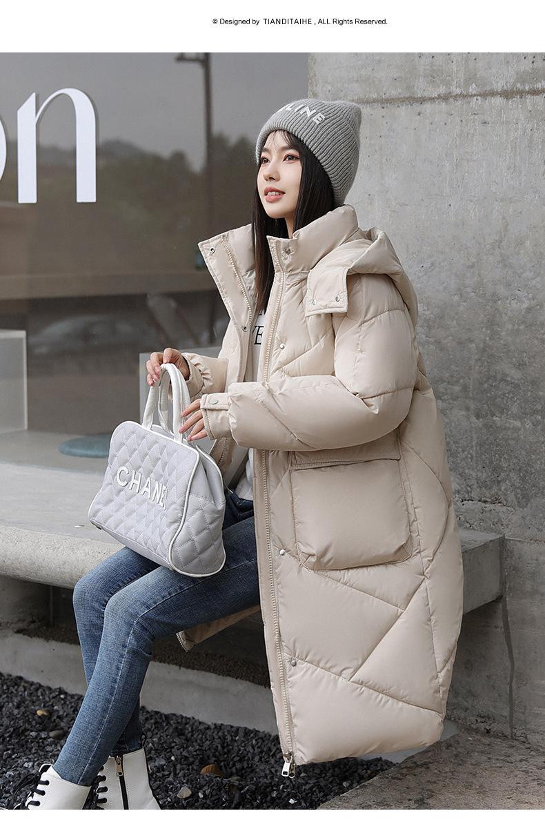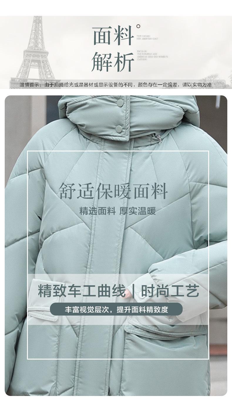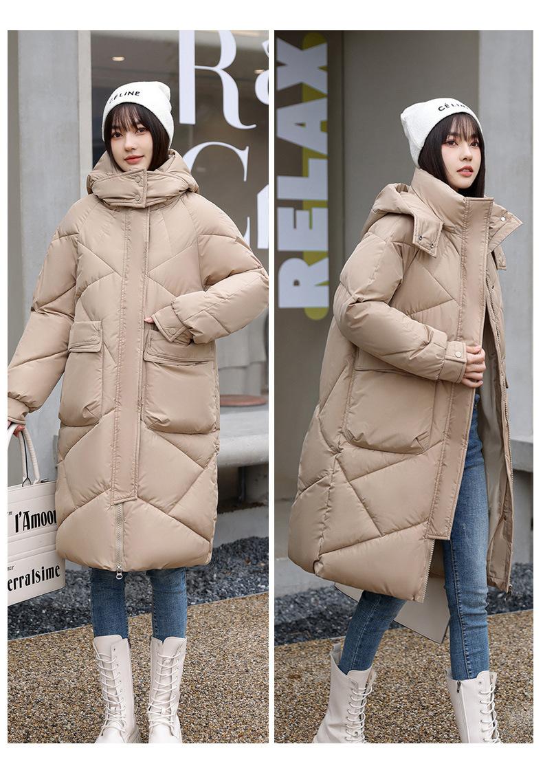 2023 Invierno Nuevo Abrigo Acolchado de Algodón Holgado Moderno con Capucha Desmontable para Mujer de Largo Medio Grueso Abrigo Pan