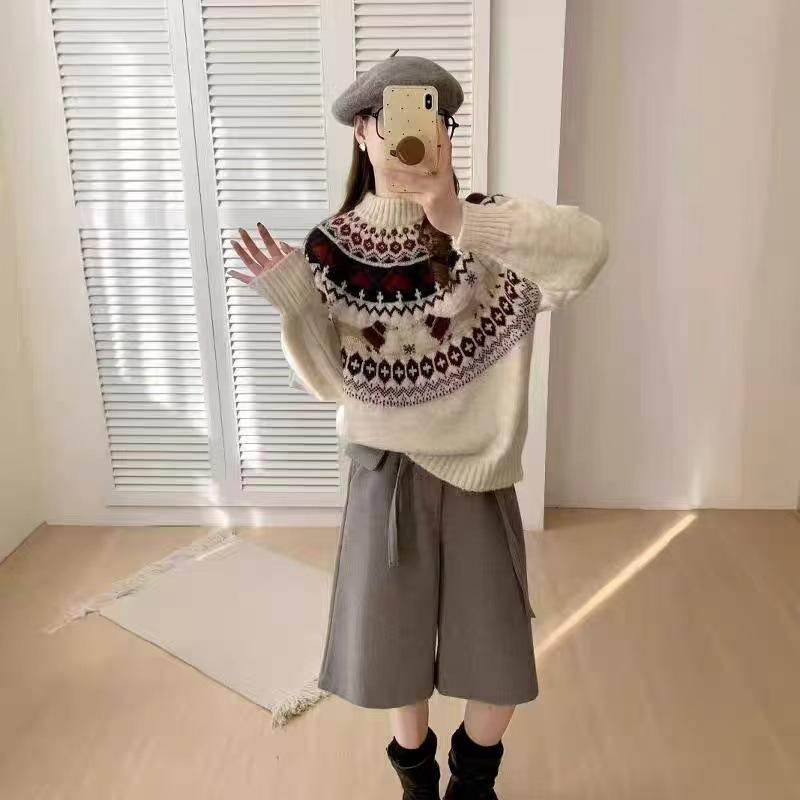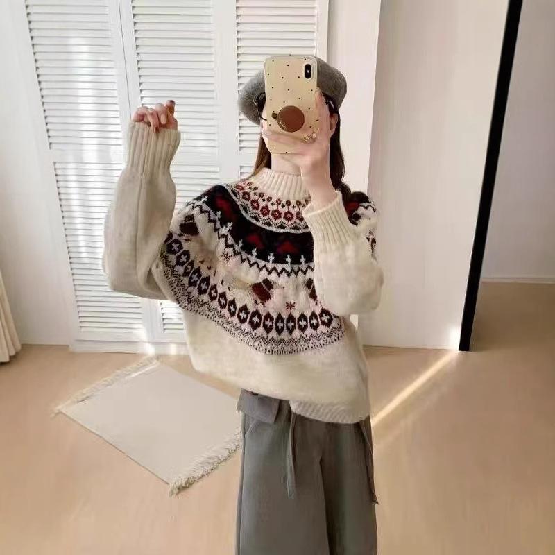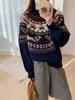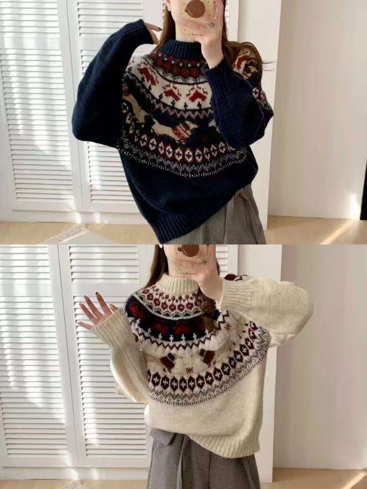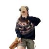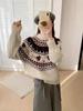 Suéter de Punto de Color en Contraste con Dibujo de Perro de Dibujos Animados Suelto Cuello Redondo Estilo Coreano Sentido del Diseño Relajado Jersey de Manga Larga para Mujer Otoño e Invierno Nuevo