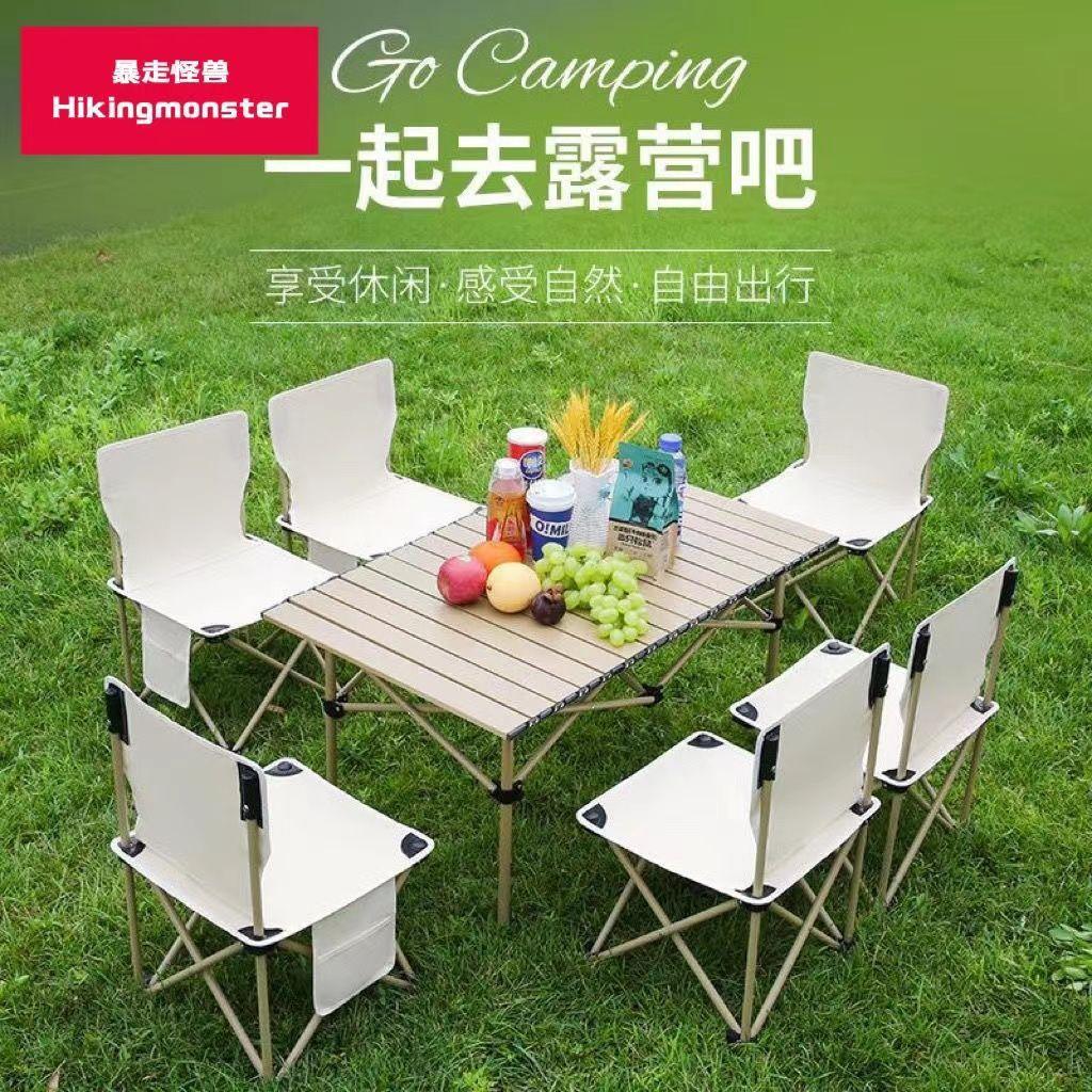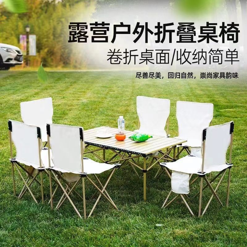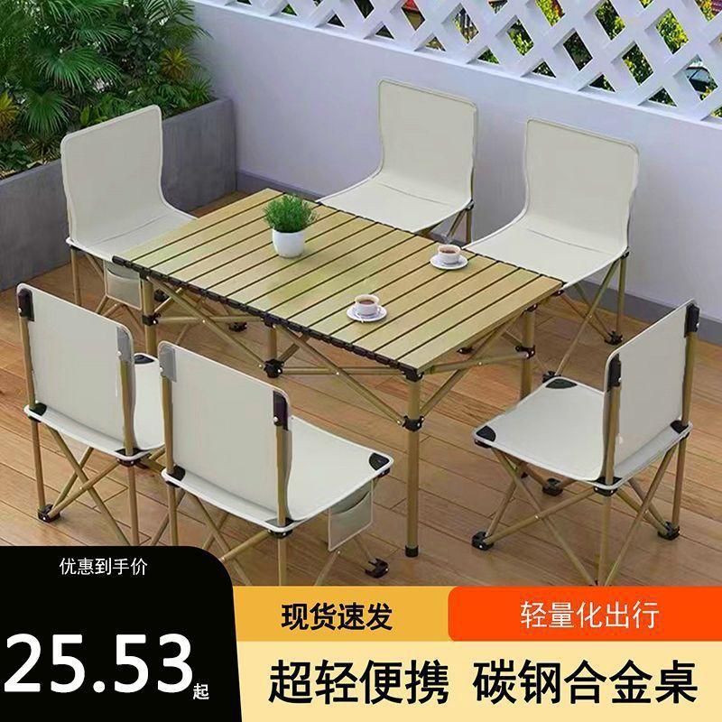 Mesa Plegable para Exterior Mesa Enrollable Tipo Huevo y Juego de Sillas Mesa Plegable Portátil Puesto de Picnic Excursión en Coche Barbacoa Camping